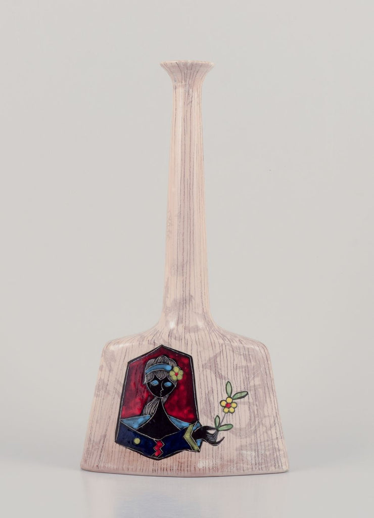 Coronetti Cunardo, Italy. Narrow-necked ceramic vase with a female motif. Approx. 1960s.