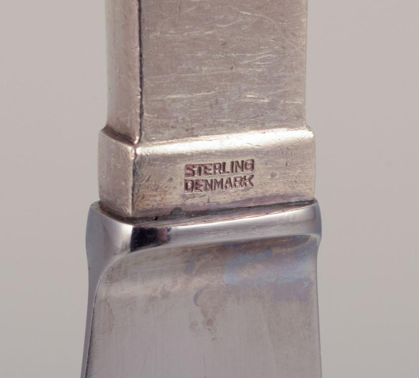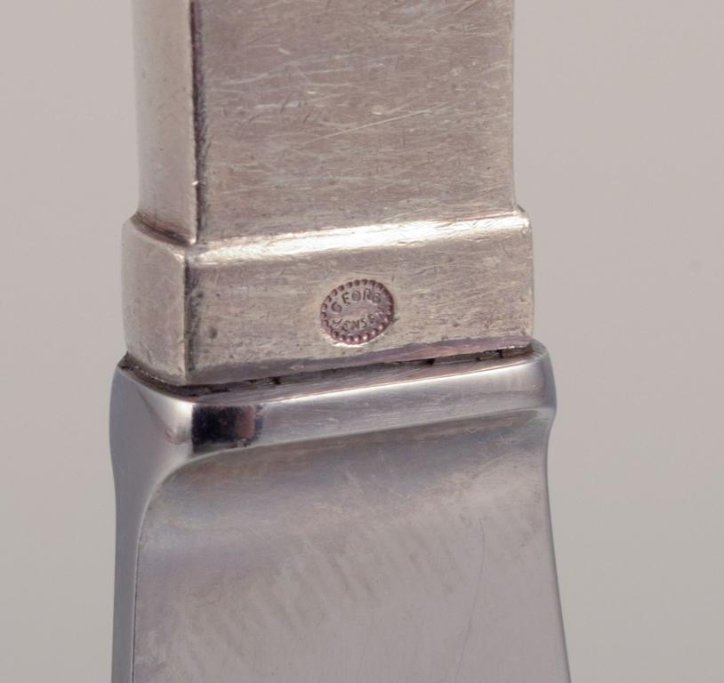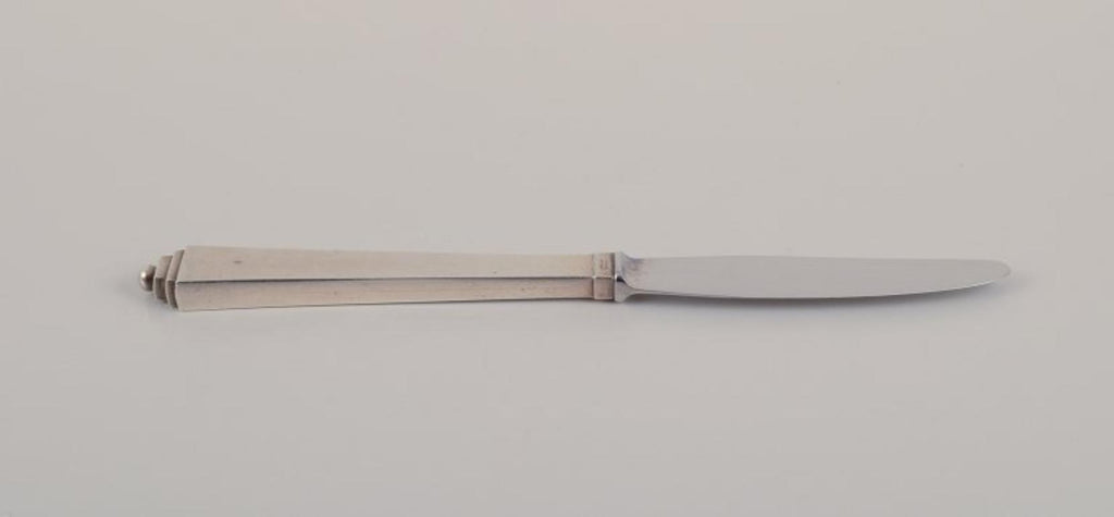 Georg Jensen Pyramid. Long-handled dinner knife in sterling silver with stainless steel blade.