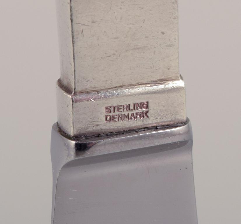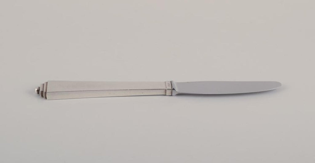Georg Jensen Pyramid. Long-handled dinner knife in sterling silver with stainless steel blade.