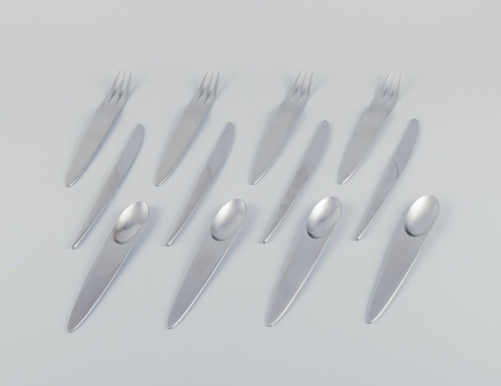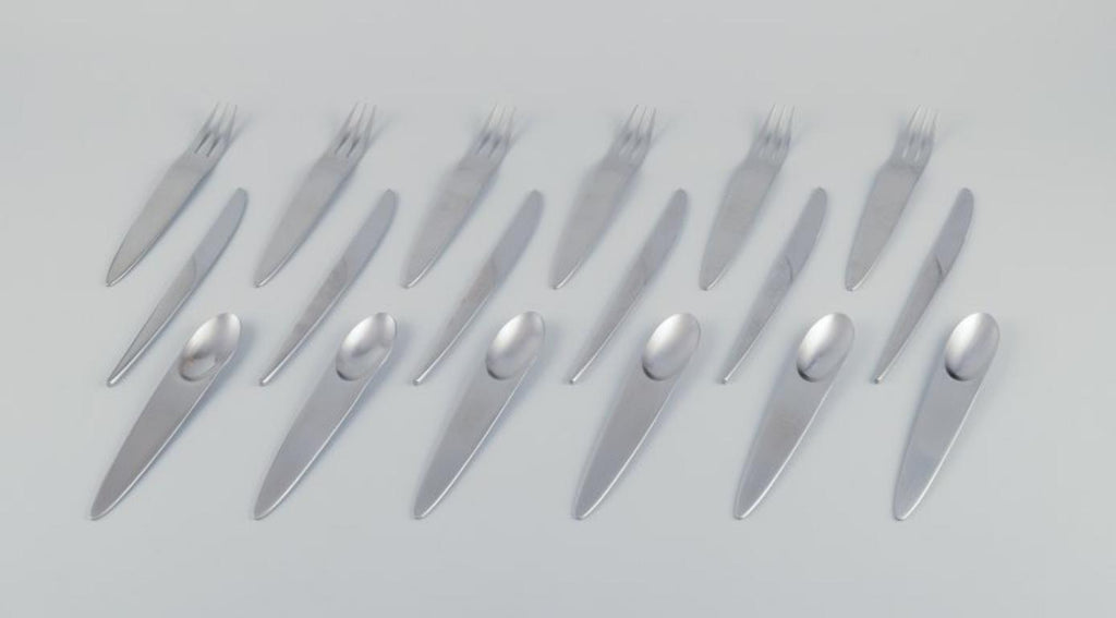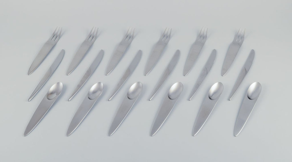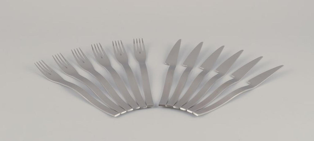 Gense, Sweden. Fish cutlery for six people: six knives and six forks. Stainless steel. Late 20th C.