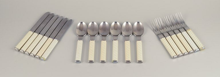Signe Persson-Melin for Nilsjohan / Gense. Complete six-person "Zig-Zag" dinner cutlery set in stainless steel and white plastic. 1970s/80s.