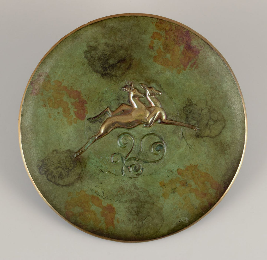 Ove Fritz Rasmussen, Danish bronze caster. Art Deco bronze dish with a motif of leaping deer. Approx. 1940s.