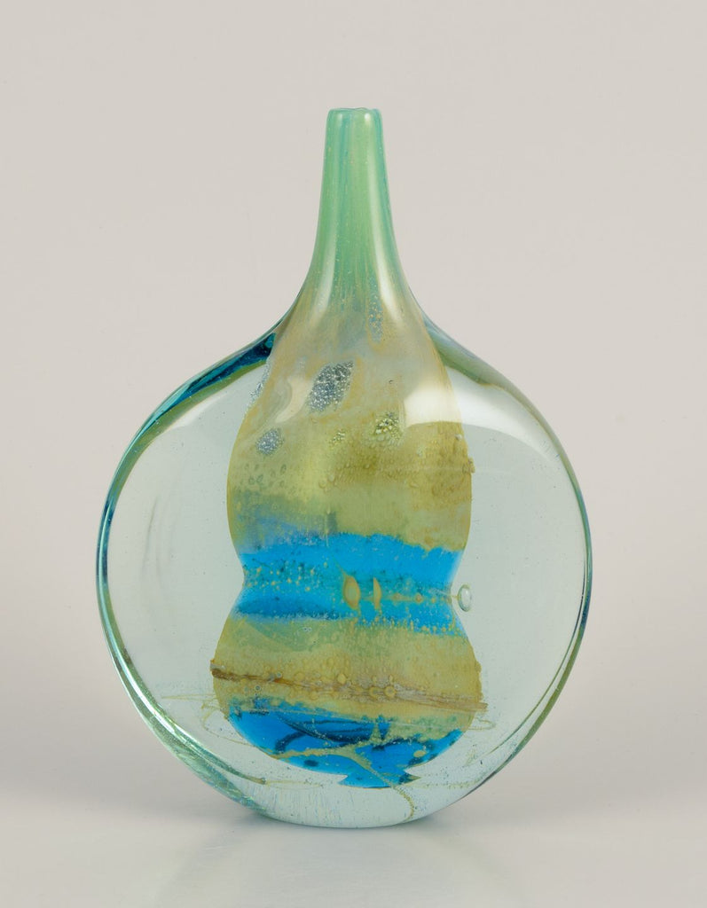 Scandinavian glass artist. Art glass vase in turquoise glass. 1970s.