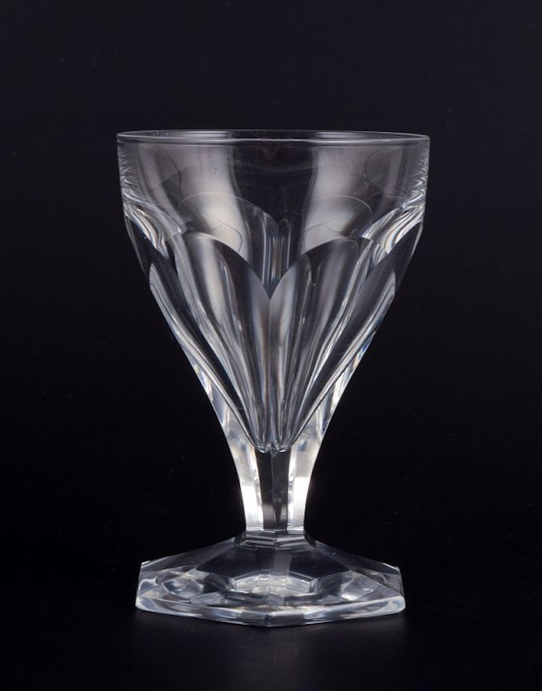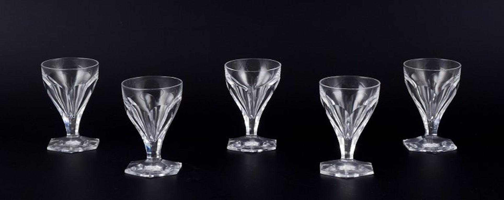 Baccarat, France. A set of five Art Deco glasses in clear crystal. Faceted.