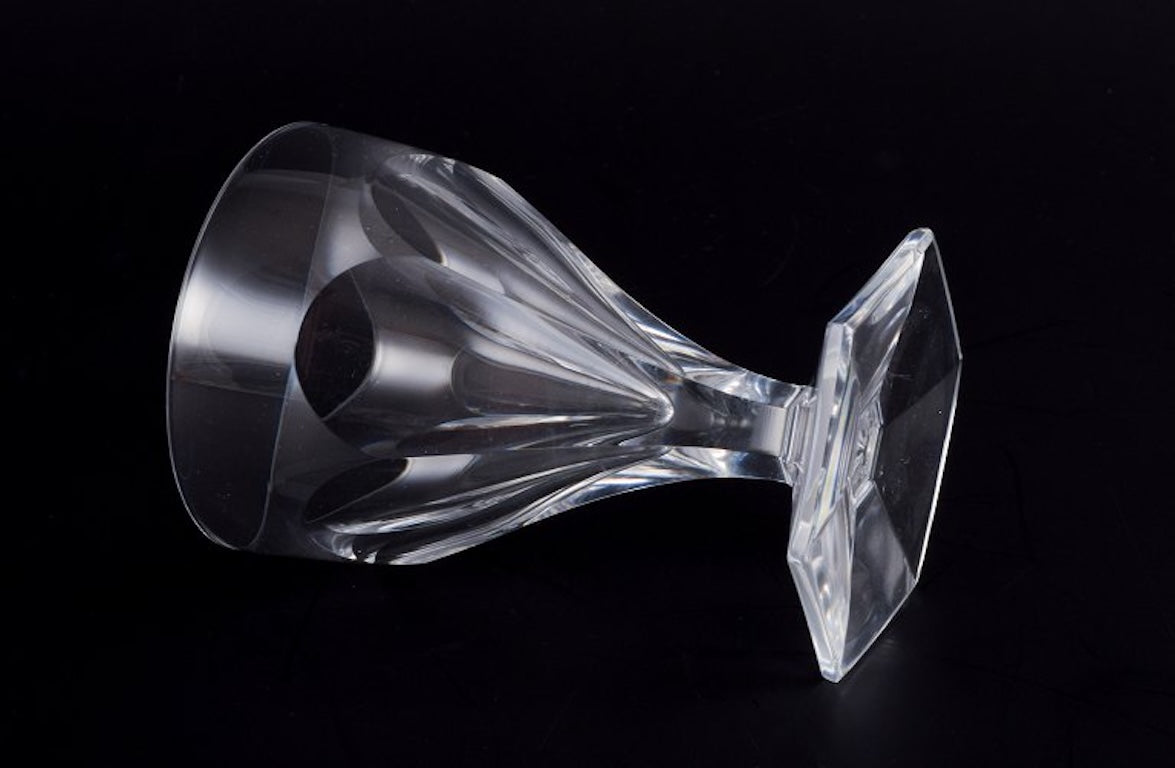 Baccarat, France. A set of four Art Deco glasses in clear crystal. Faceted.