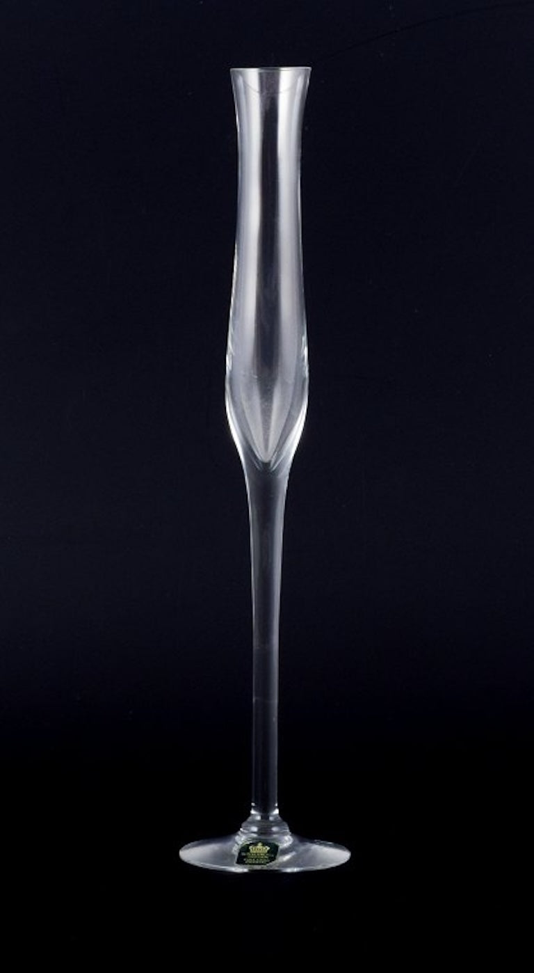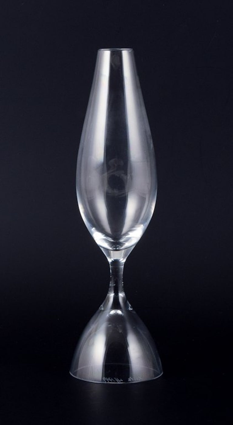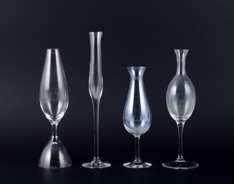 Kosta Boda and several other Swedish glassworks. Set of four tall mouth-blown glasses.