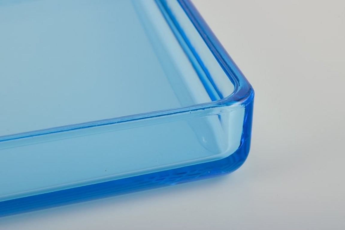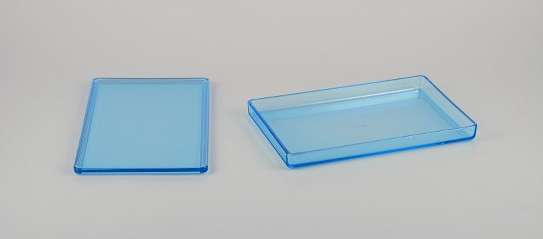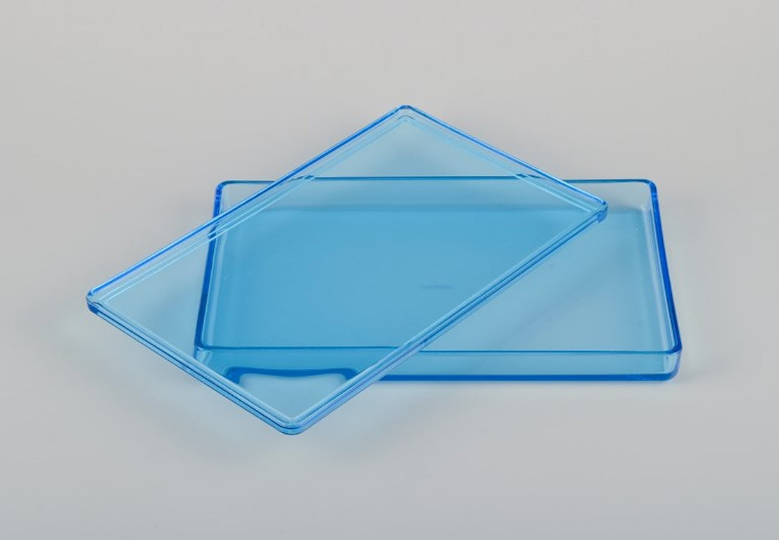 Rauff & Møldrup for Holmegaard, Denmark. Two large Thurø storage boxes in turquoise blue art glass.