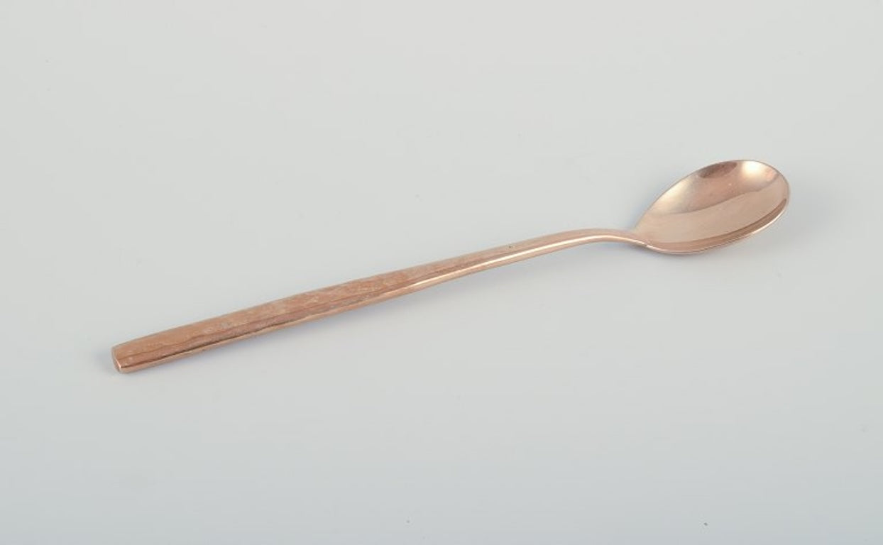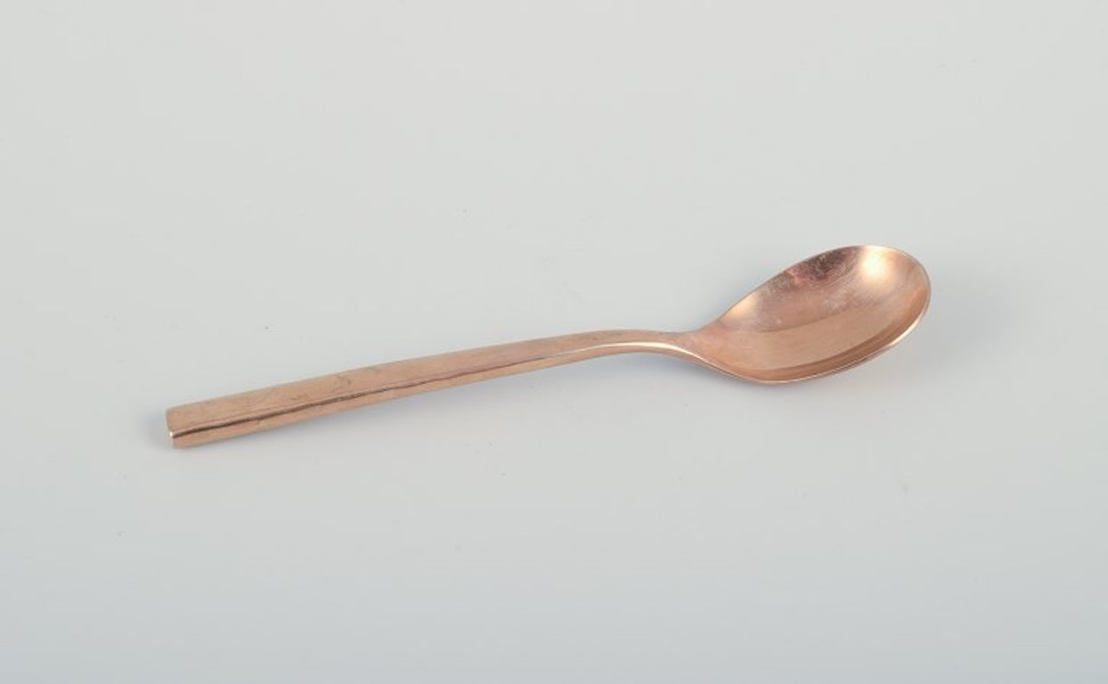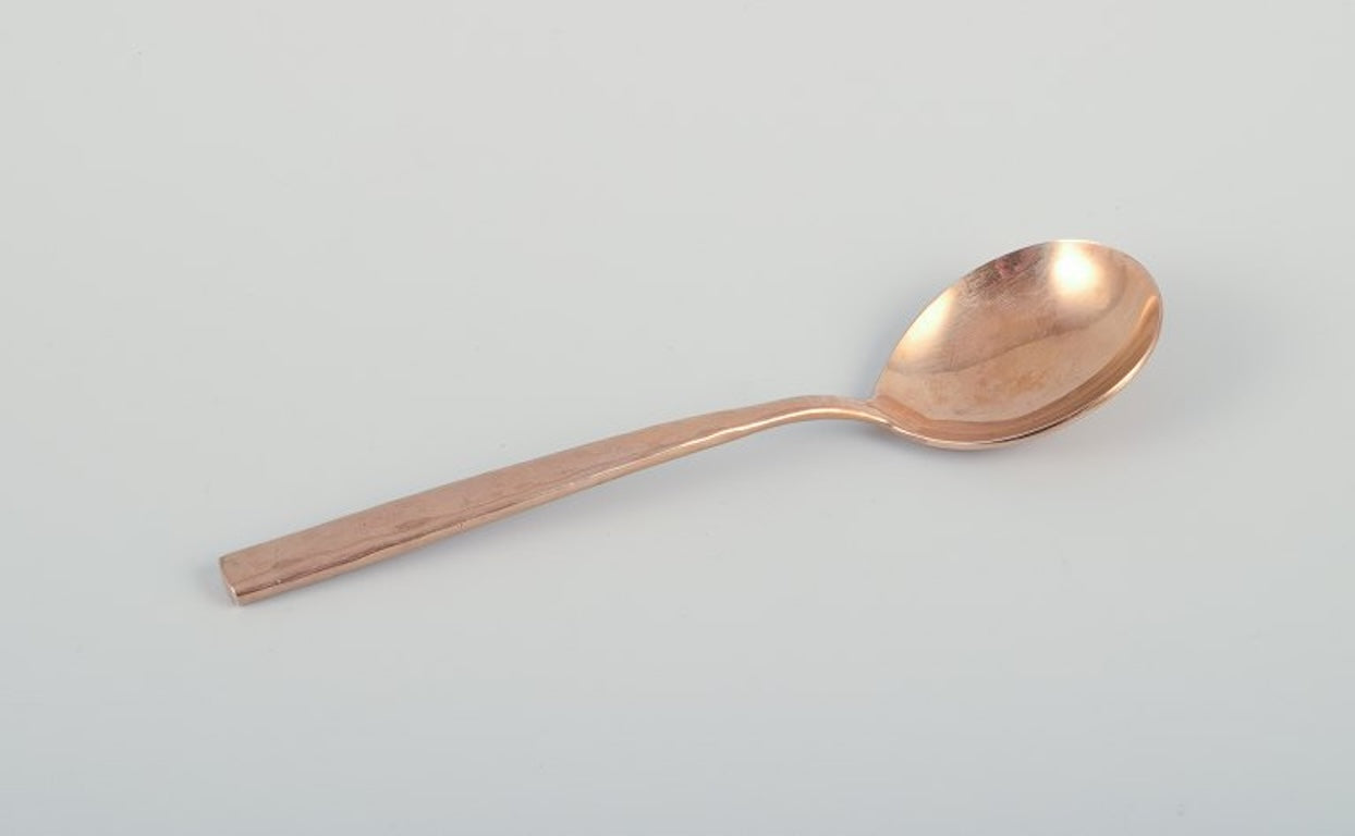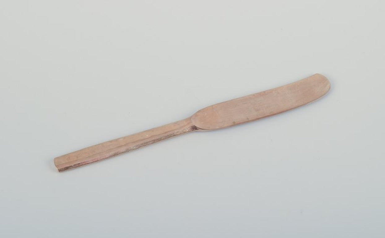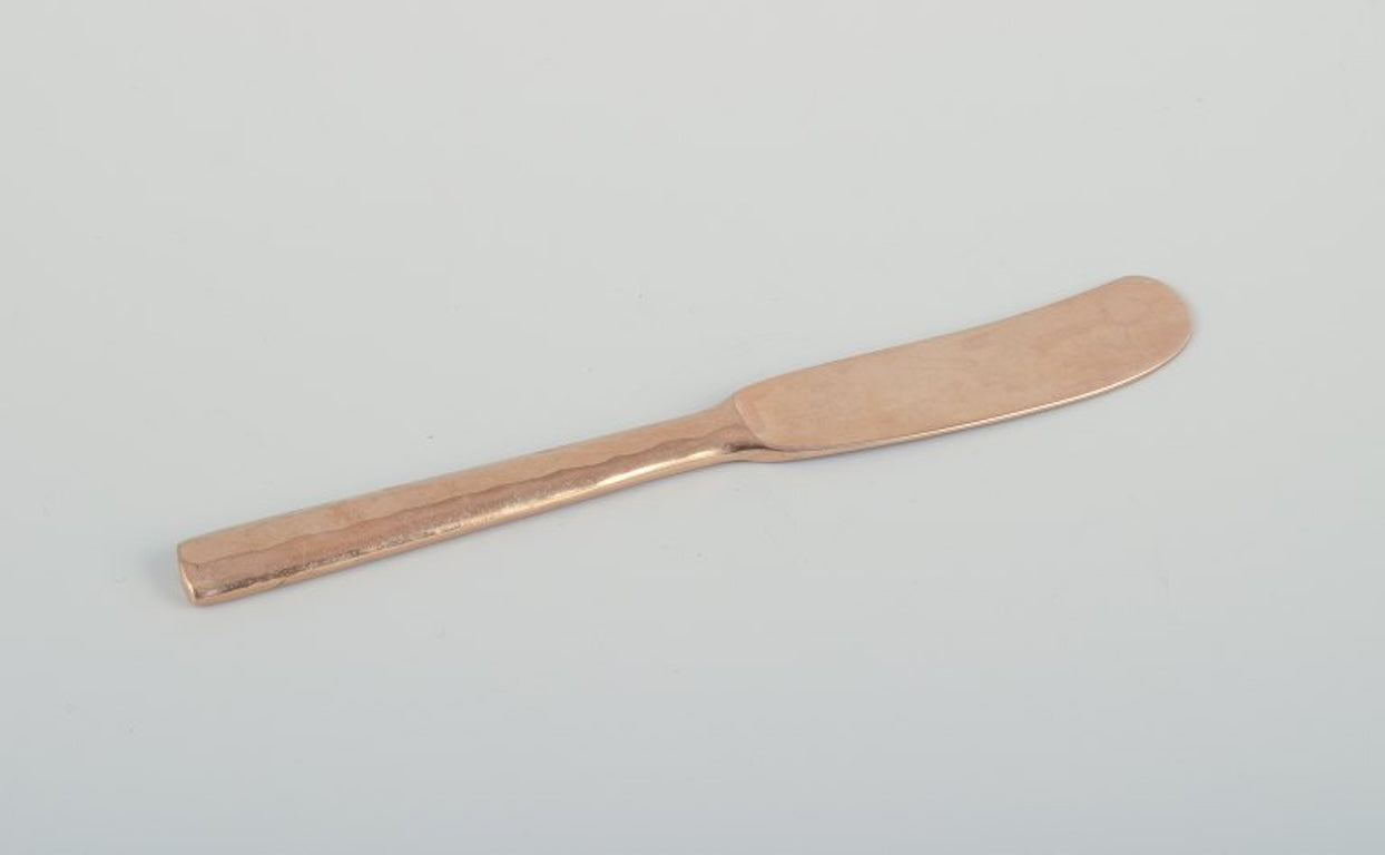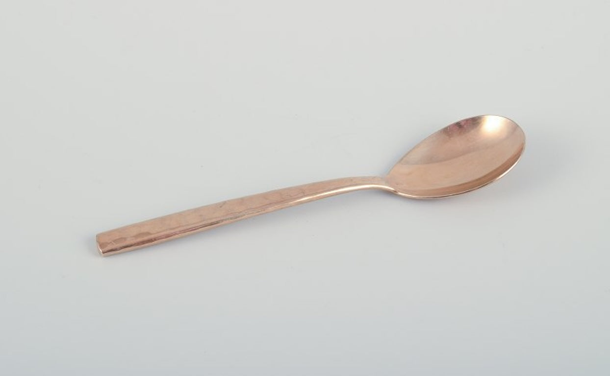Scandinavian designer. Large and complete six-person dinner service in handcrafted hammered brass. High-quality craftsmanship.