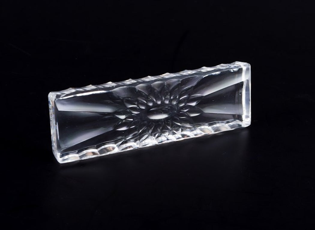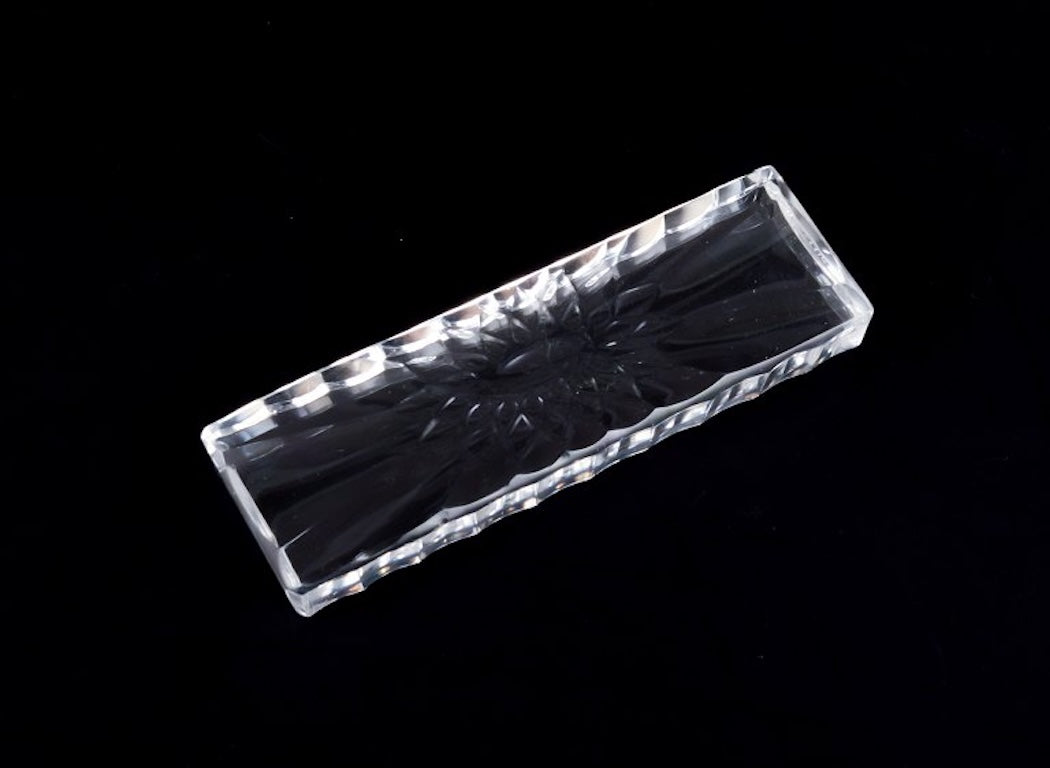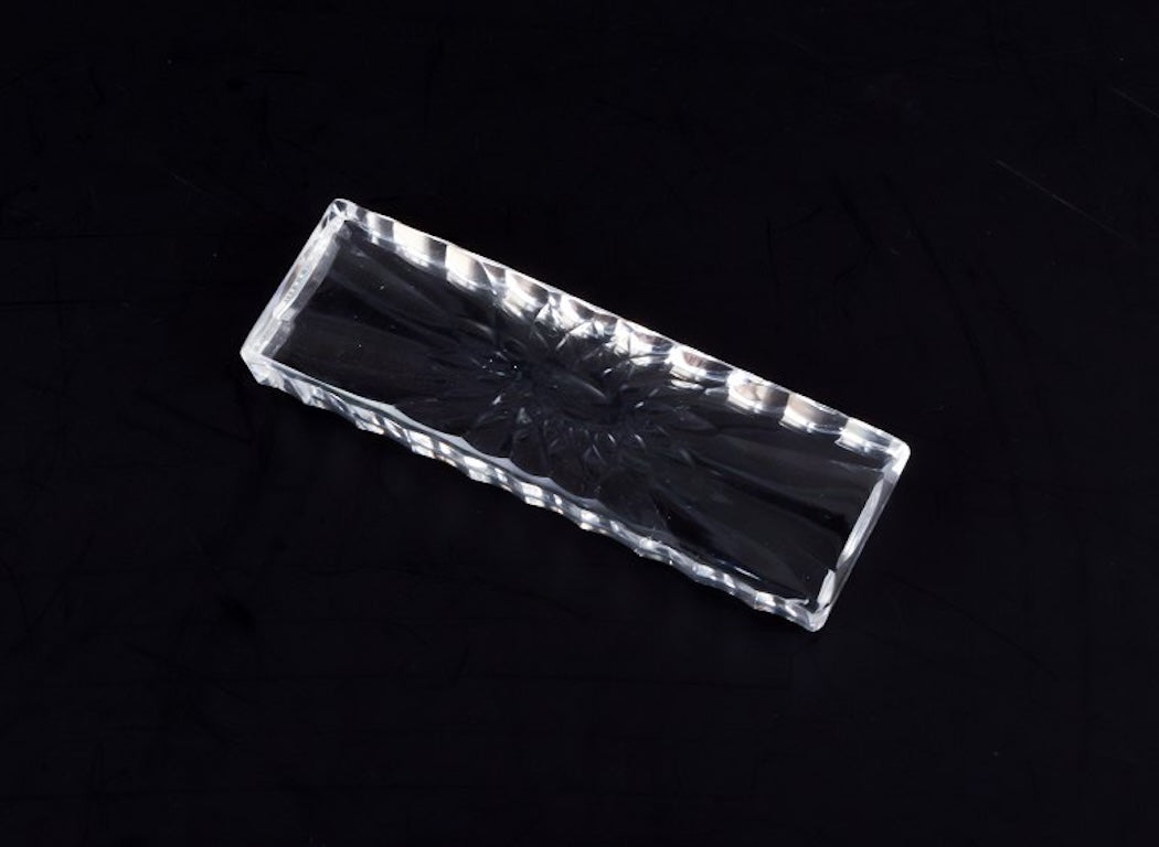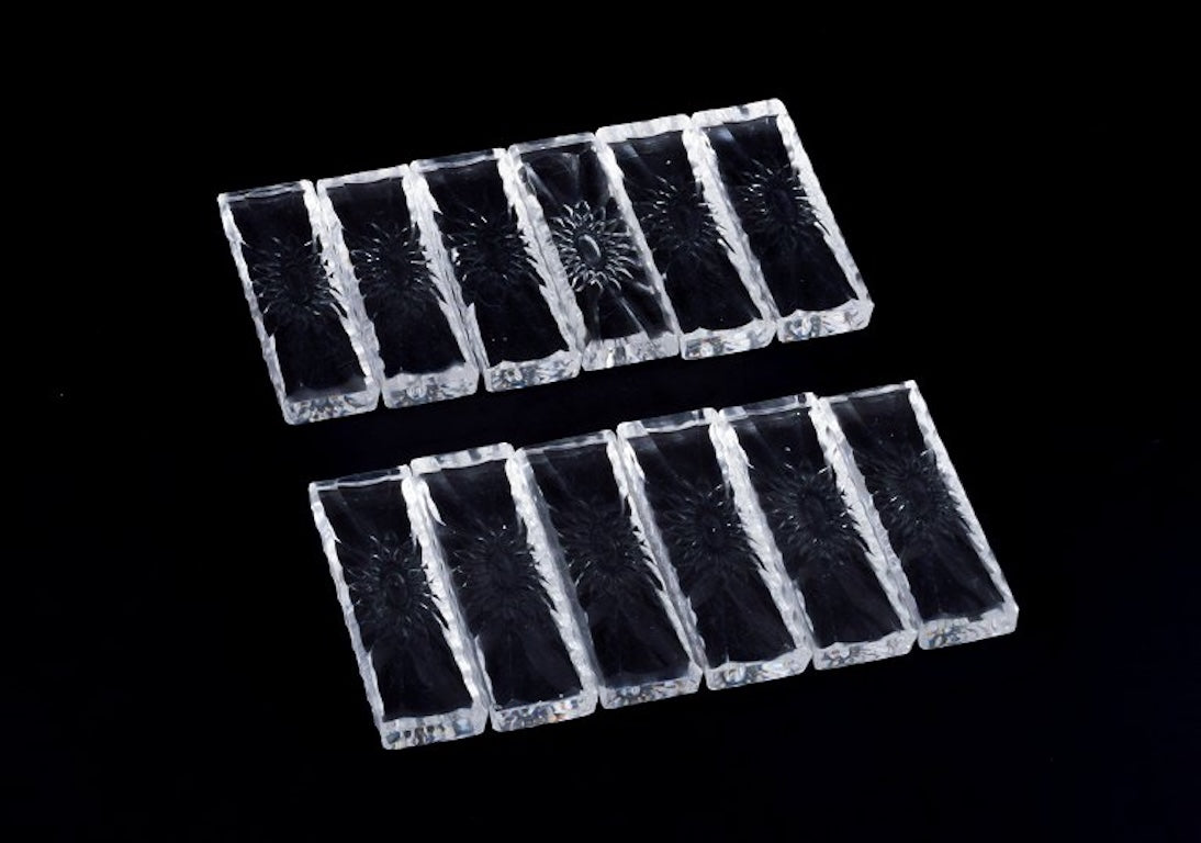 Baccarat, France. A set of twelve knife rests in clear art glass. Flower motif. Faceted. Handmade.