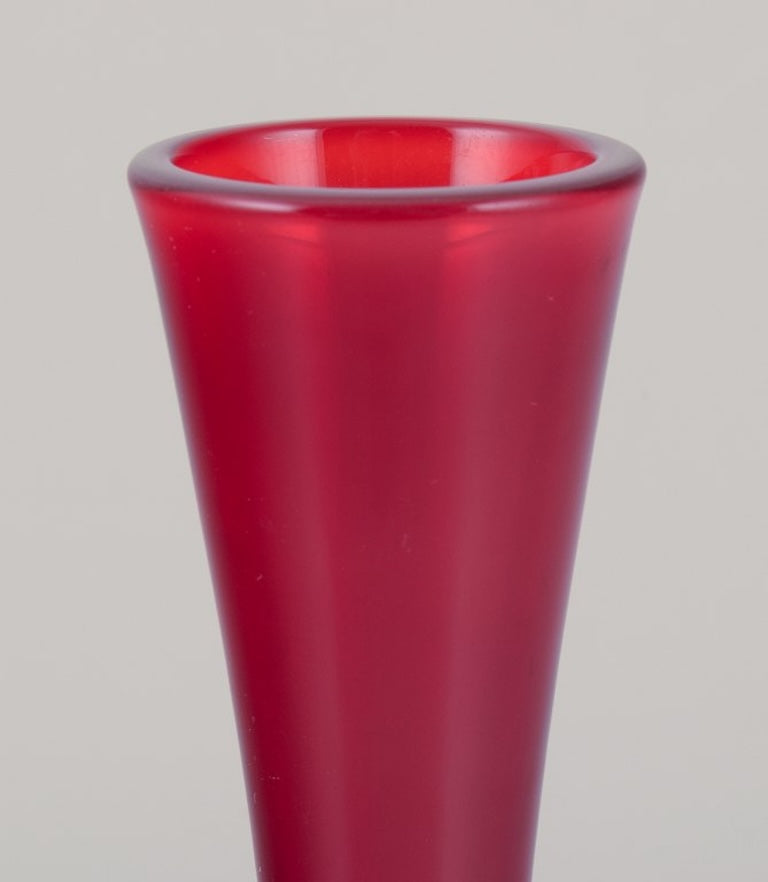 Murano, Italy. Art glass vase in clear and red glass.