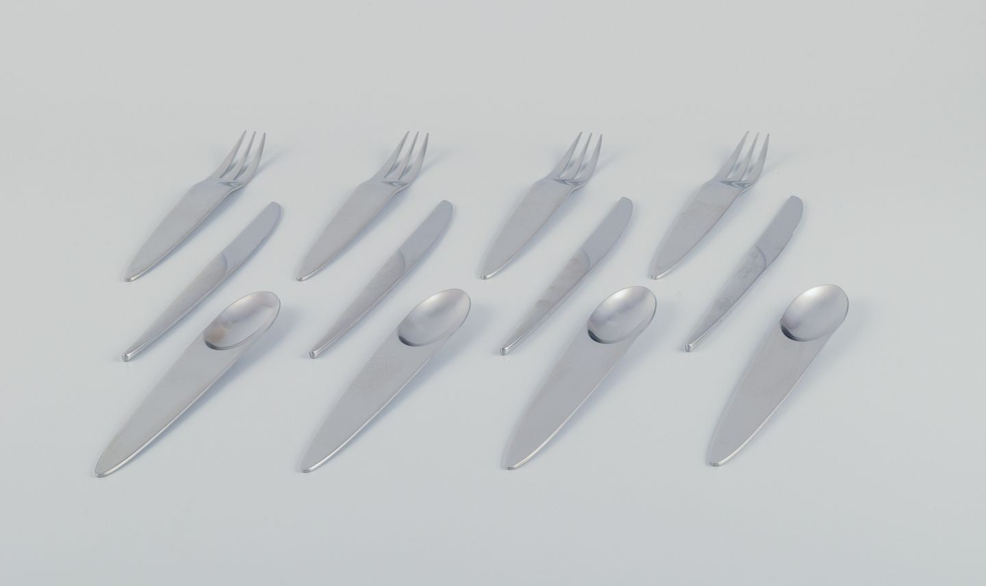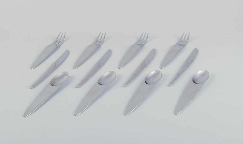 Lunch service for four people consisting of four lunch knives, four lunch forks, and four dessert spoons. 12 pieces in total.