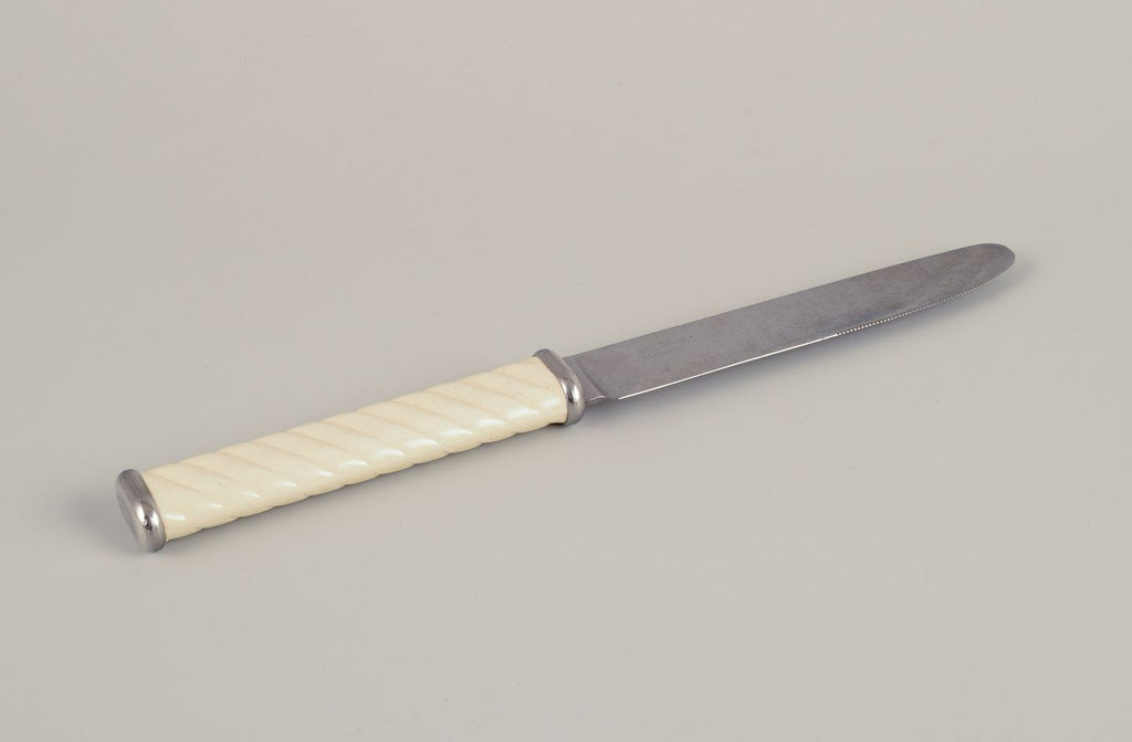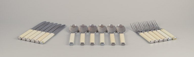 Signe Persson-Melin for Nilsjohan / Gense. Complete six-person "Zig-Zag" dinner cutlery set in stainless steel and white plastic. 1970s/80s.