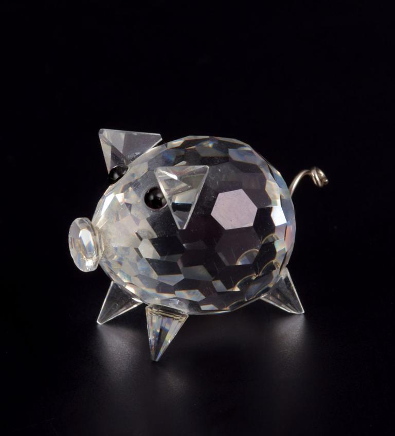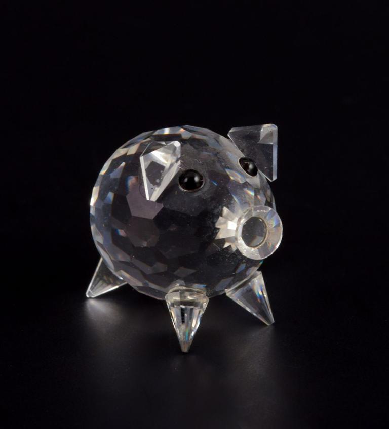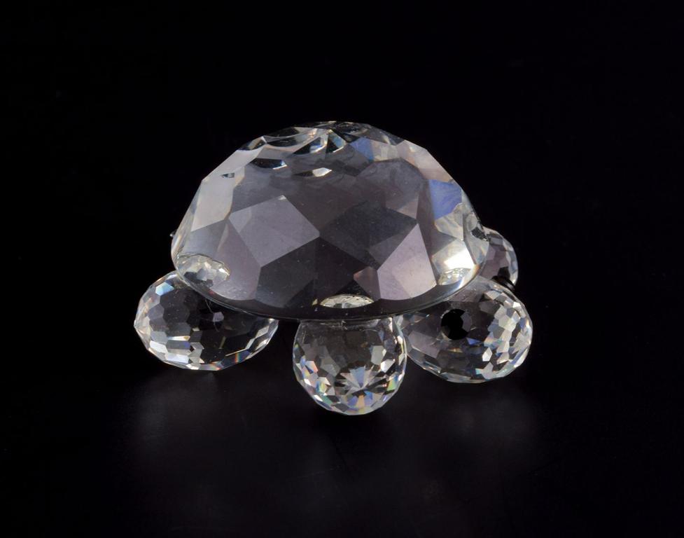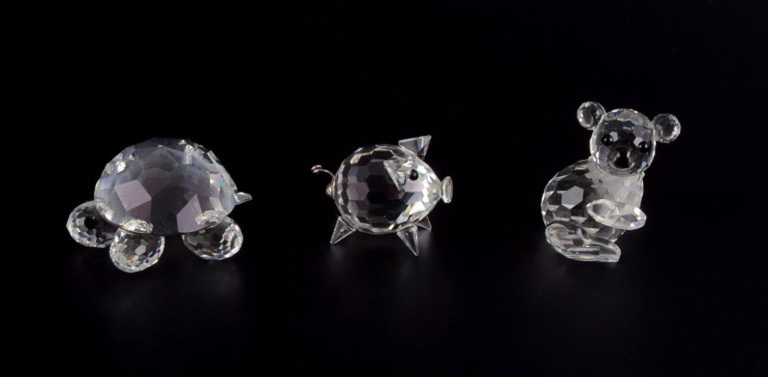 Swarovski, Austria. Three miniature figurines in faceted-cut crystal glass. Pig, turtle, and koala.