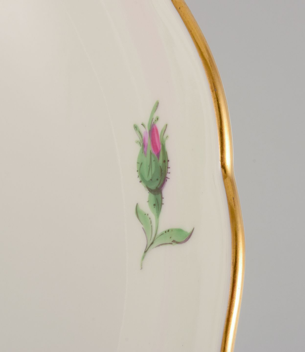 Meissen, Germany. Large porcelain bowl. Hand-painted with pink rose, gold rim. 1920s/30s.
