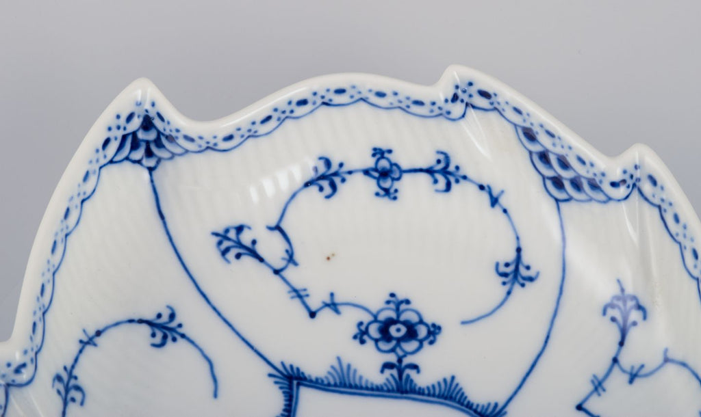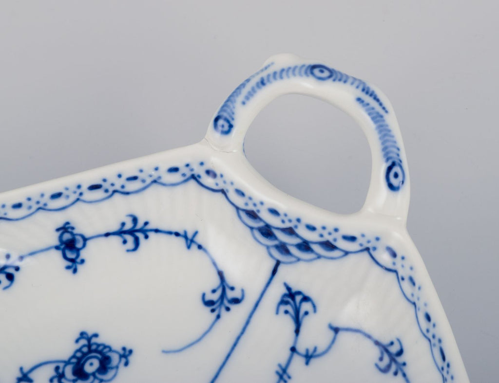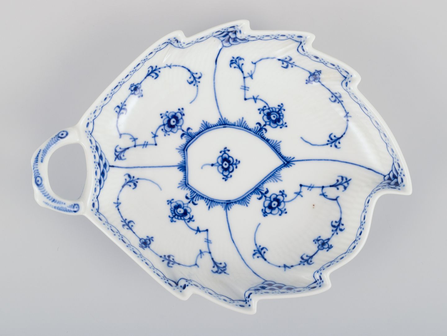 Royal Copenhagen Blue Fluted Half Lace, leaf-shaped dish with handle.