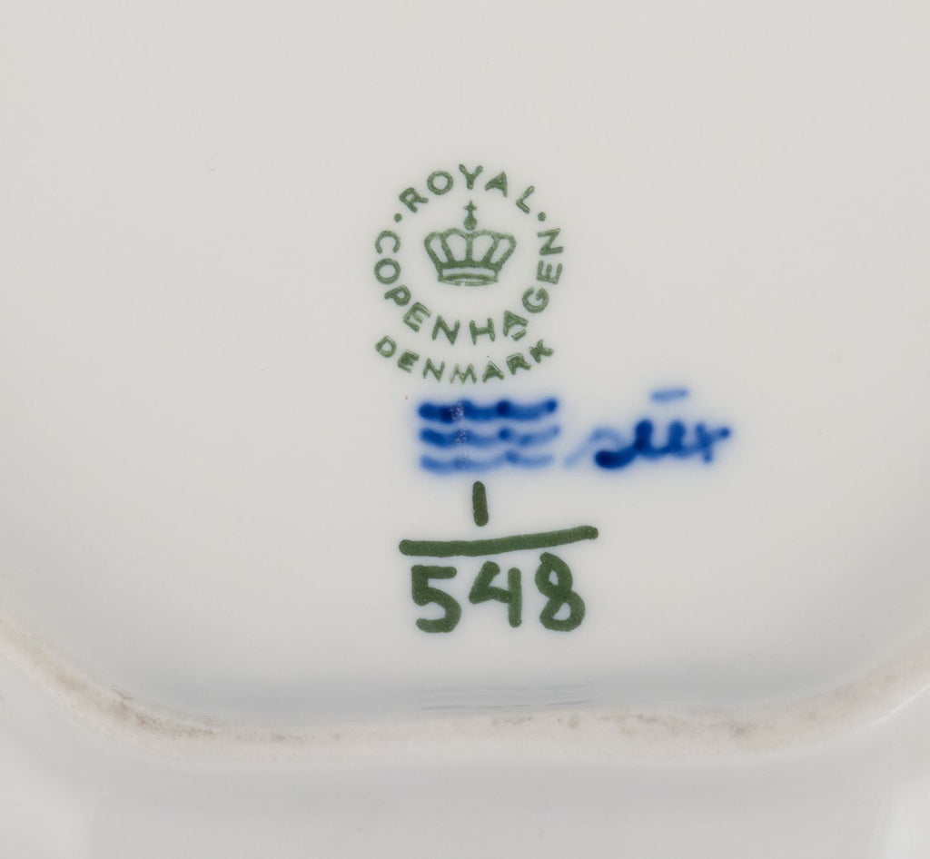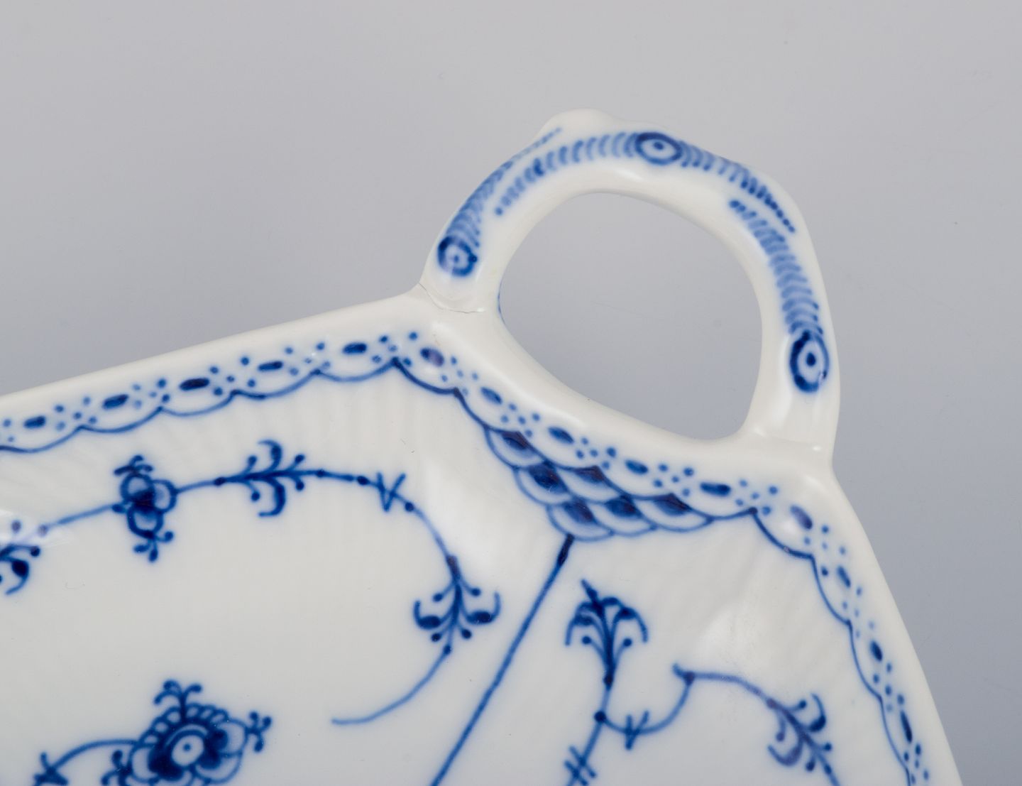 Royal Copenhagen Blue Fluted Half Lace, leaf-shaped dish with handle. Dated 1968.