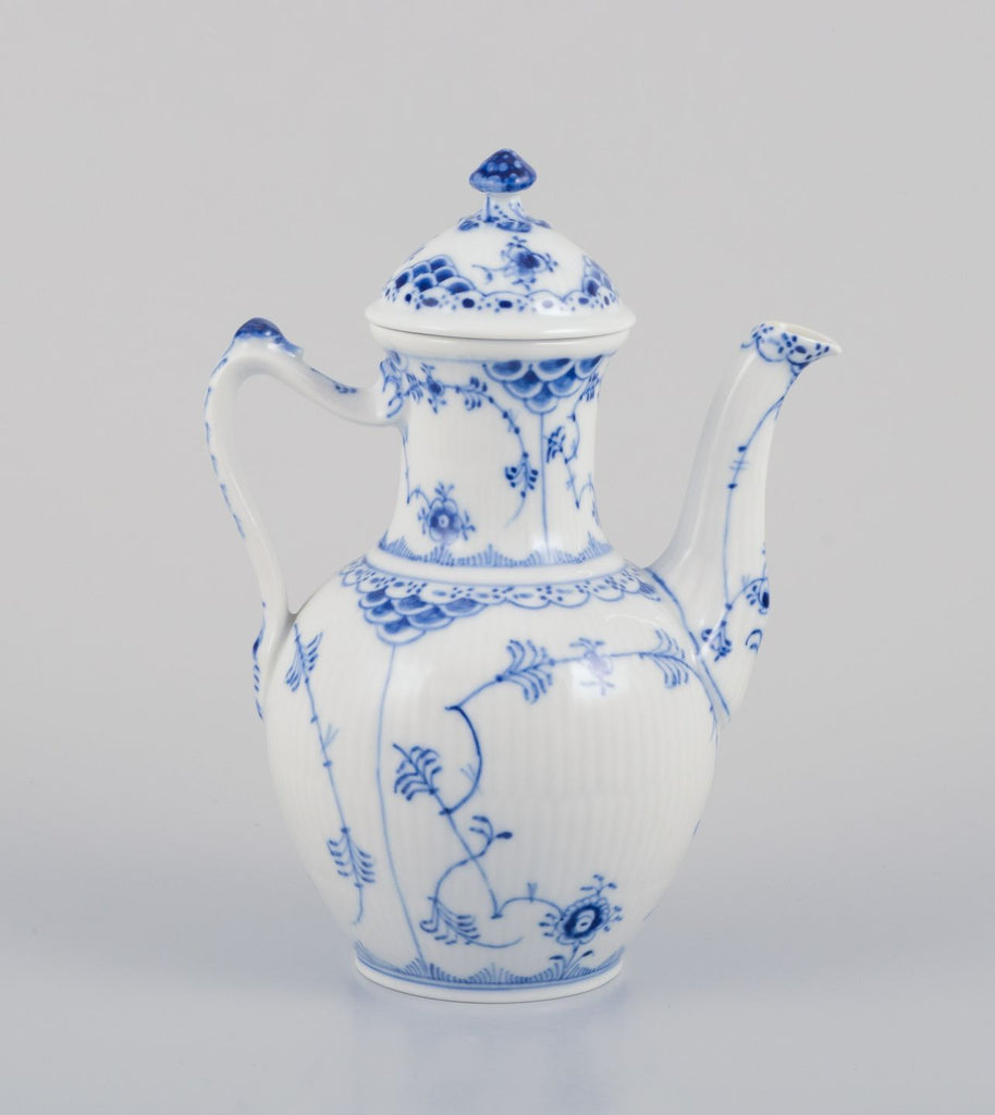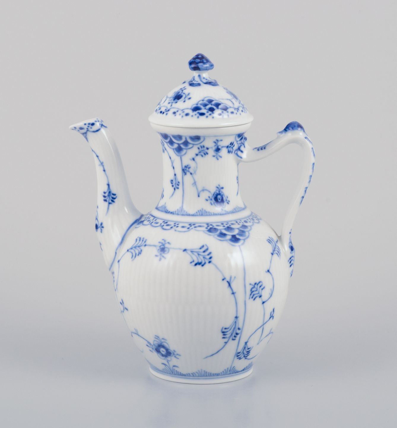 Royal Copenhagen Blue Fluted Half Lace, mocha pot.