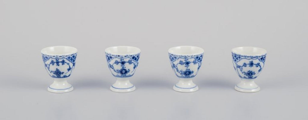 Royal Copenhagen Blue Fluted Half Lace, four pairs of coffee cups with saucers. 1960s/1970s.