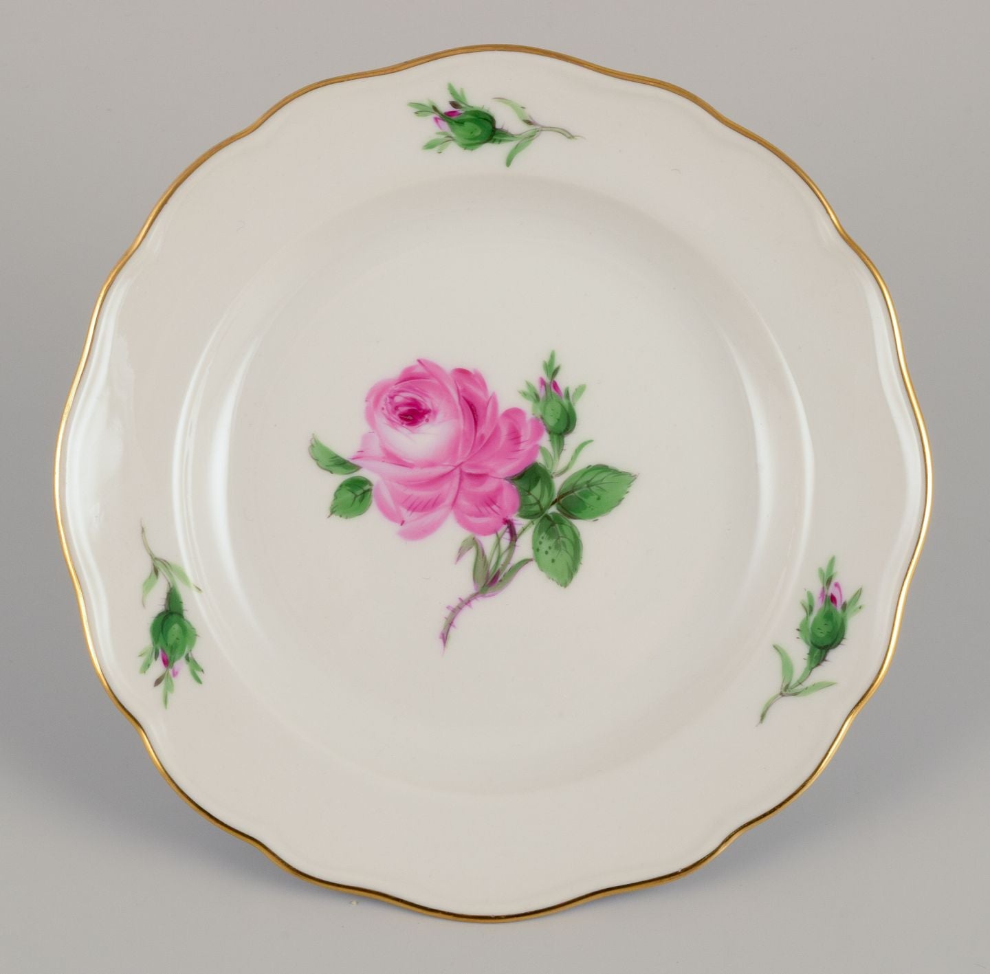 Meissen, Germany. Five "Pink Rose" plates in porcelain. Ca. 1920/30s.
