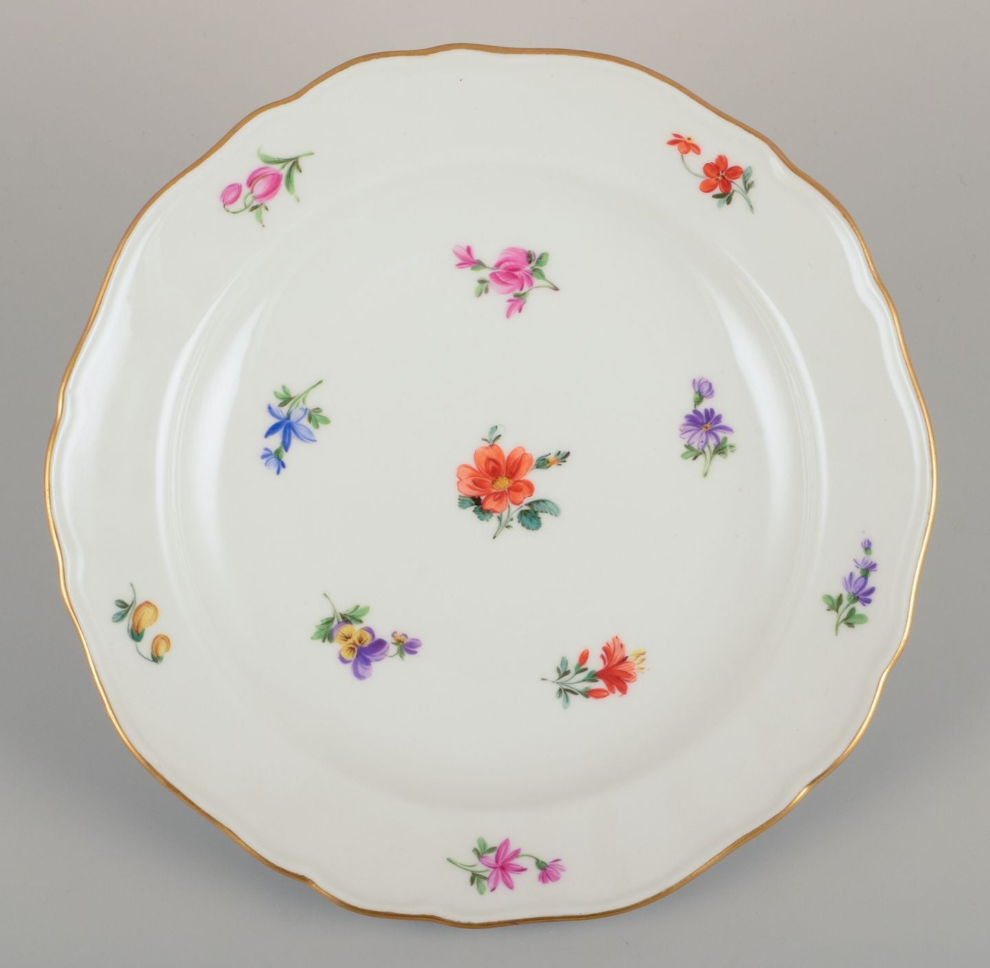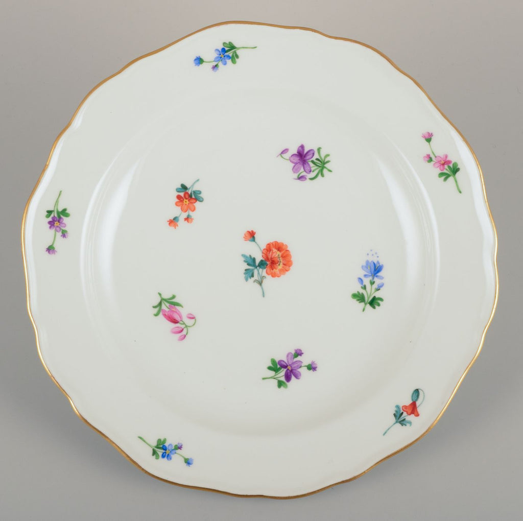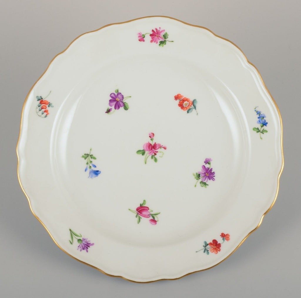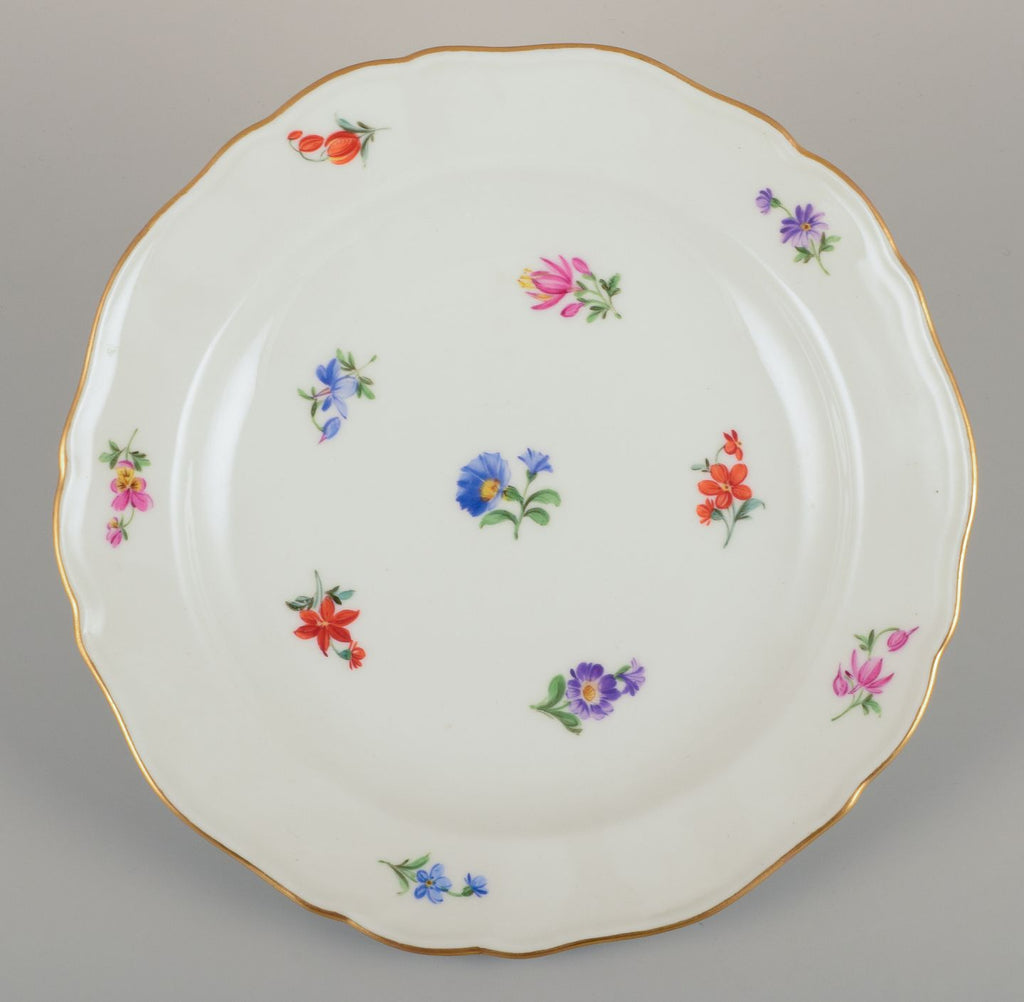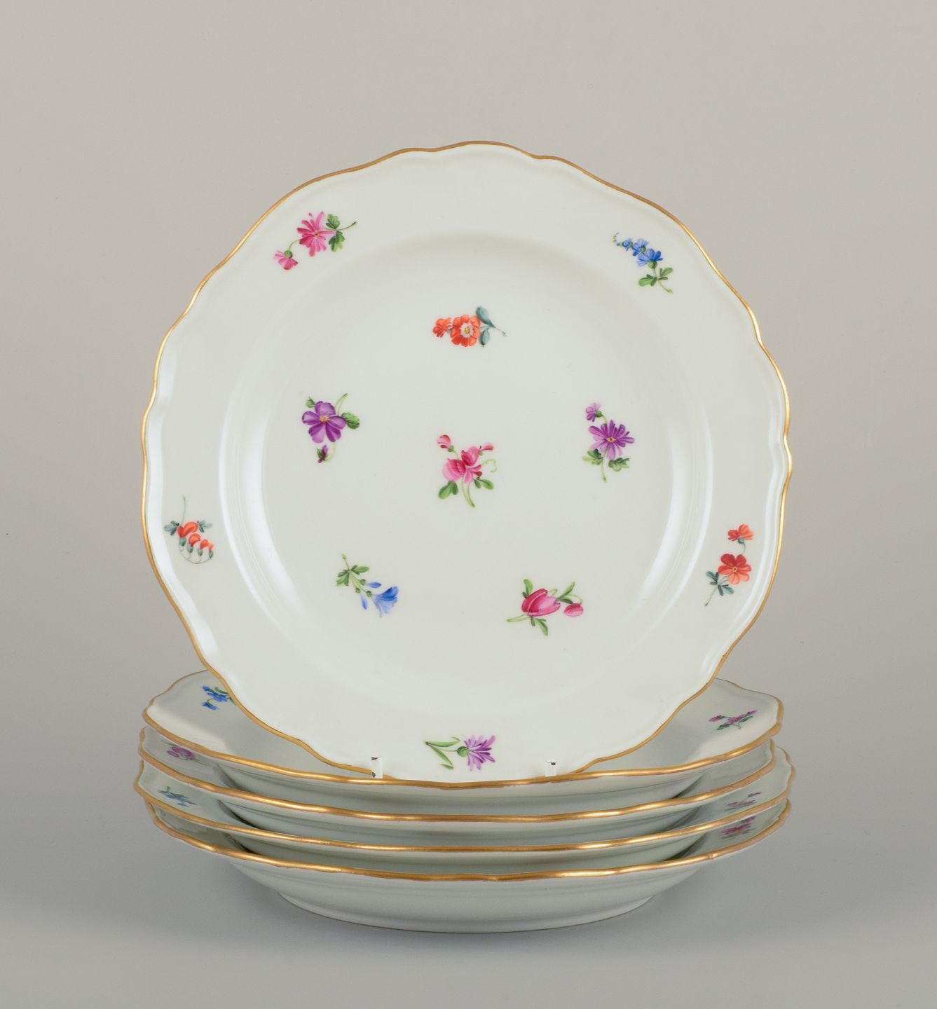 Meissen, Germany. Five porcelain plates with floral motifs, gold rim. Approx. 1920s/1930s.
