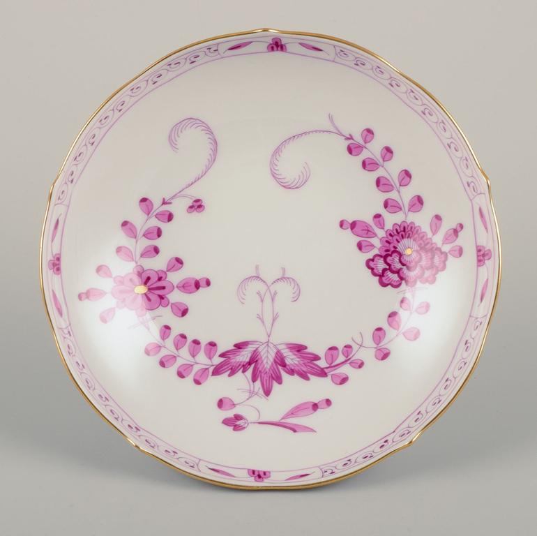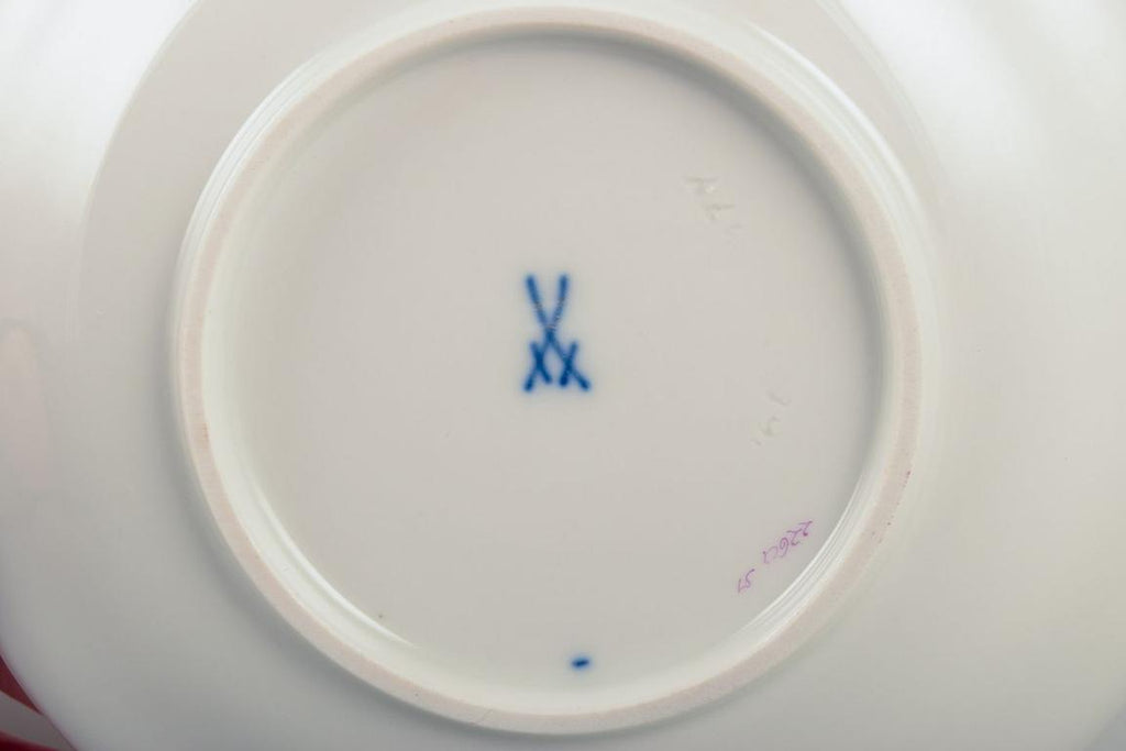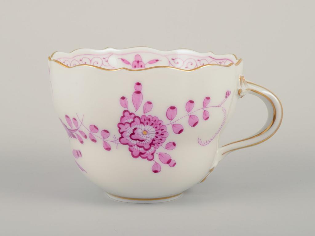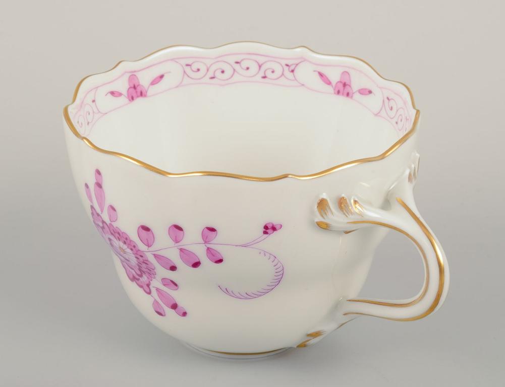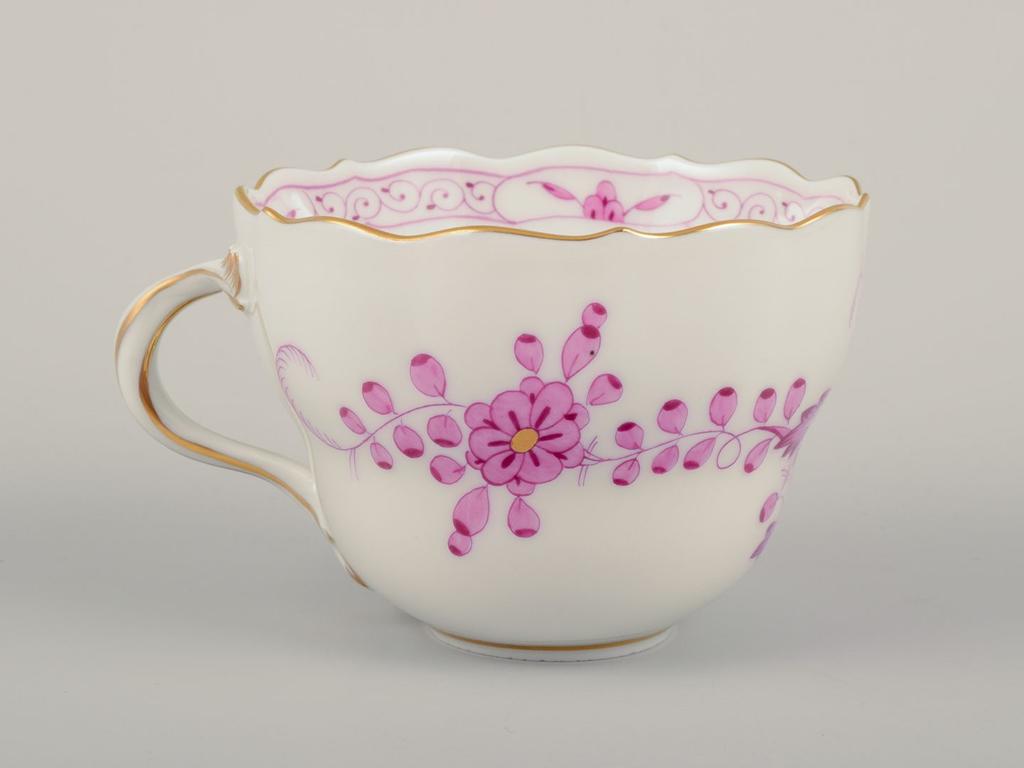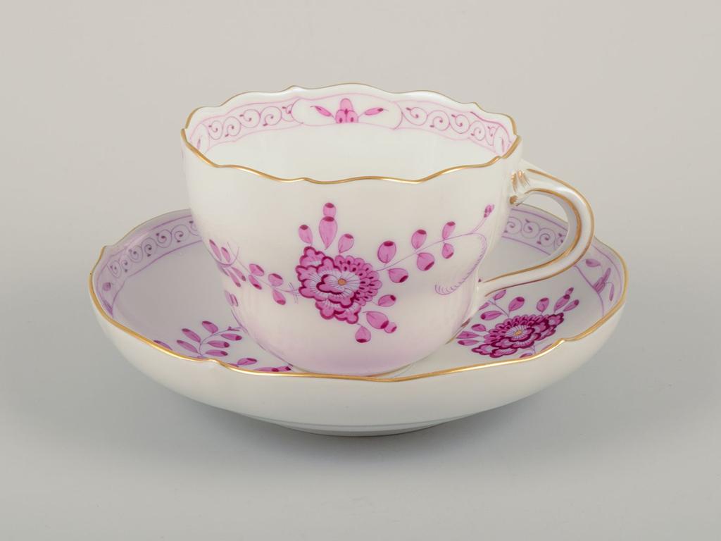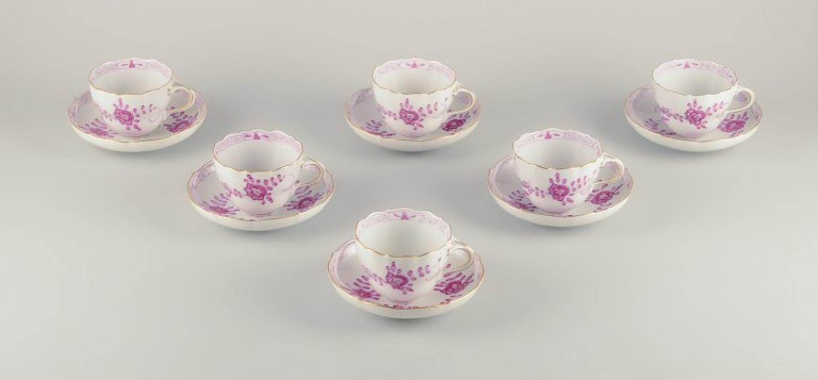 Meissen, Germany. Set of six pairs of "Pink Indian" porcelain coffee cups and saucers. Mid-20th C.