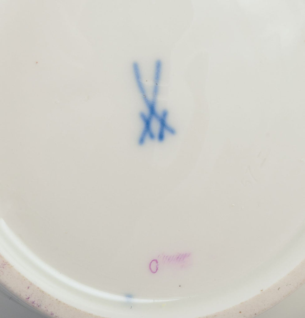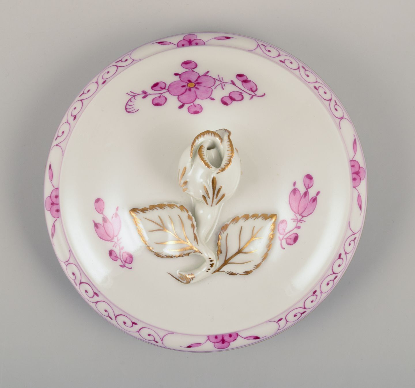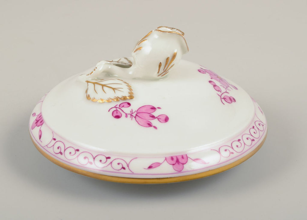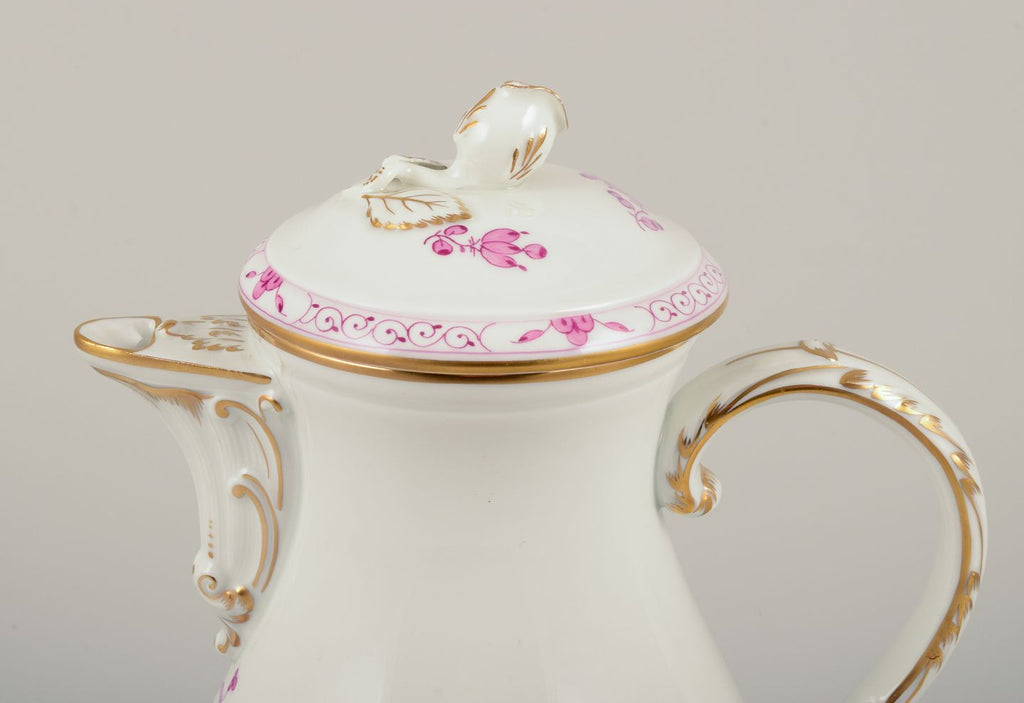 Meissen, Germany. "Pink Indian" porcelain coffee pot with purple floral motifs, gold rim. Mid-20th C.
