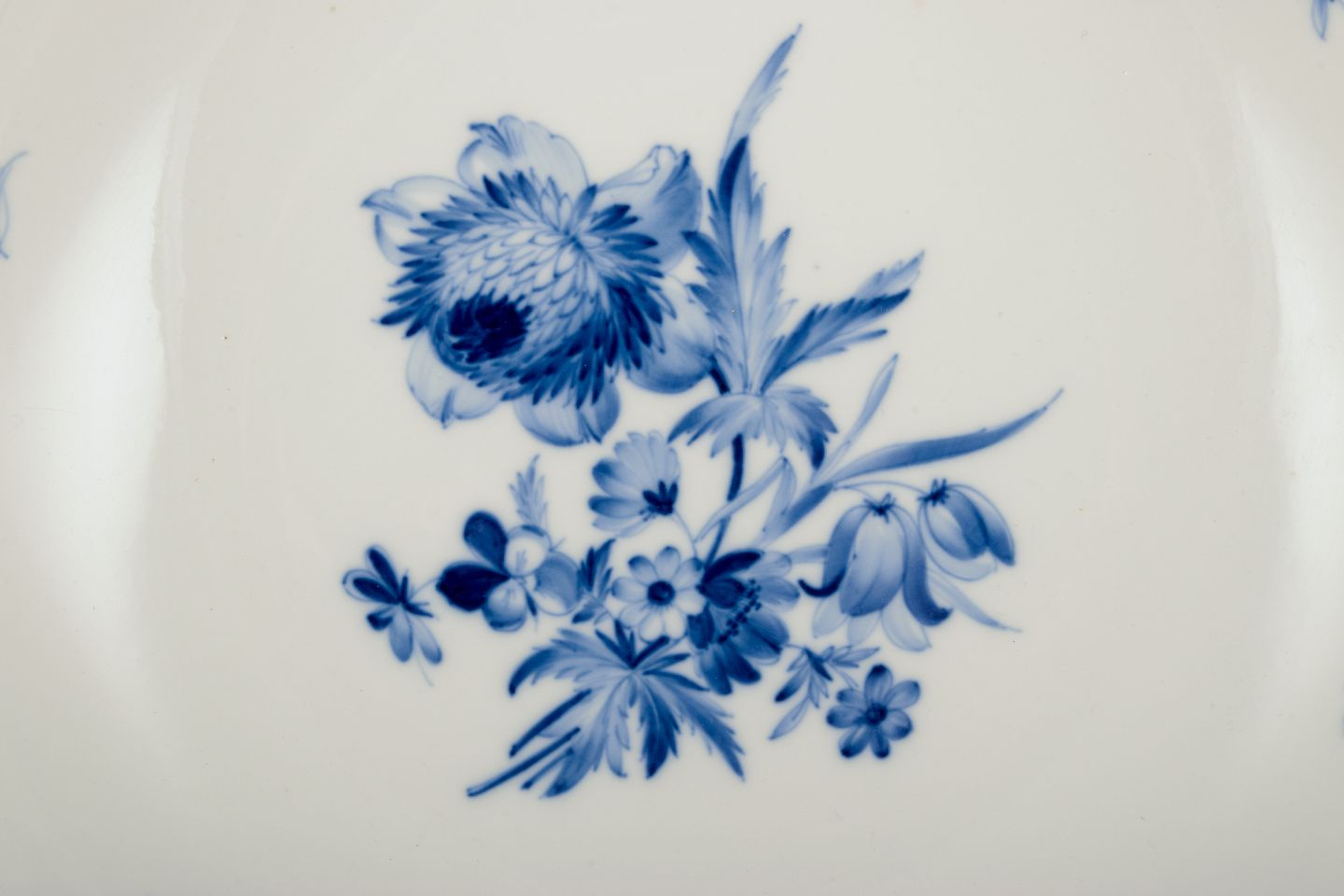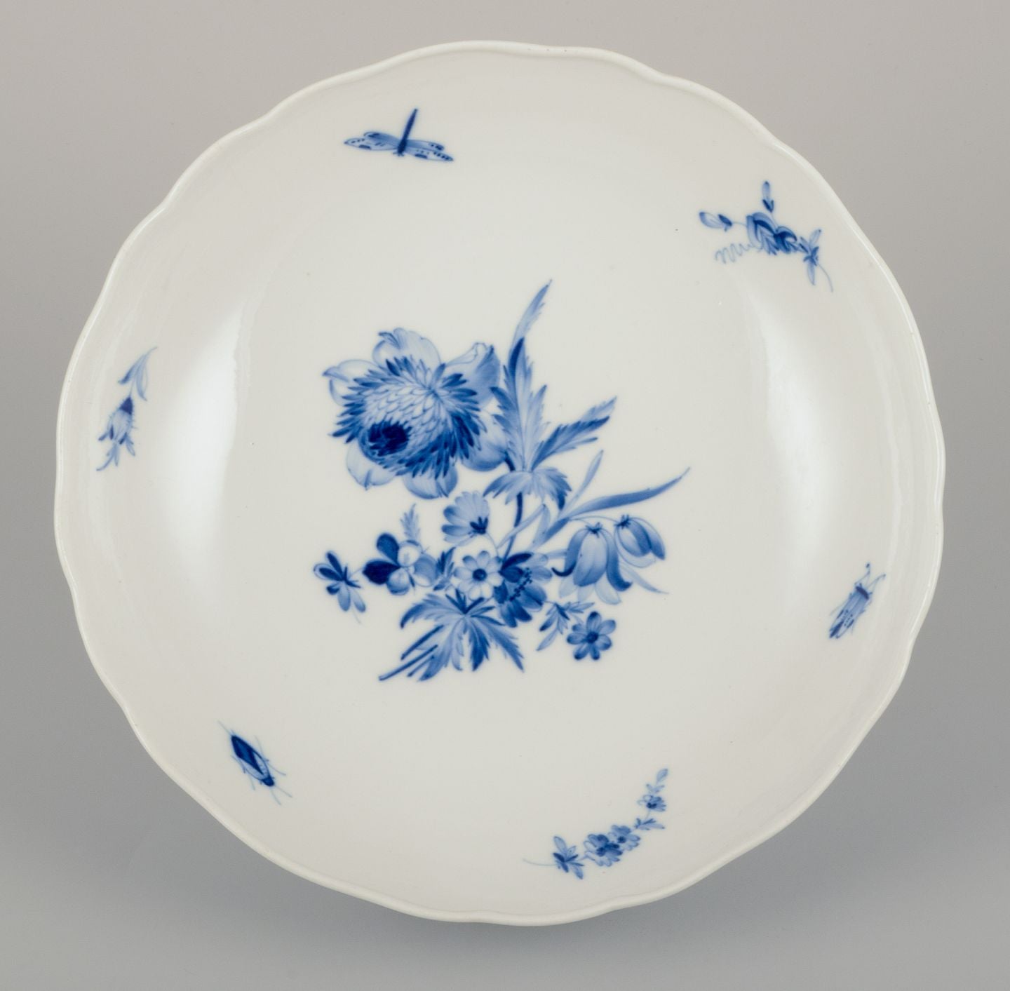 Meissen, Germany. Large porcelain bowl with floral motifs and insects in blue. 1920s/30s