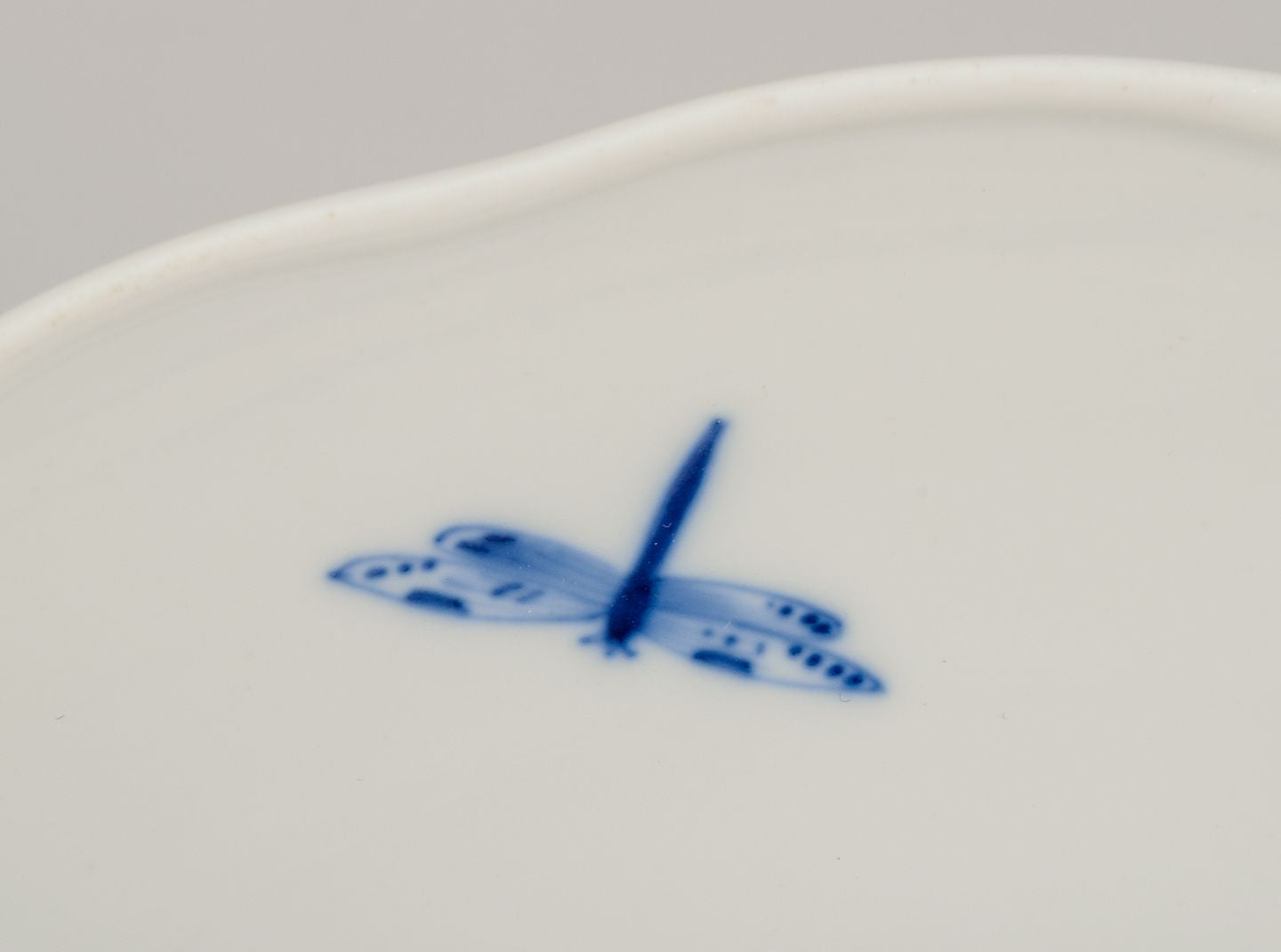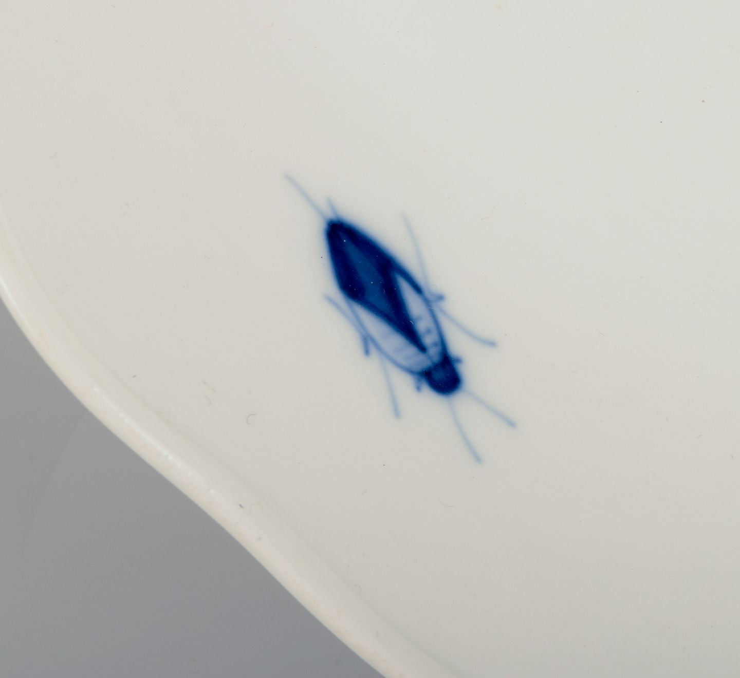 Hand-painted with floral motifs and insects in blue.