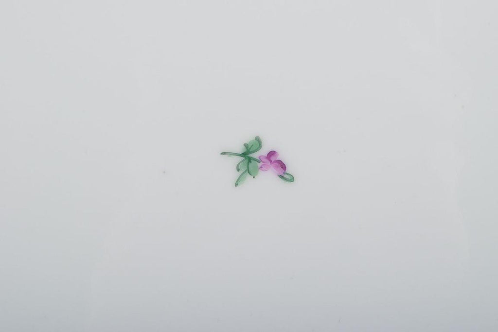 Hand-painted with polychrome floral motifs, gold rim.
