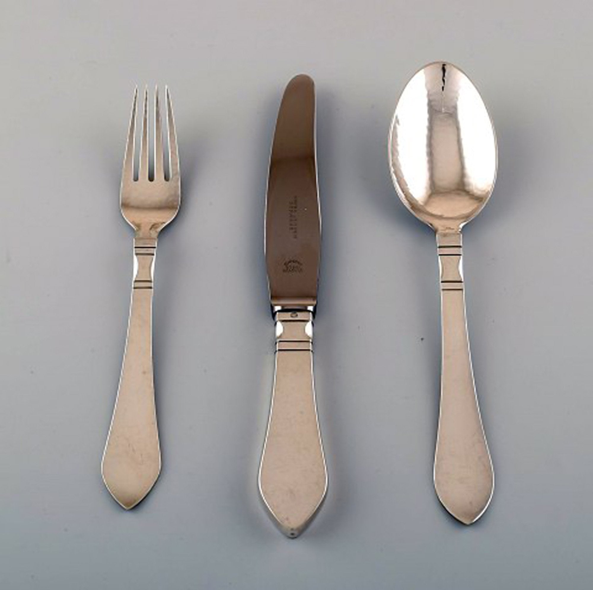 Georg Jensen. Continental (Antik) 6 p. Complete lunch silver service, hammered.