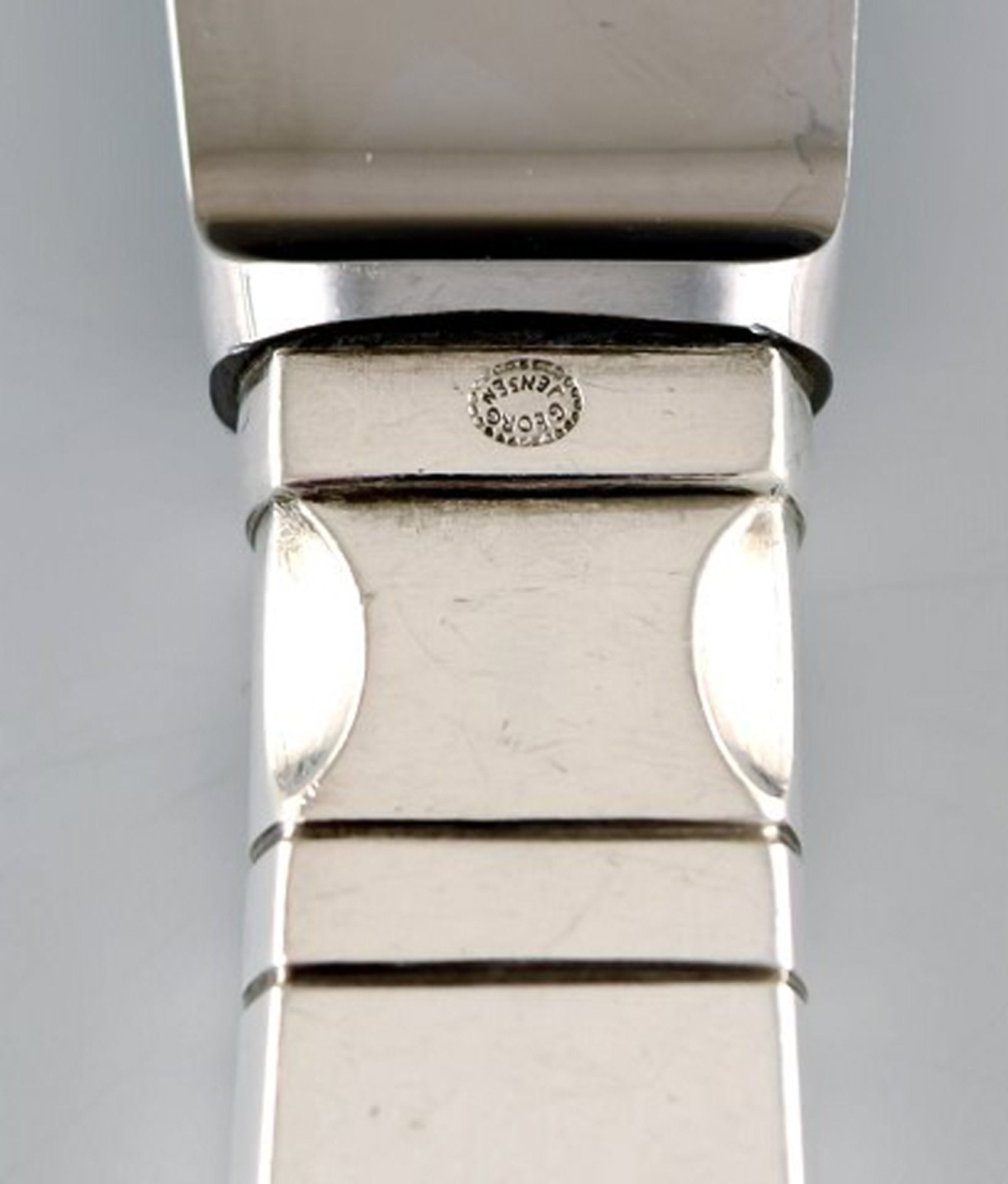 Georg Jensen. Continental (Antik) 6 p. Complete lunch silver service, hammered. Comprising of: 6 lunch knives, 6 lunch forks, 6 dessert spoons. The cutlery is designed by Georg Jensen and designed in 1906. Stamped. In perfect condition. Measures: Knife 20,5 cm.