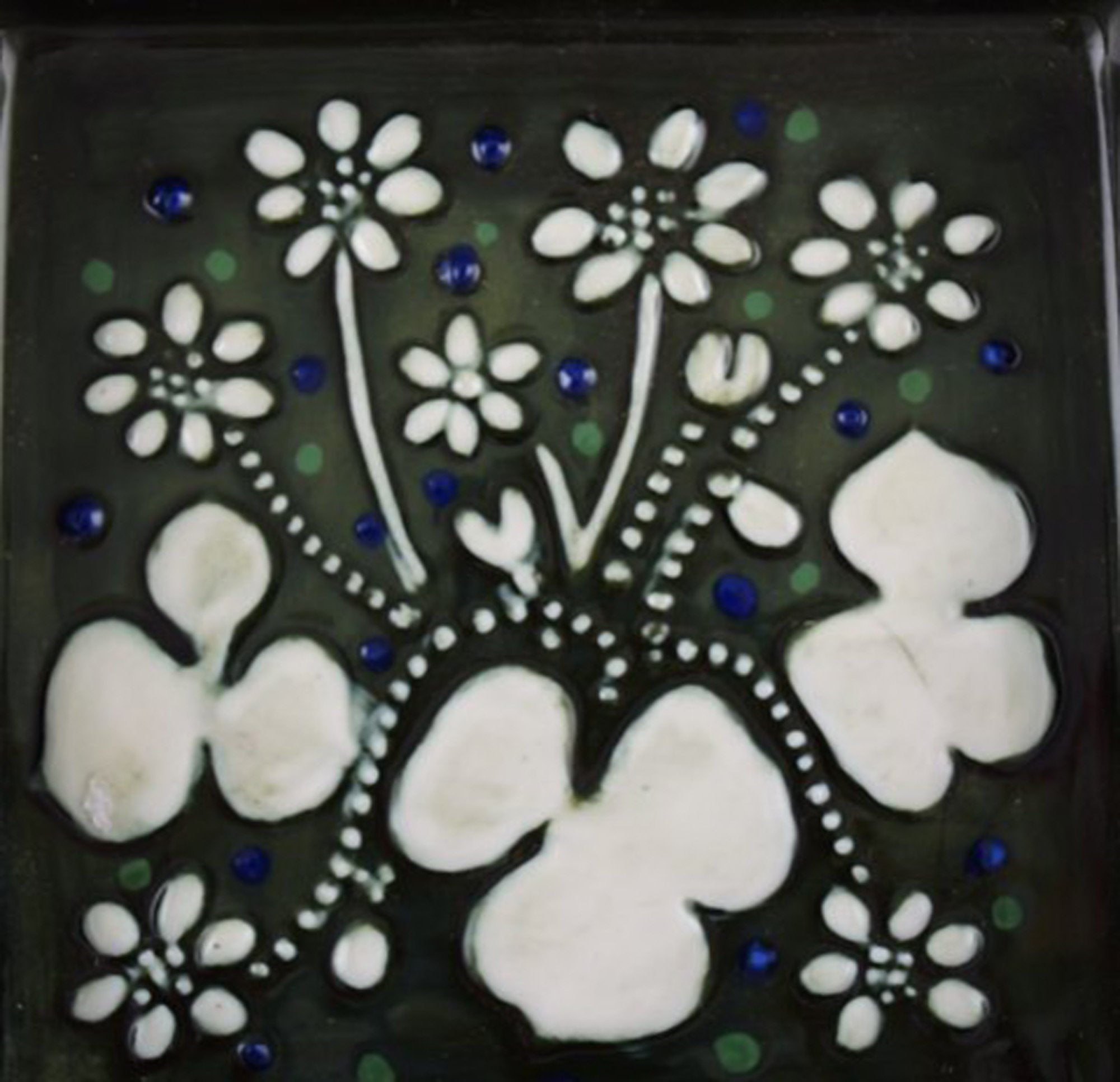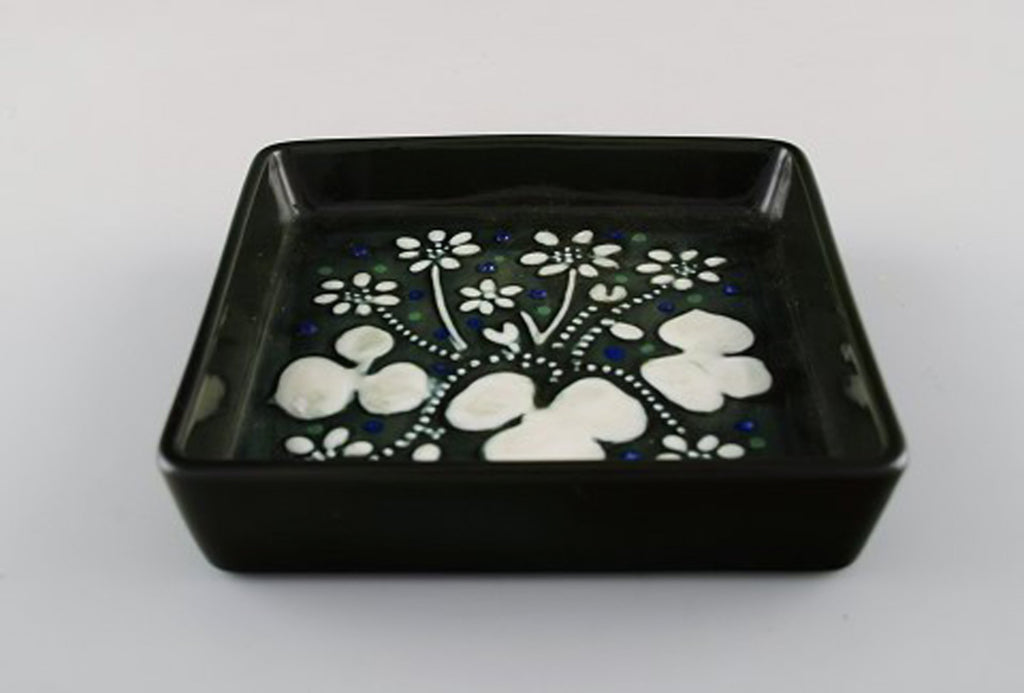 Sylvia Leuchovius for Rörstrand. Square dish in glazed ceramics. White flowers on green background. 1960 / 70's. Measures: 13 x 3 cm In very good condition. Stamped.