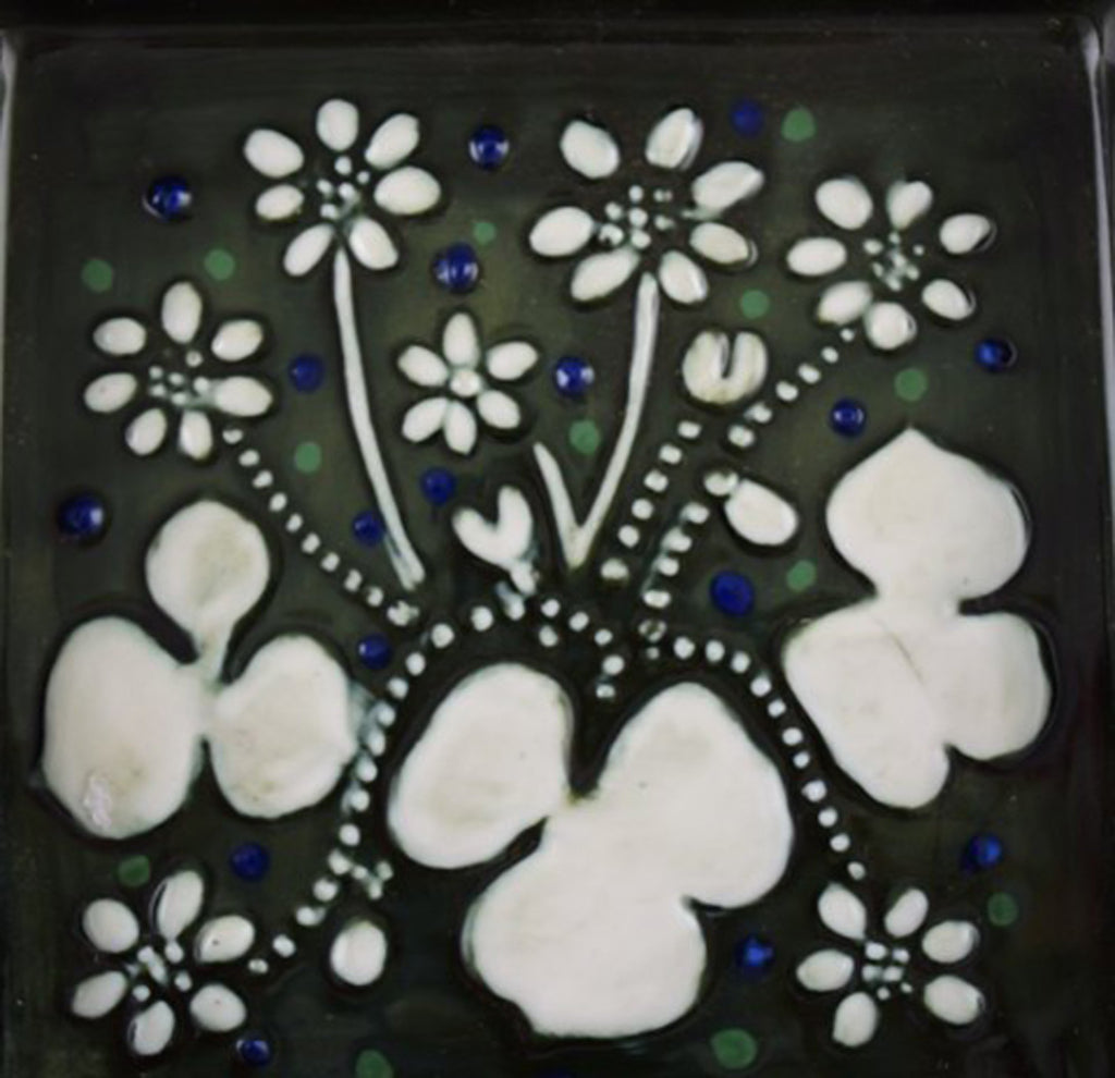 Sylvia Leuchovius for Rörstrand. Square dish in glazed ceramics. White flowers on green background. 1960 / 70's.