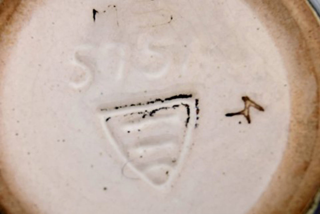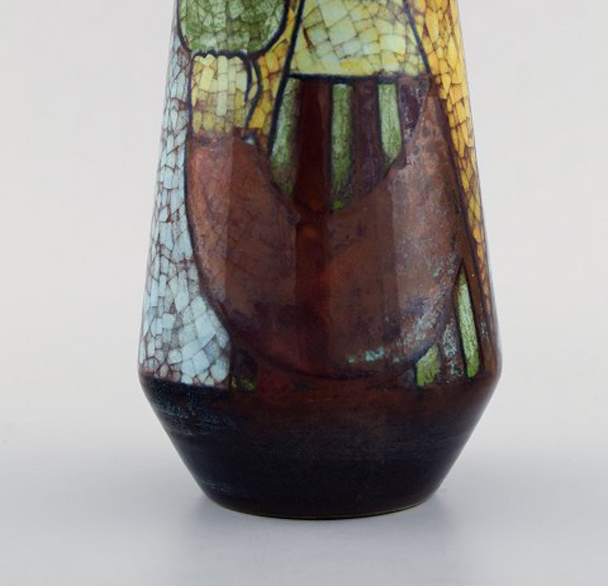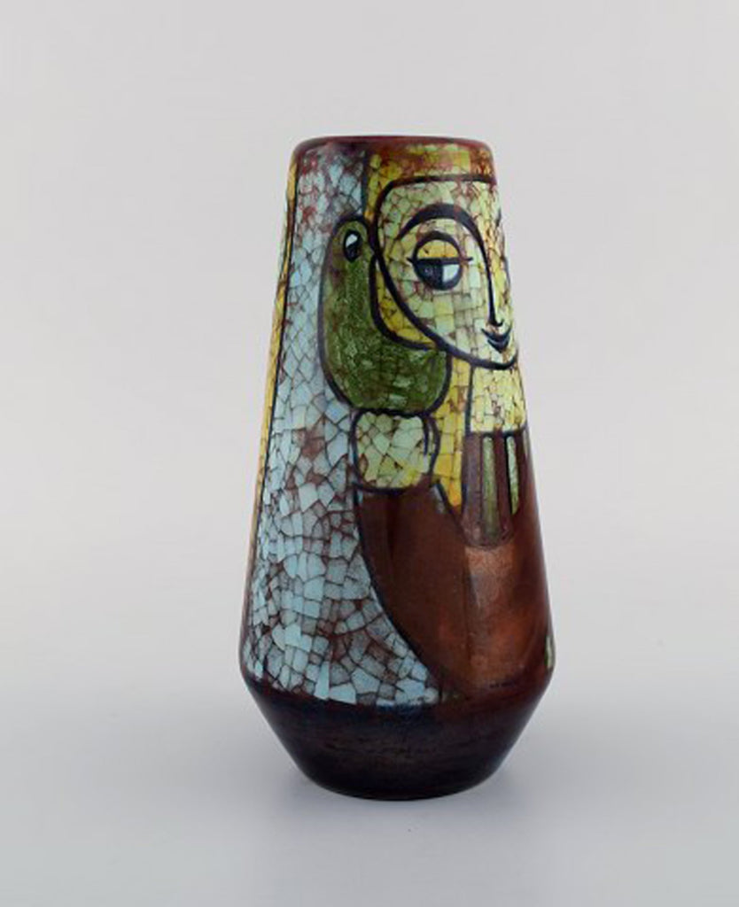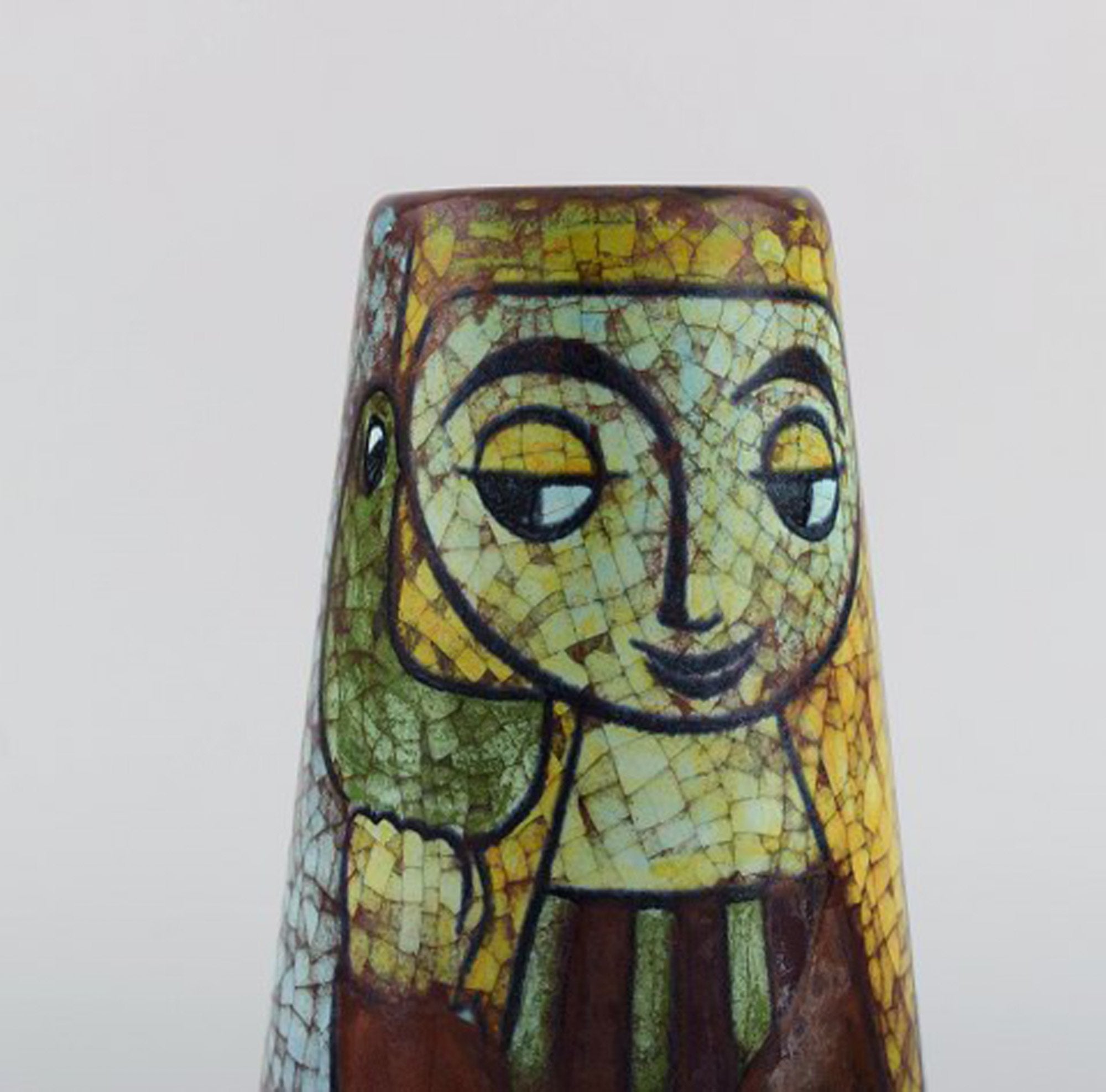 Michael Andersen, Denmark. Vase in glazed ceramics with young girls and birds. Beautiful crackled glaze. 1950s.