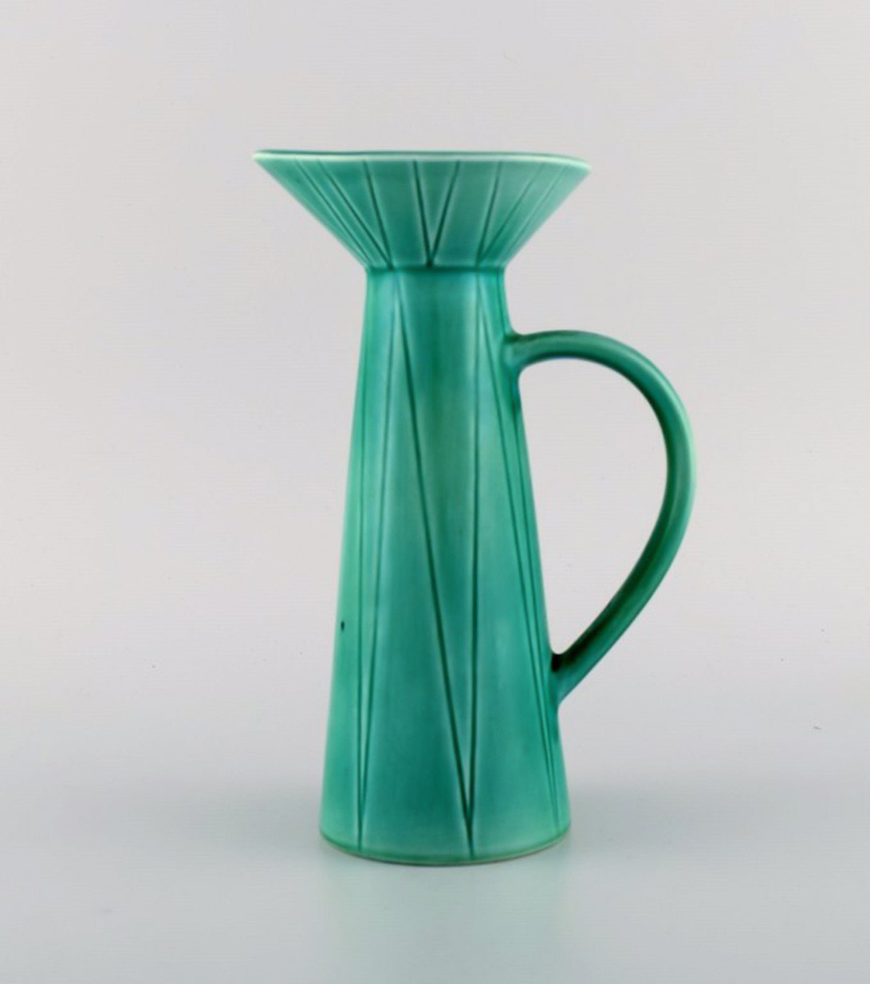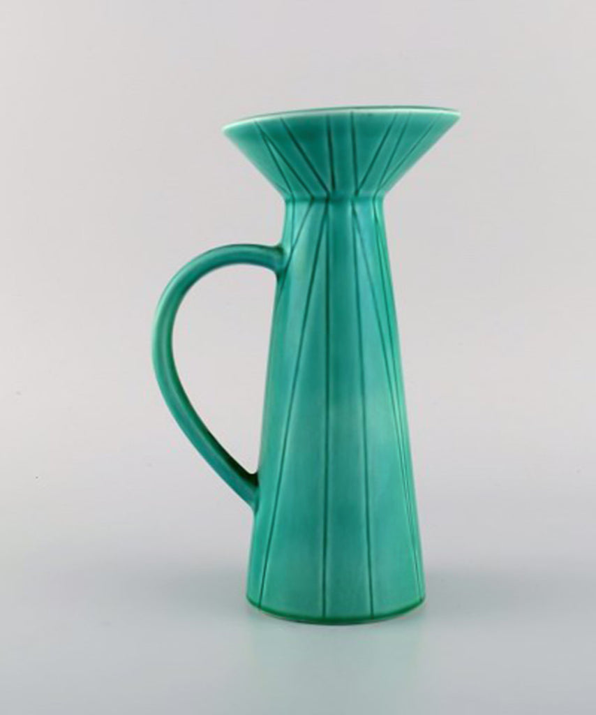 Rörstrand, Sweden. Jug in glazed ceramics. Beautiful glaze and incised decoration. 1960s.