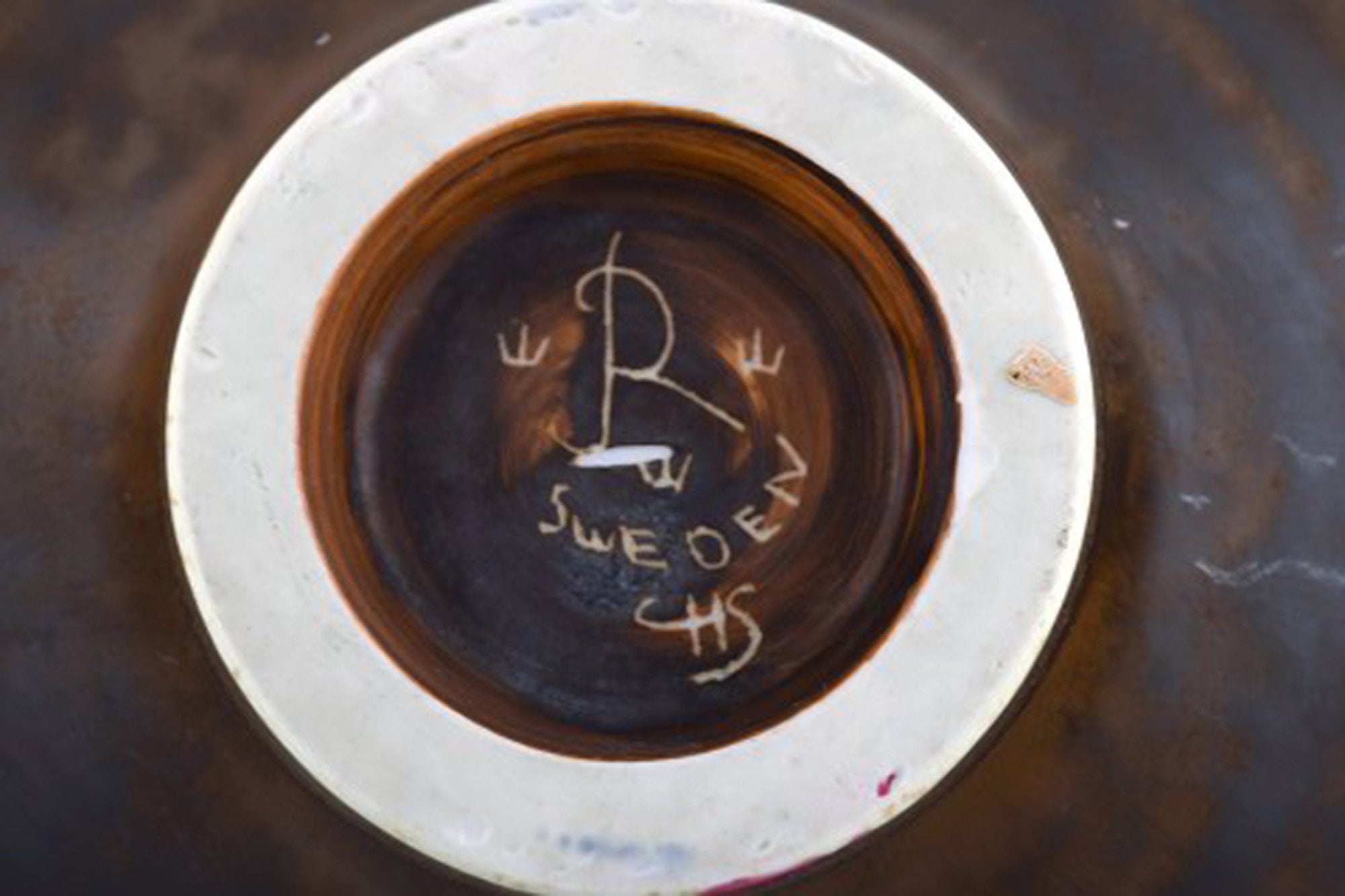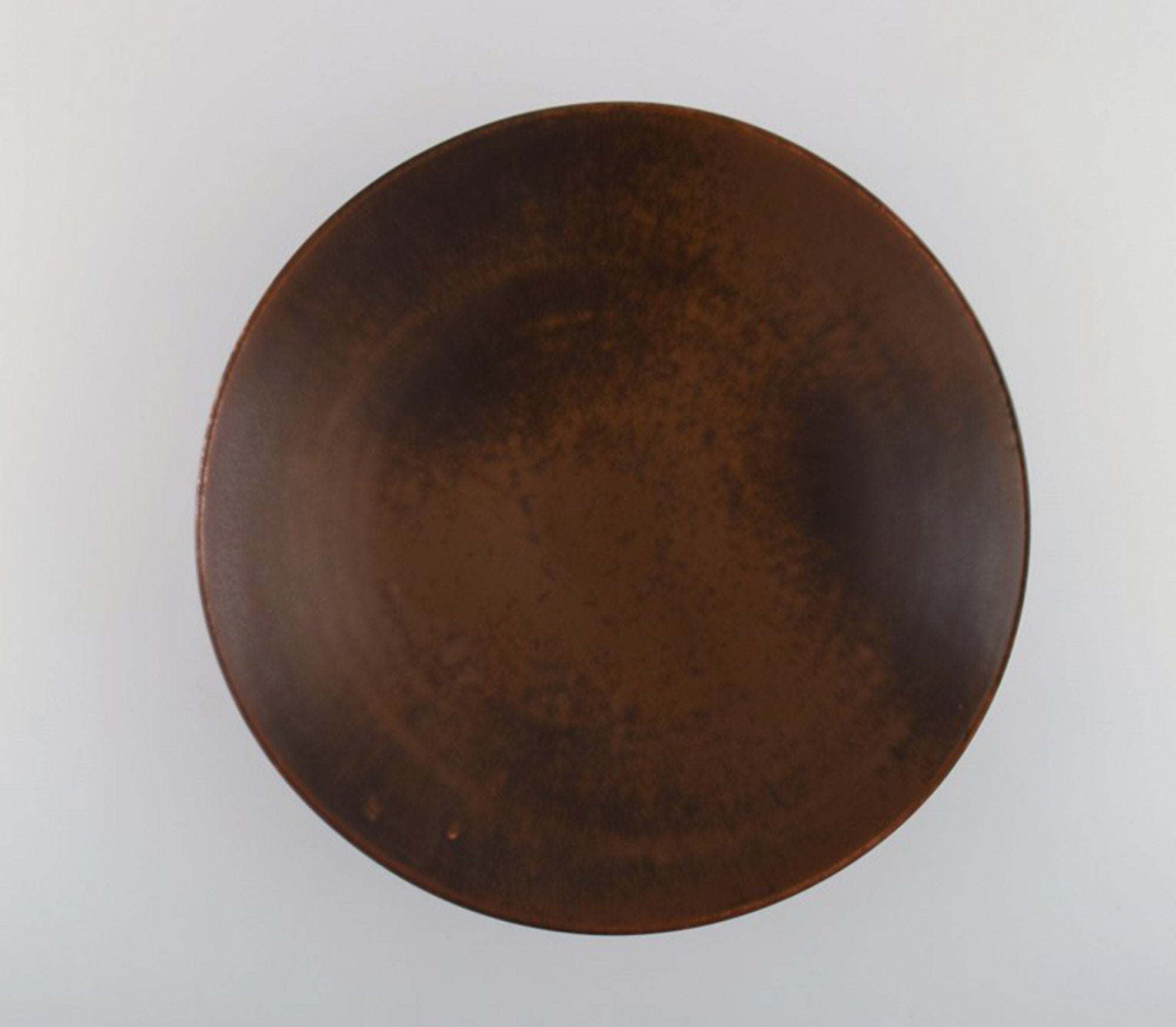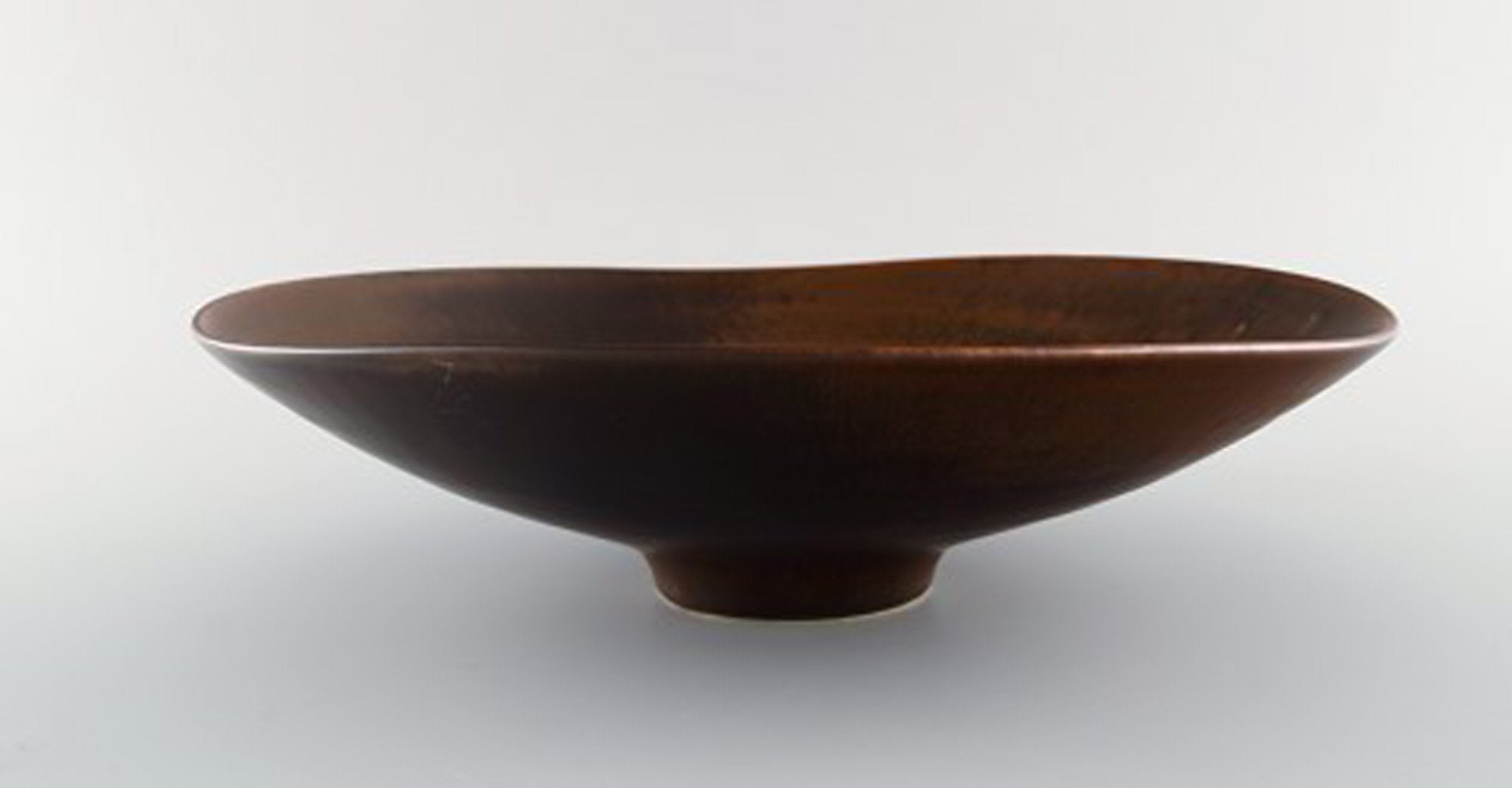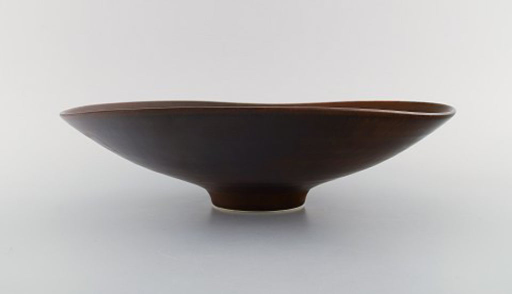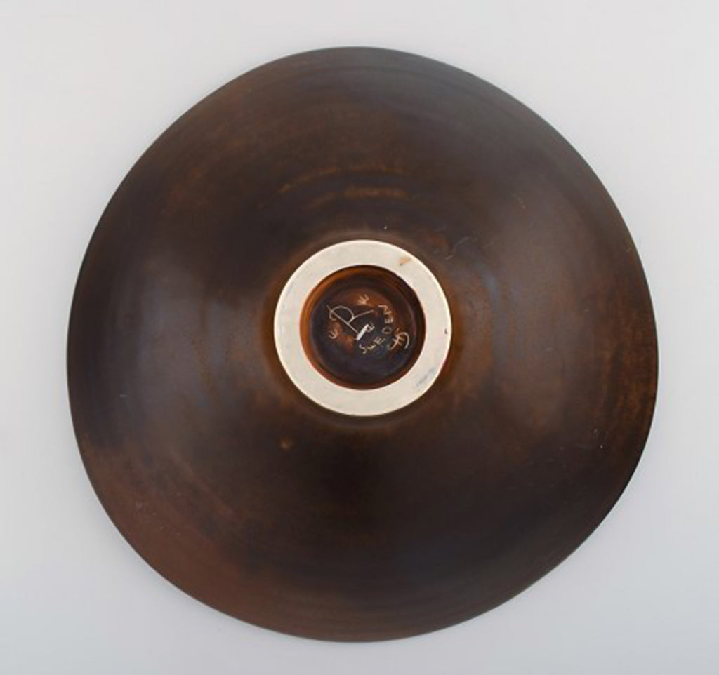 Carl Harry Stålhane for Rörstrand. Large dish / bowl on base in glazed ceramics. Beautiful glaze in brown shades. Mid-20th century.