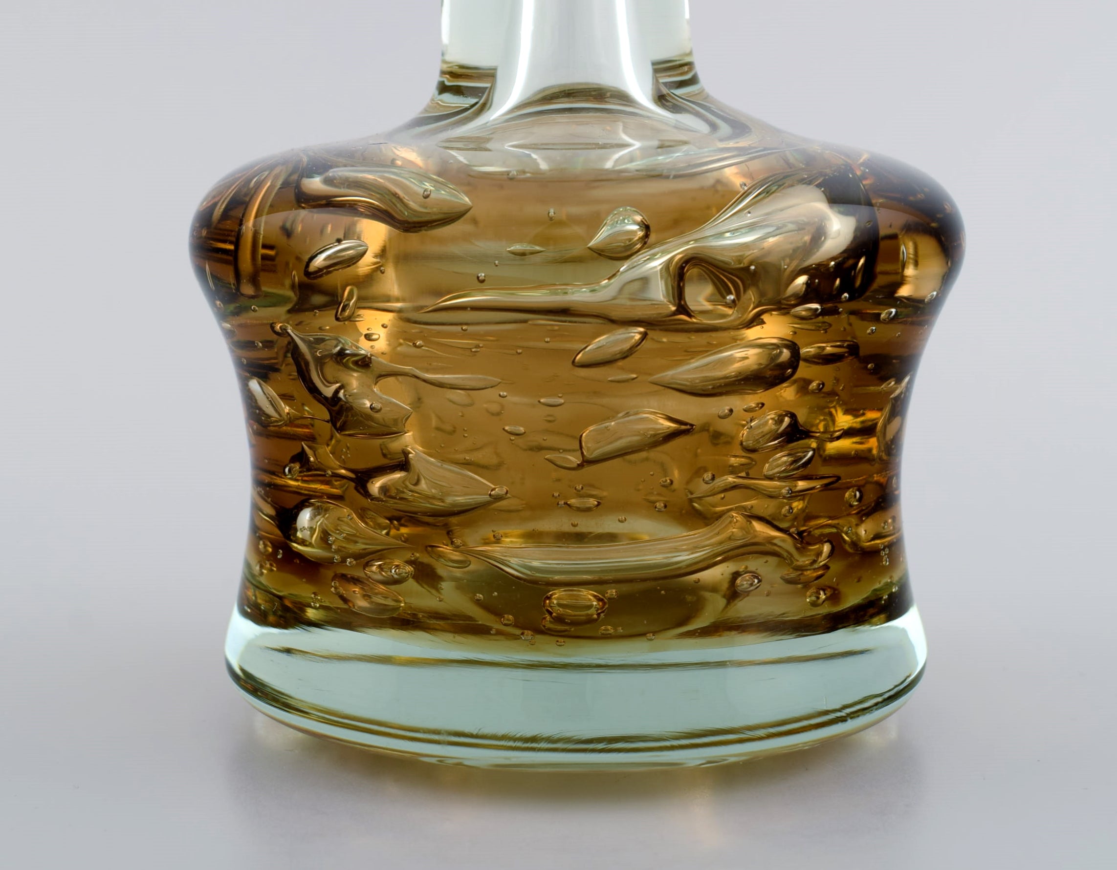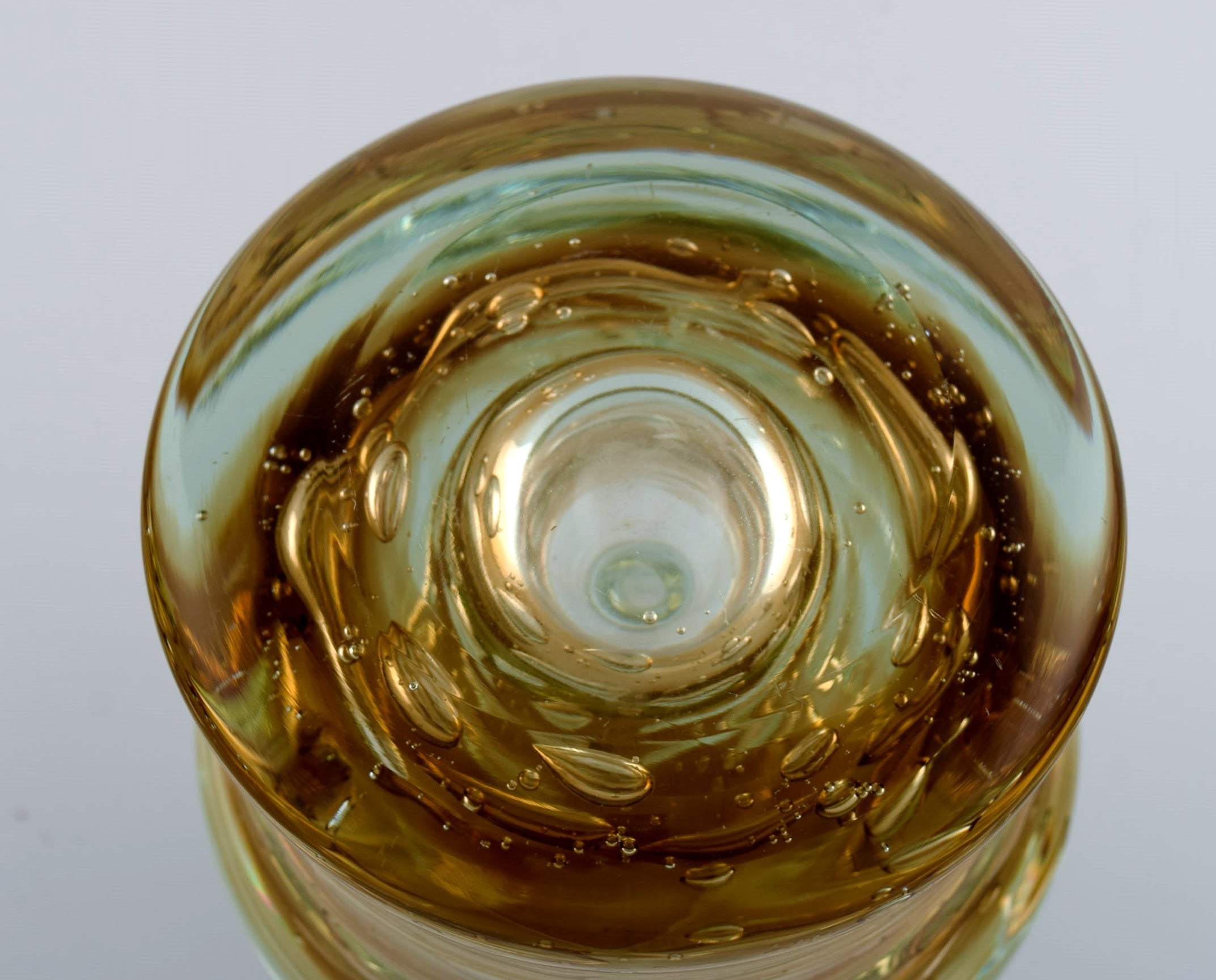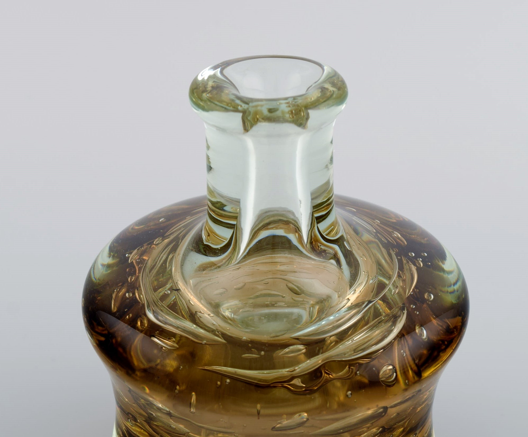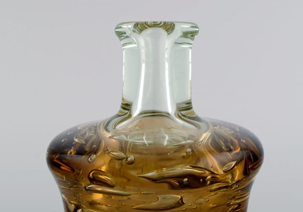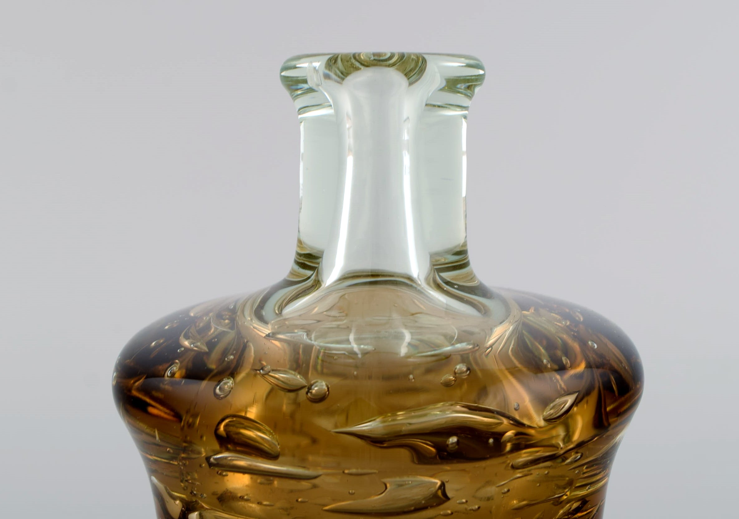 Bottle shaped Murano vase in clear and smoky mouth-blown art glass. Italian design, 1960 / 70s.