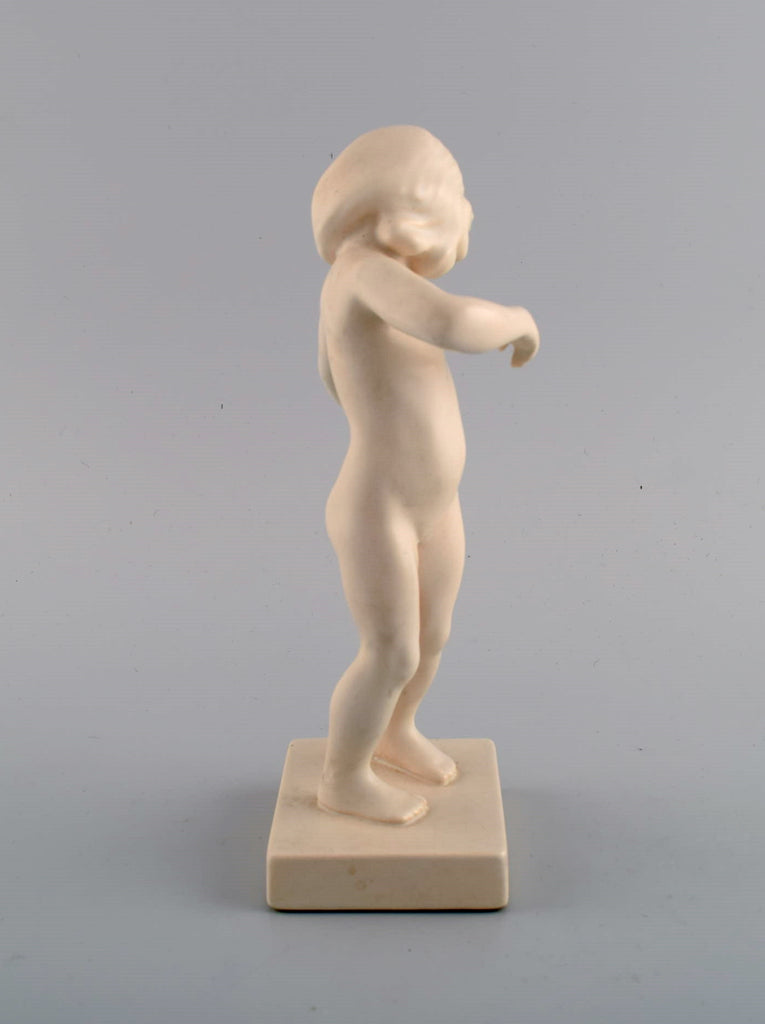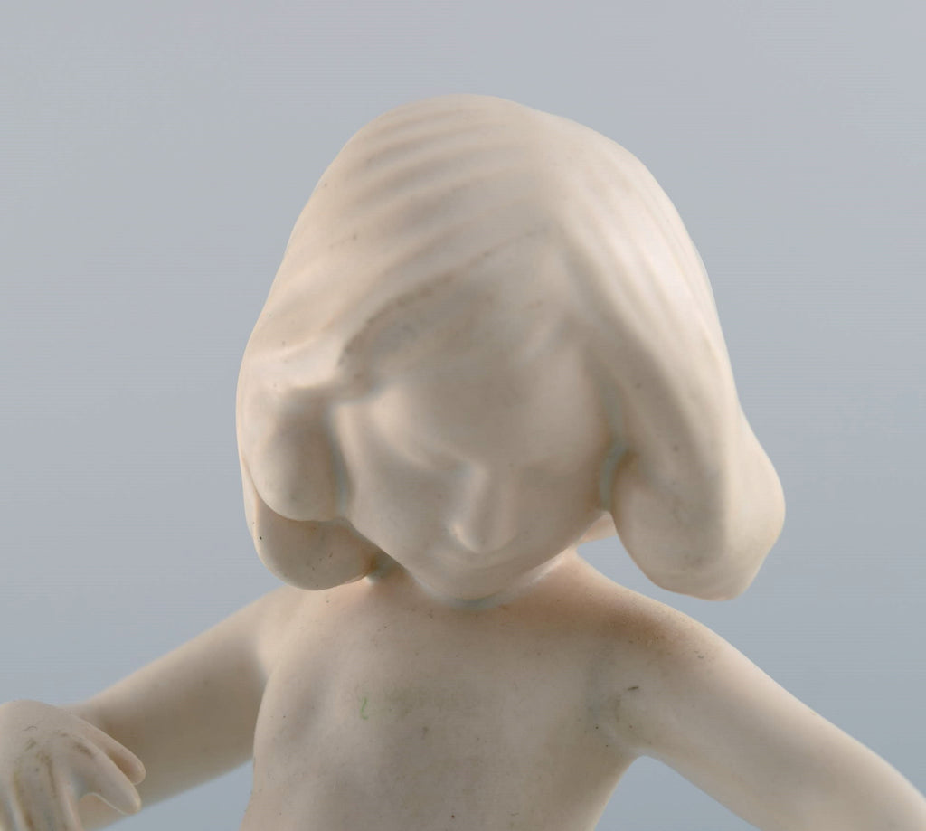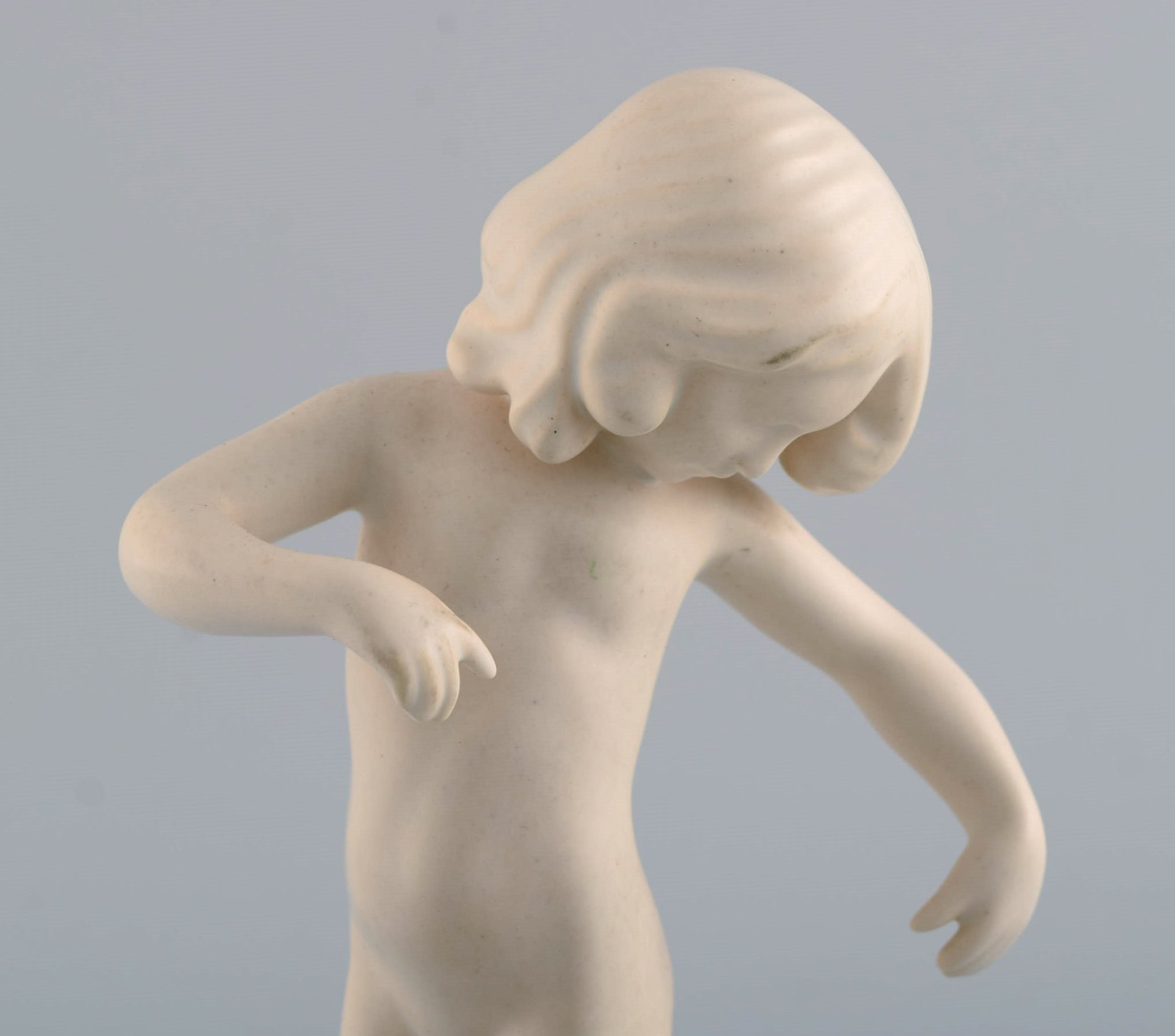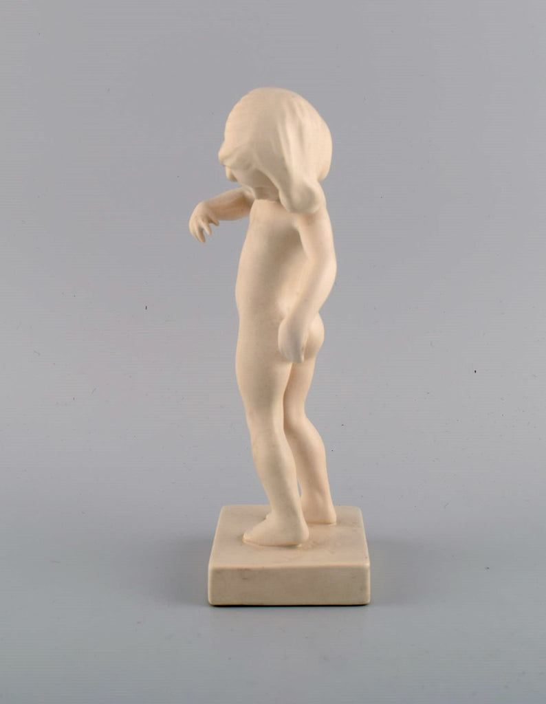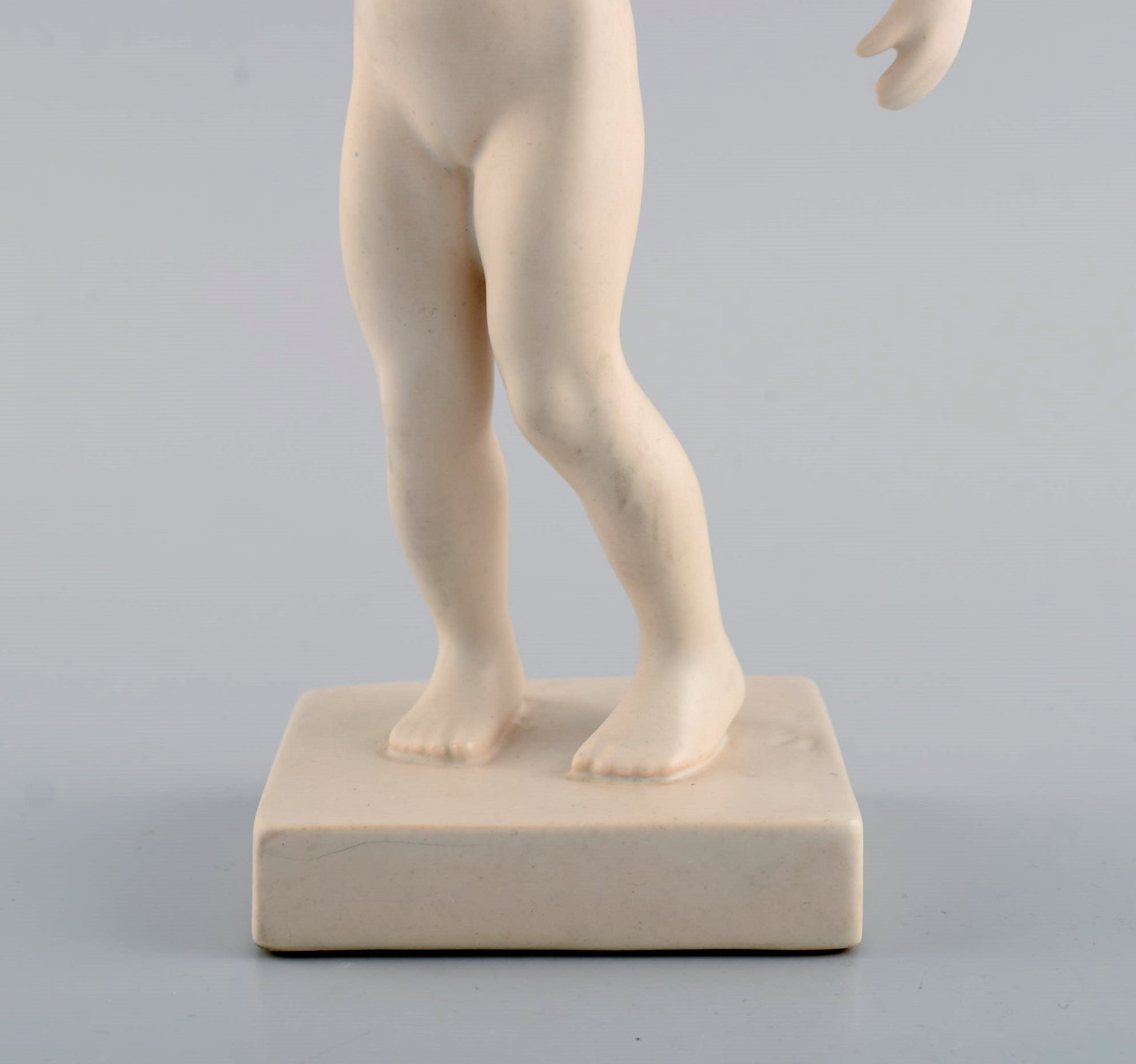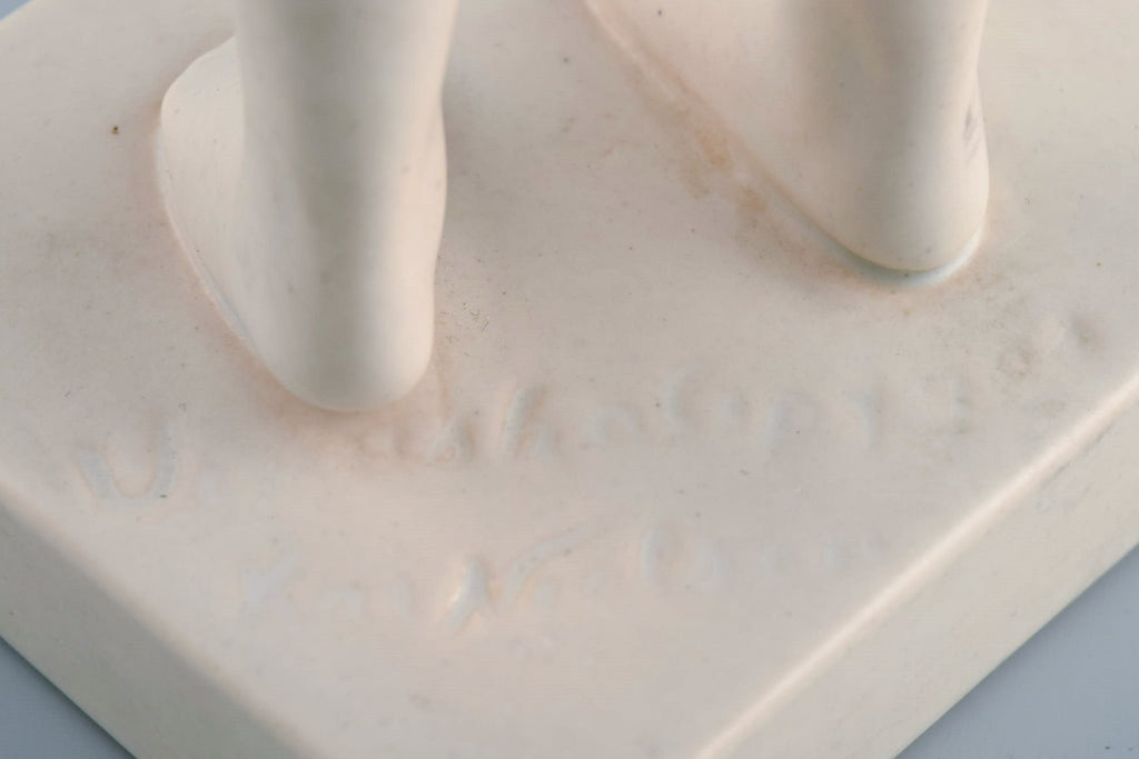 P. Ipsen's, Denmark. Girl no. 888. In rare white glaze. Venus Kalipygos, Design Kai Nielsen. 1940's.