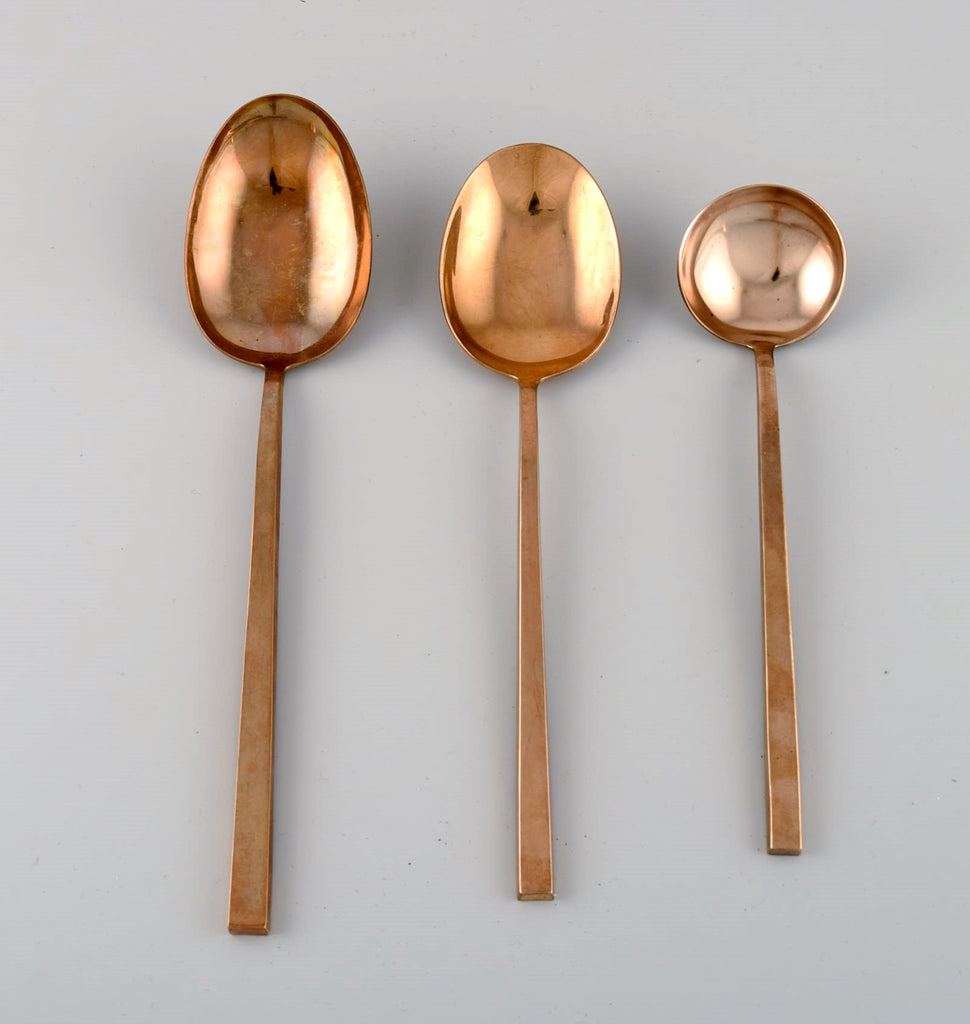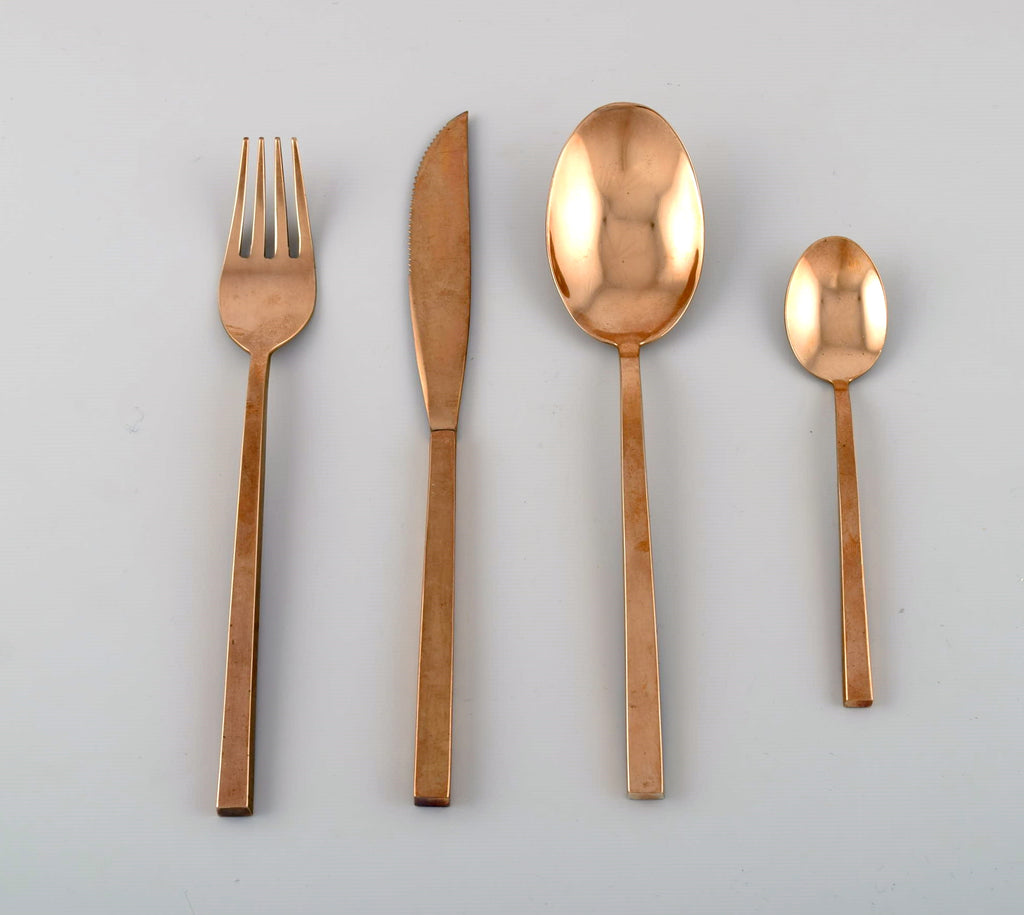 Sigvard Bernadotte 'Scanline' brass cutlery. Complete dinner service for 10 people. Danish design 60s / 70s.