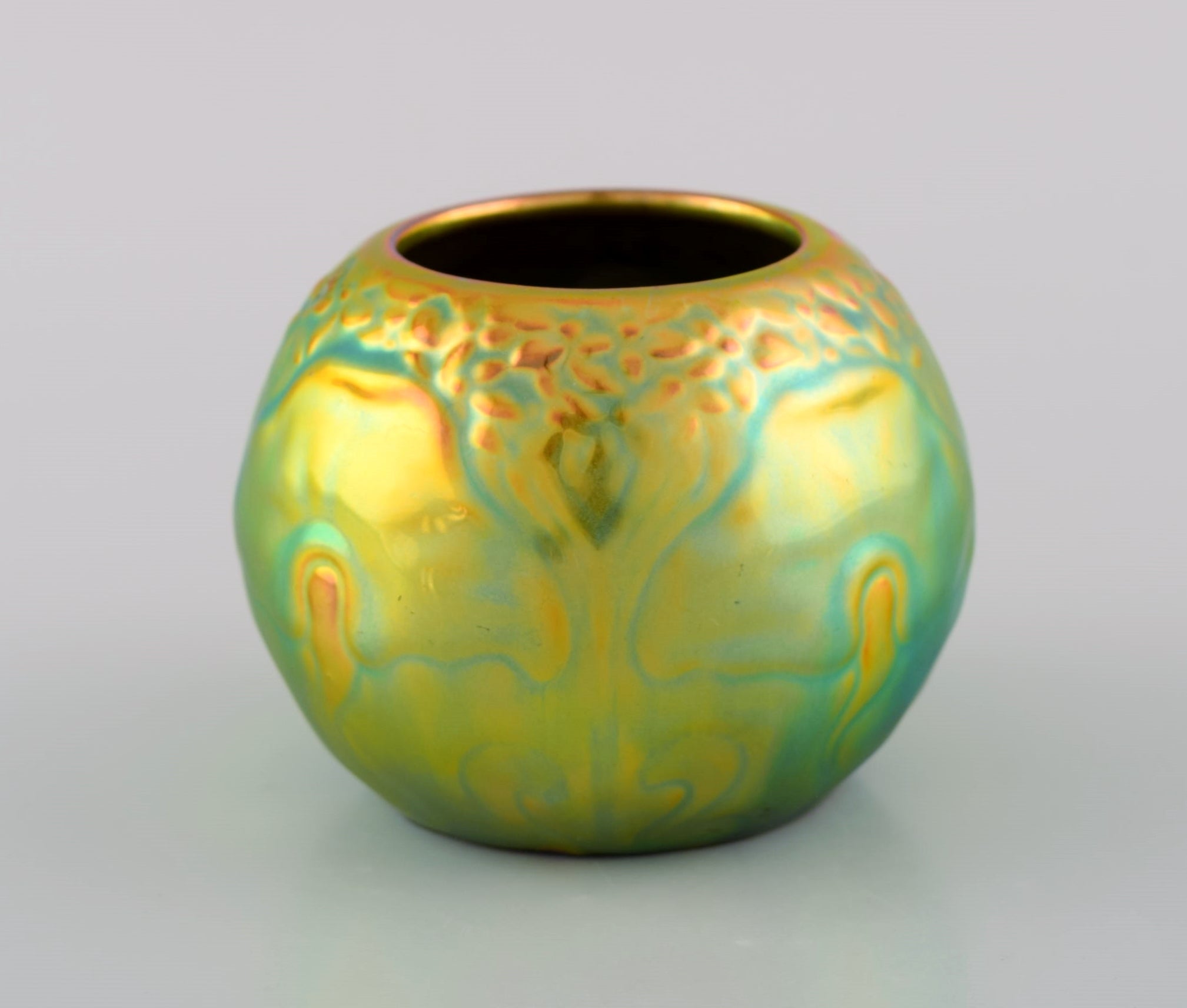 Round Zsolnay vase in glazed stoneware. Beautiful eozin glaze. Mid-20th century.