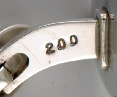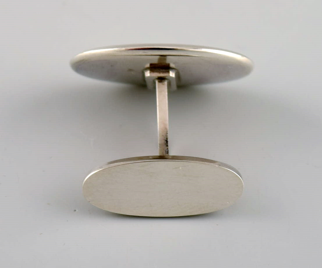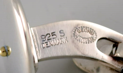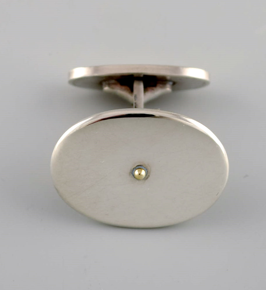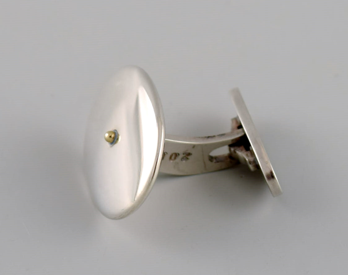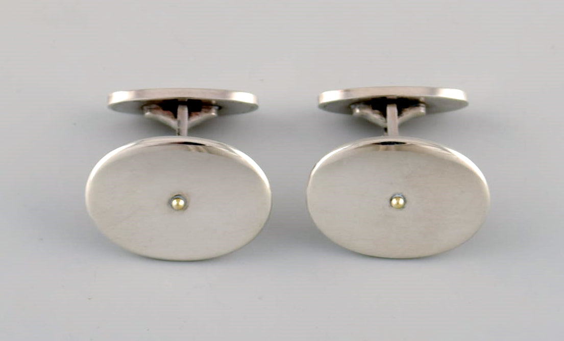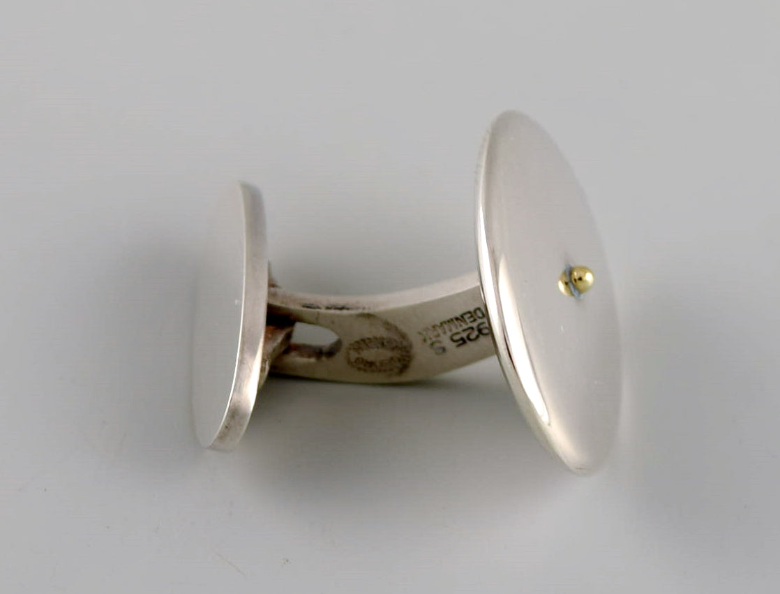 A pair of modernist Georg Jensen cufflinks in sterling silver and gold. Model number 200. Mid 20th century.