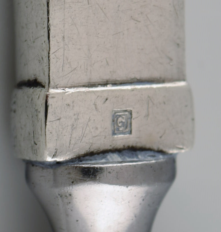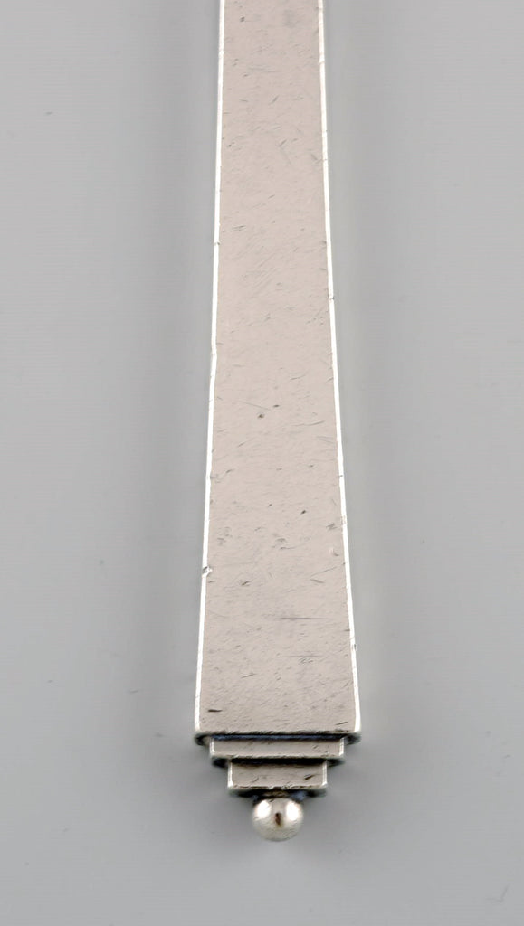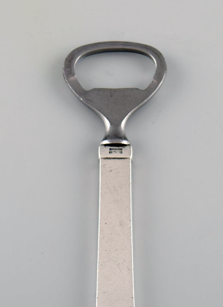 Georg Jensen Pyramid bottle opener in sterling silver and stainless steel. Dated 1933-44.