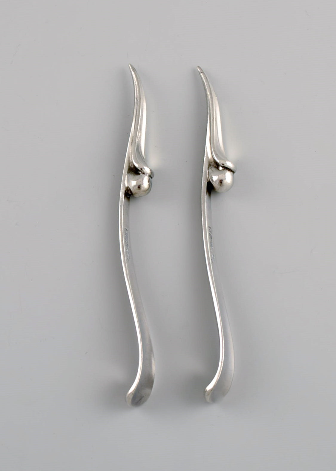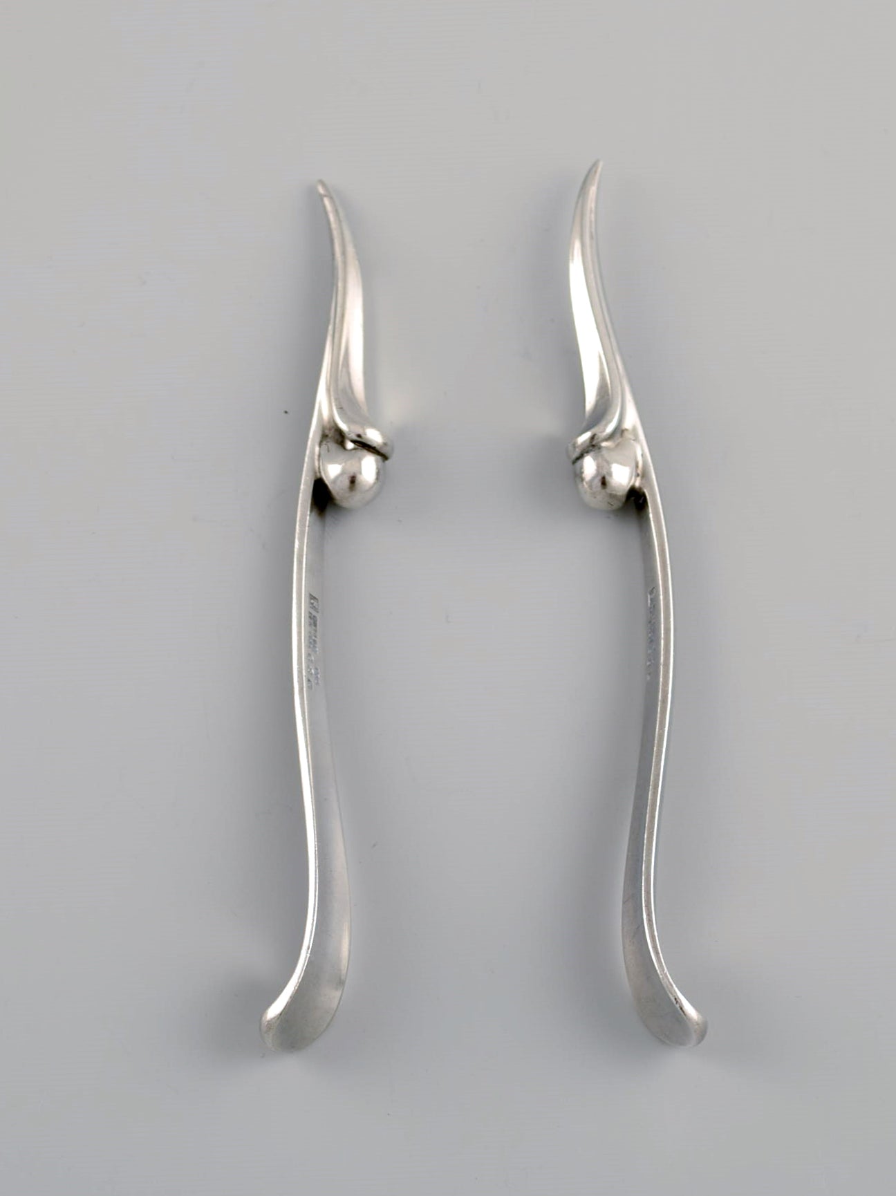 Two Georg Jensen nut / cocktail picks in sterling silver. Ornamental design. Model 68B. Dated 1933-44.