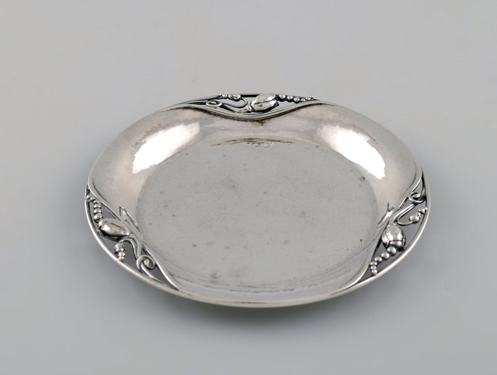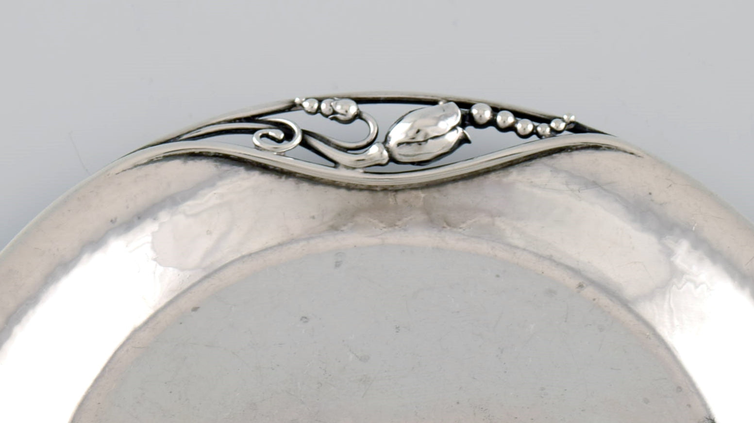 Georg Jensen Blossom bottle tray in hammered sterling silver. Model 2A. Dated 1915-1930.