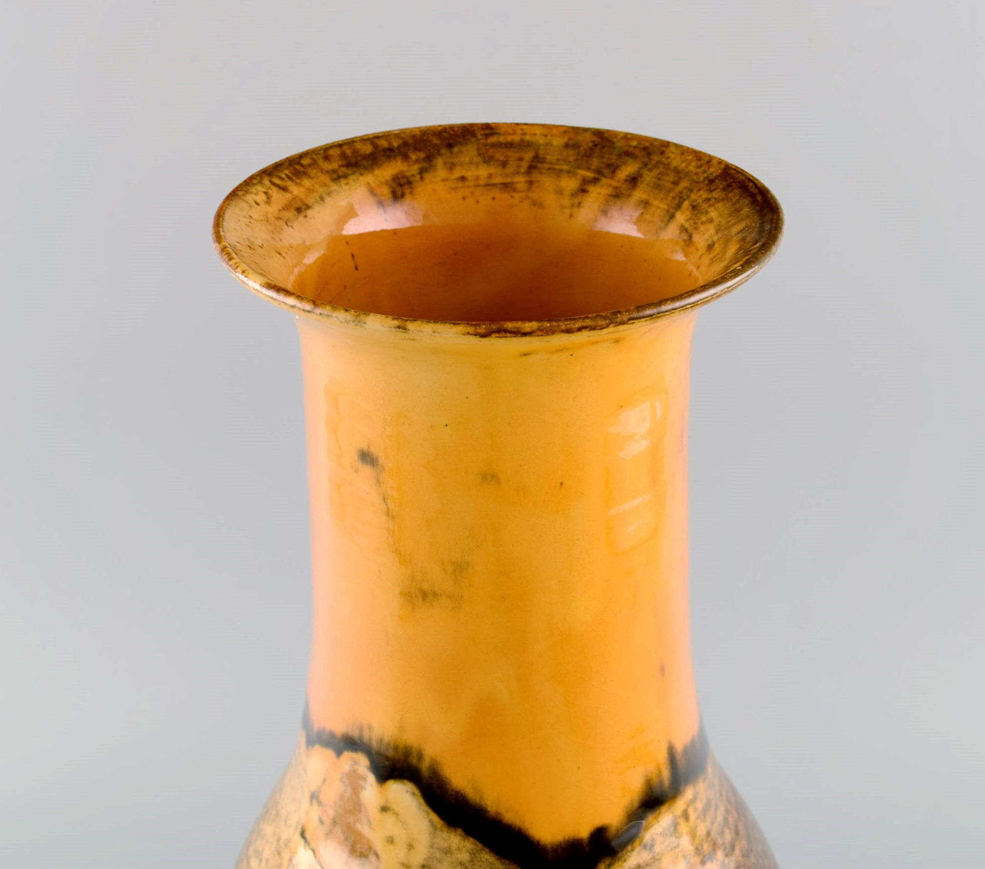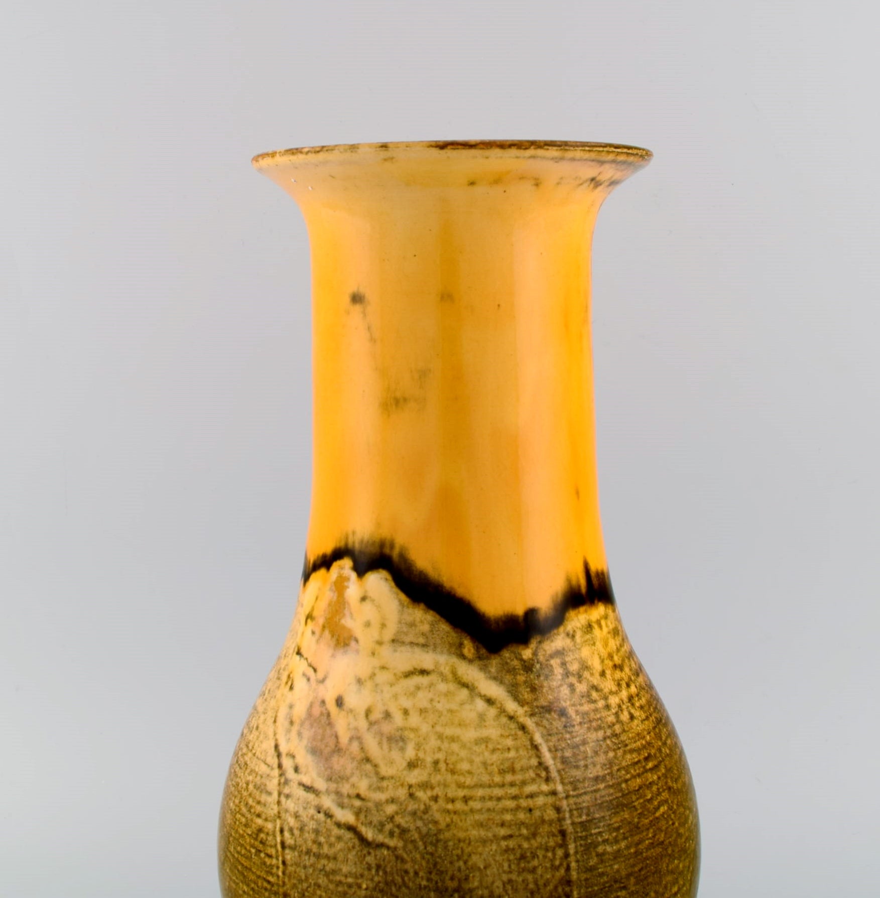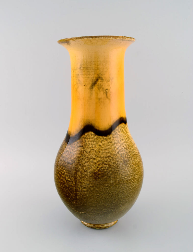 Svend Hammershøi for Kähler, Denmark. Large vase in glazed stoneware. Beautiful yellow uranium glaze. 1930s / 40s.