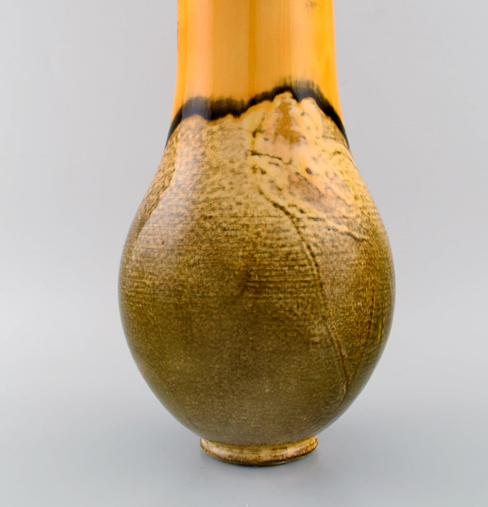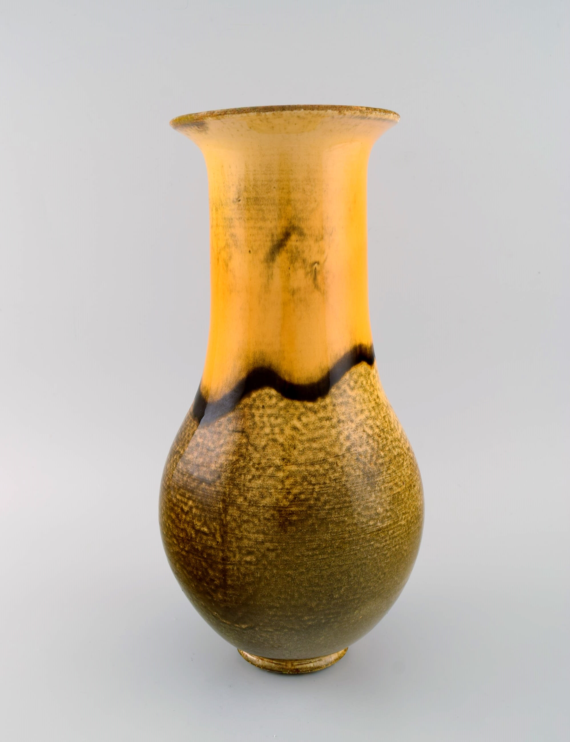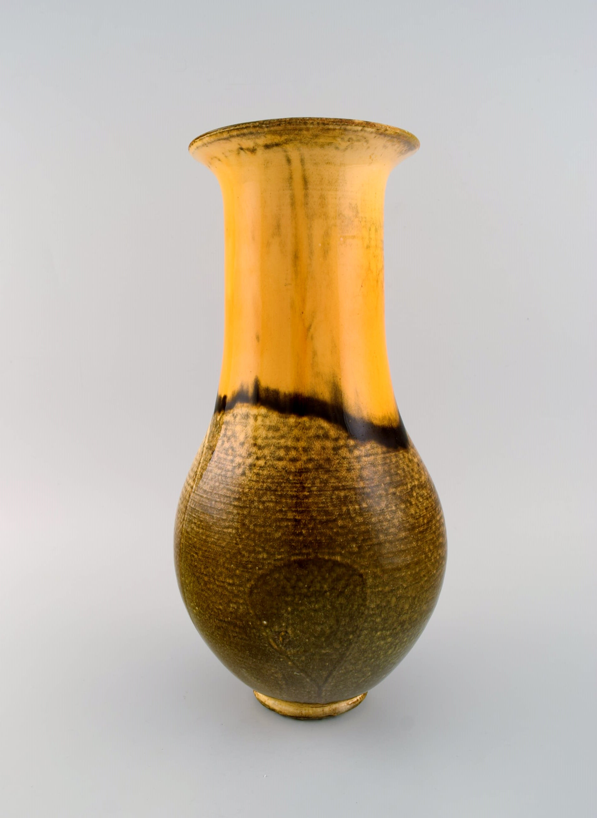 Svend Hammershøi for Kähler, Denmark. Large vase in glazed stoneware. Beautiful yellow uranium glaze. 1930s / 40s.