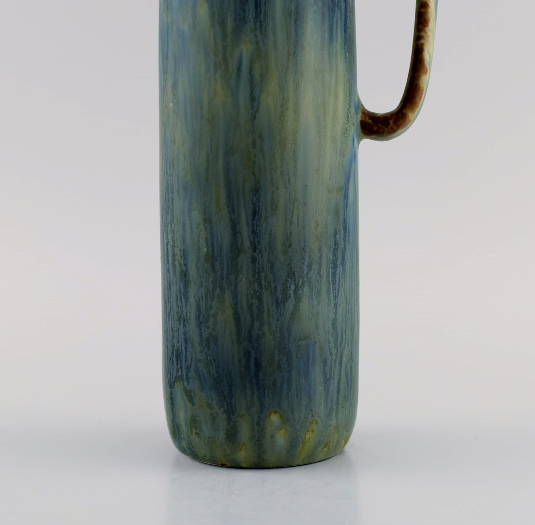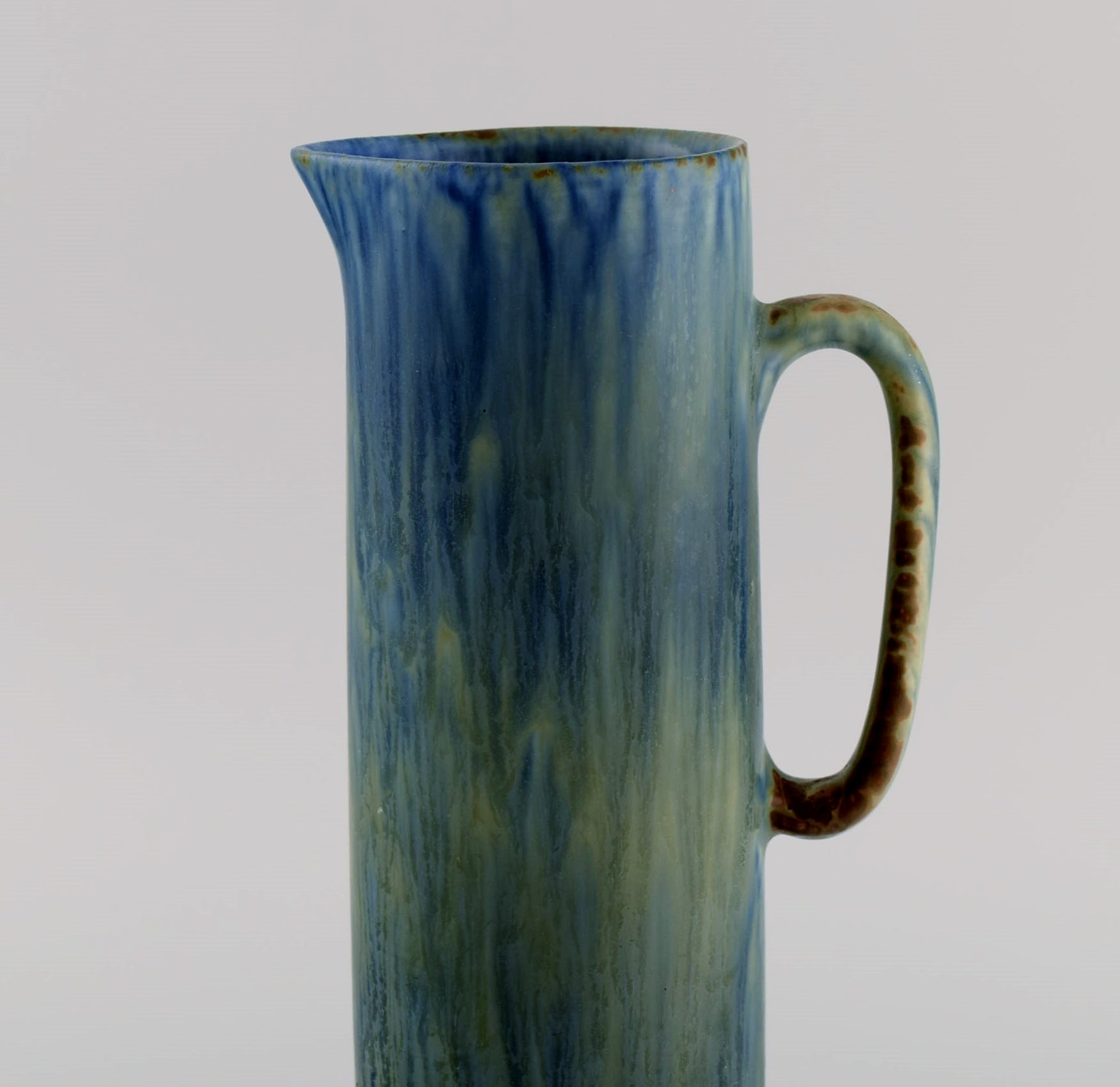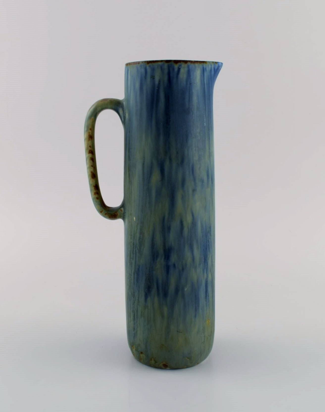 Carl Harry Stålhane (1920-1990) for Rörstrand. Jug in glazed ceramics. Beautiful glaze in shades of blue-green. Mid-20th century.