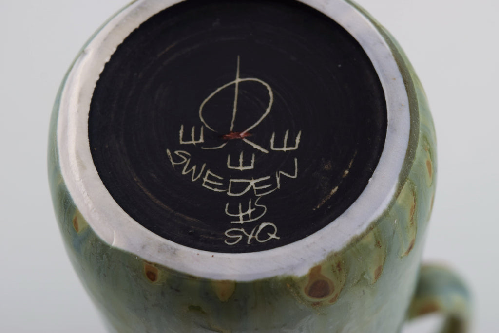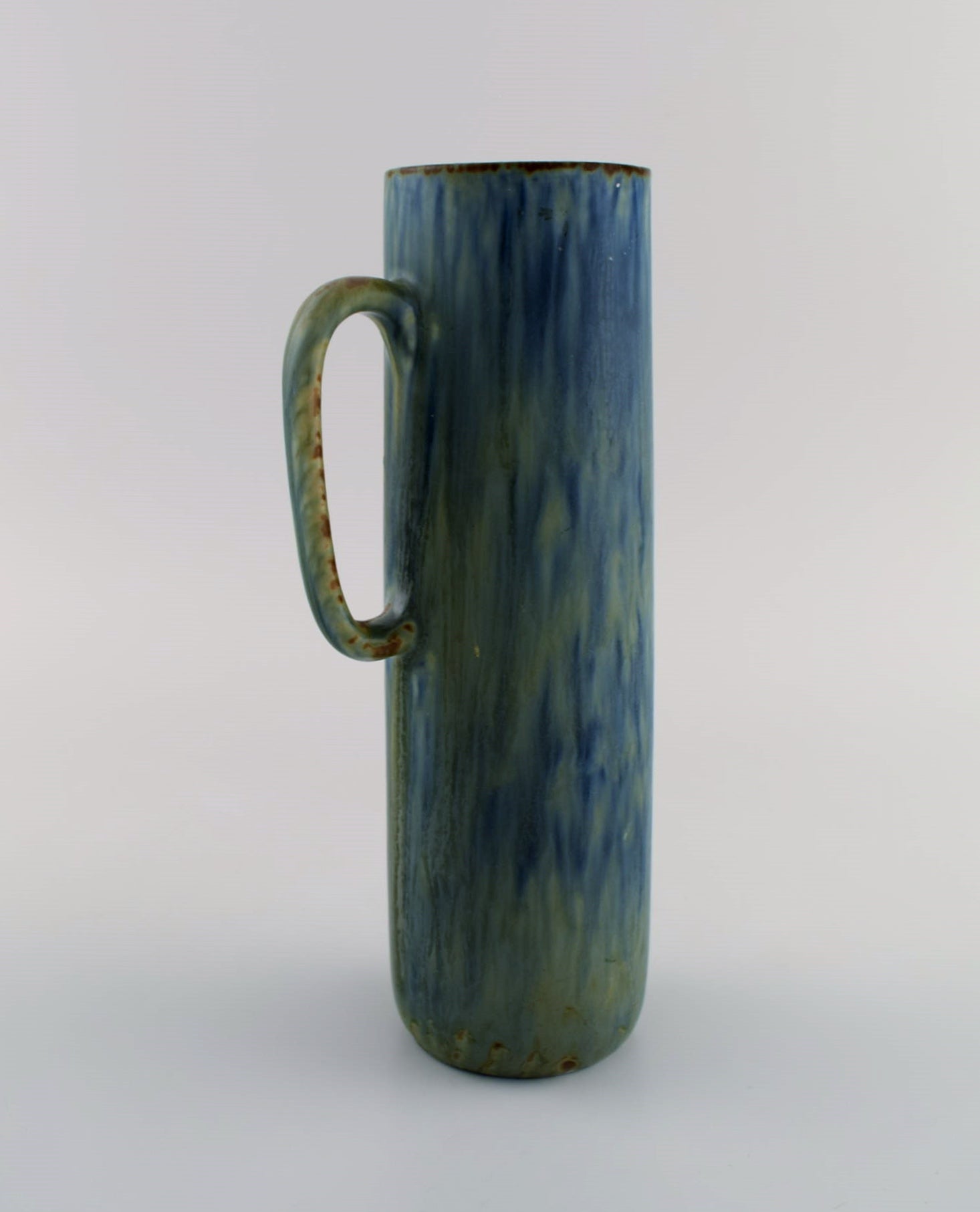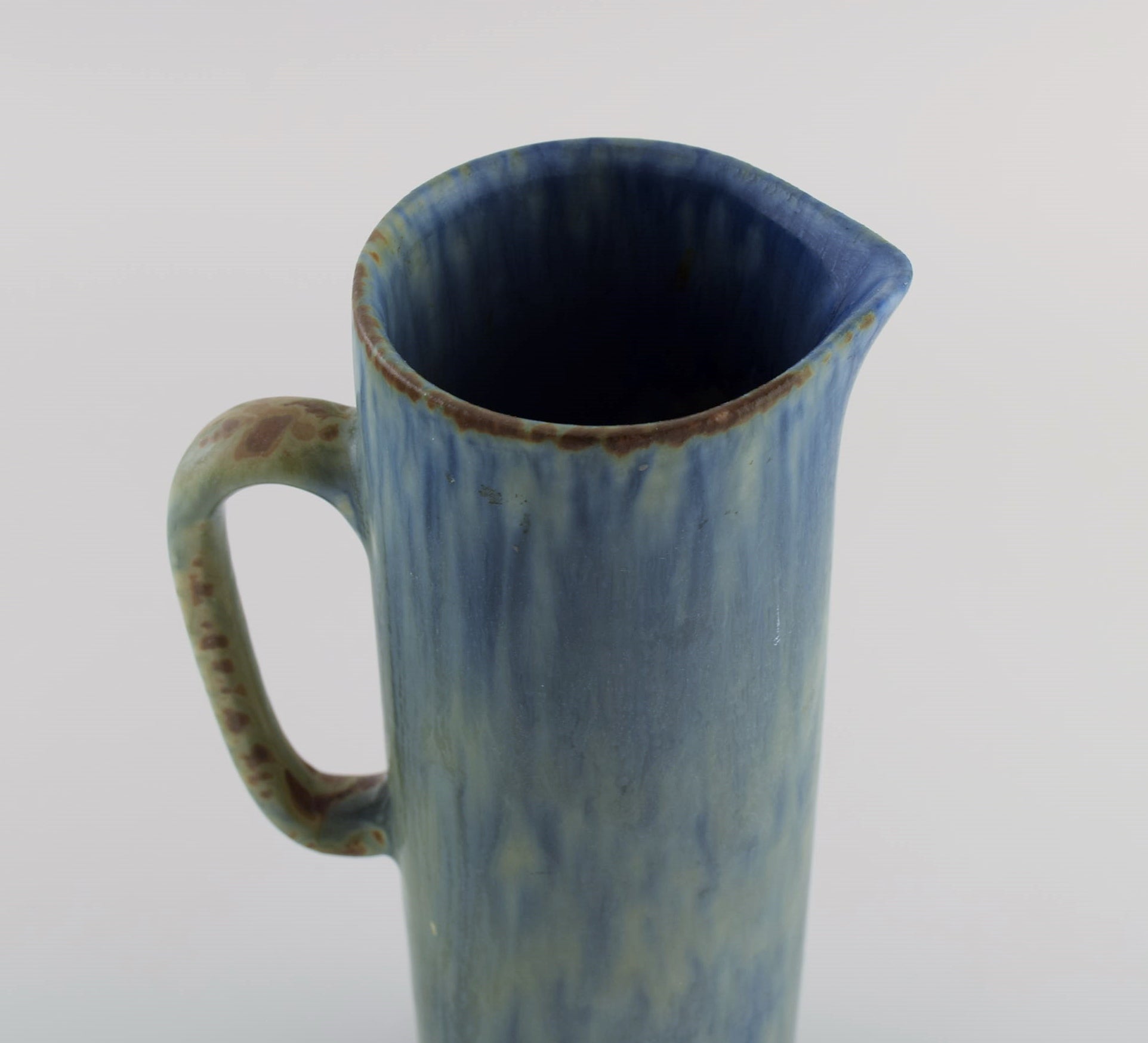 Carl Harry Stålhane (1920-1990) for Rörstrand. Jug in glazed ceramics. Beautiful glaze in shades of blue-green. Mid-20th century.
