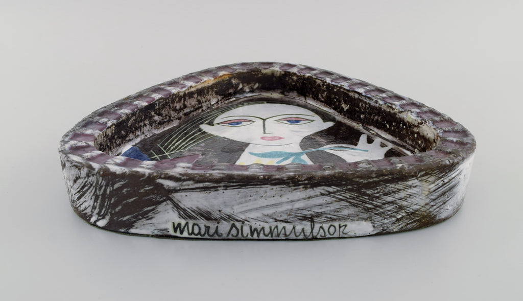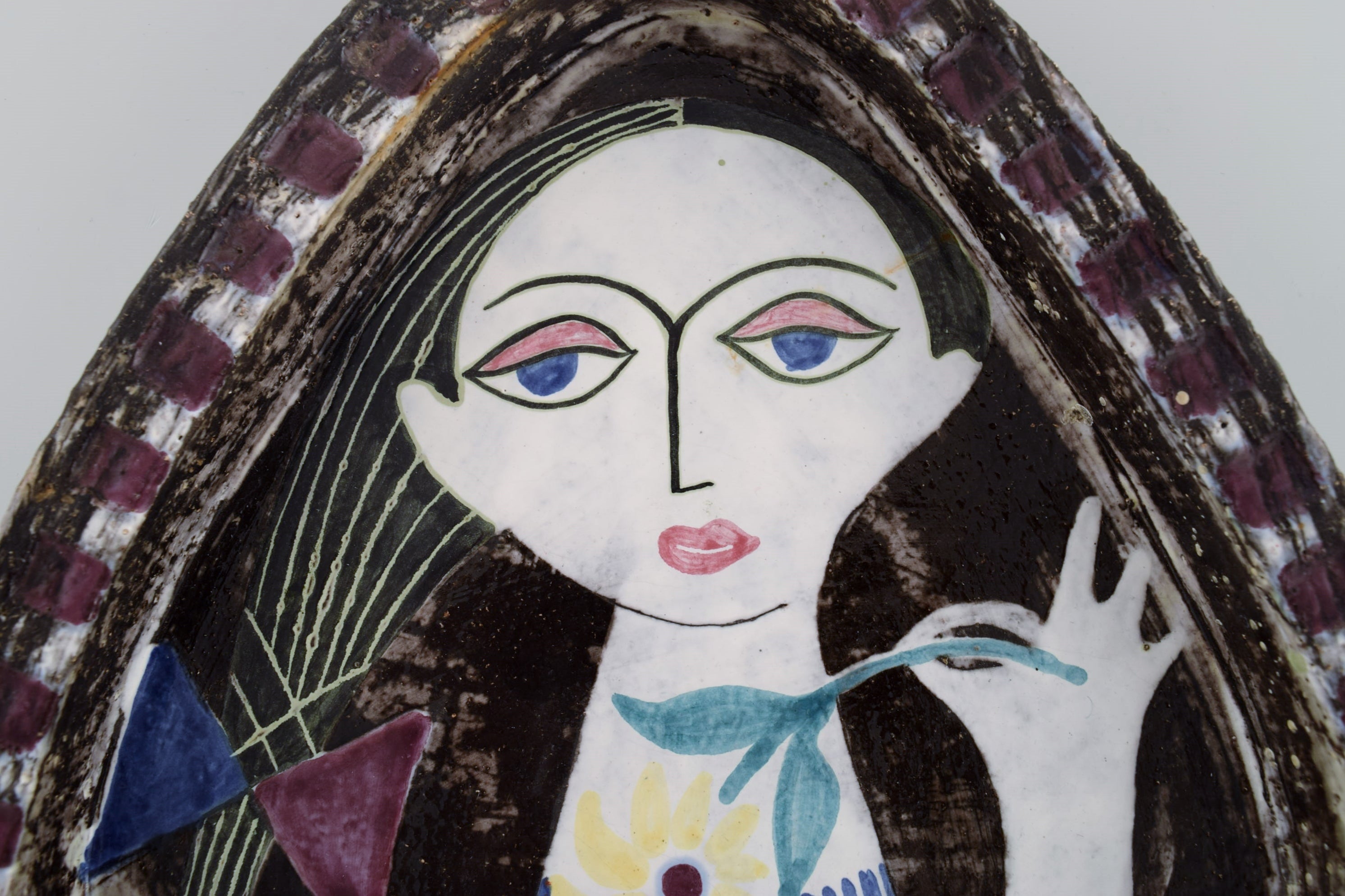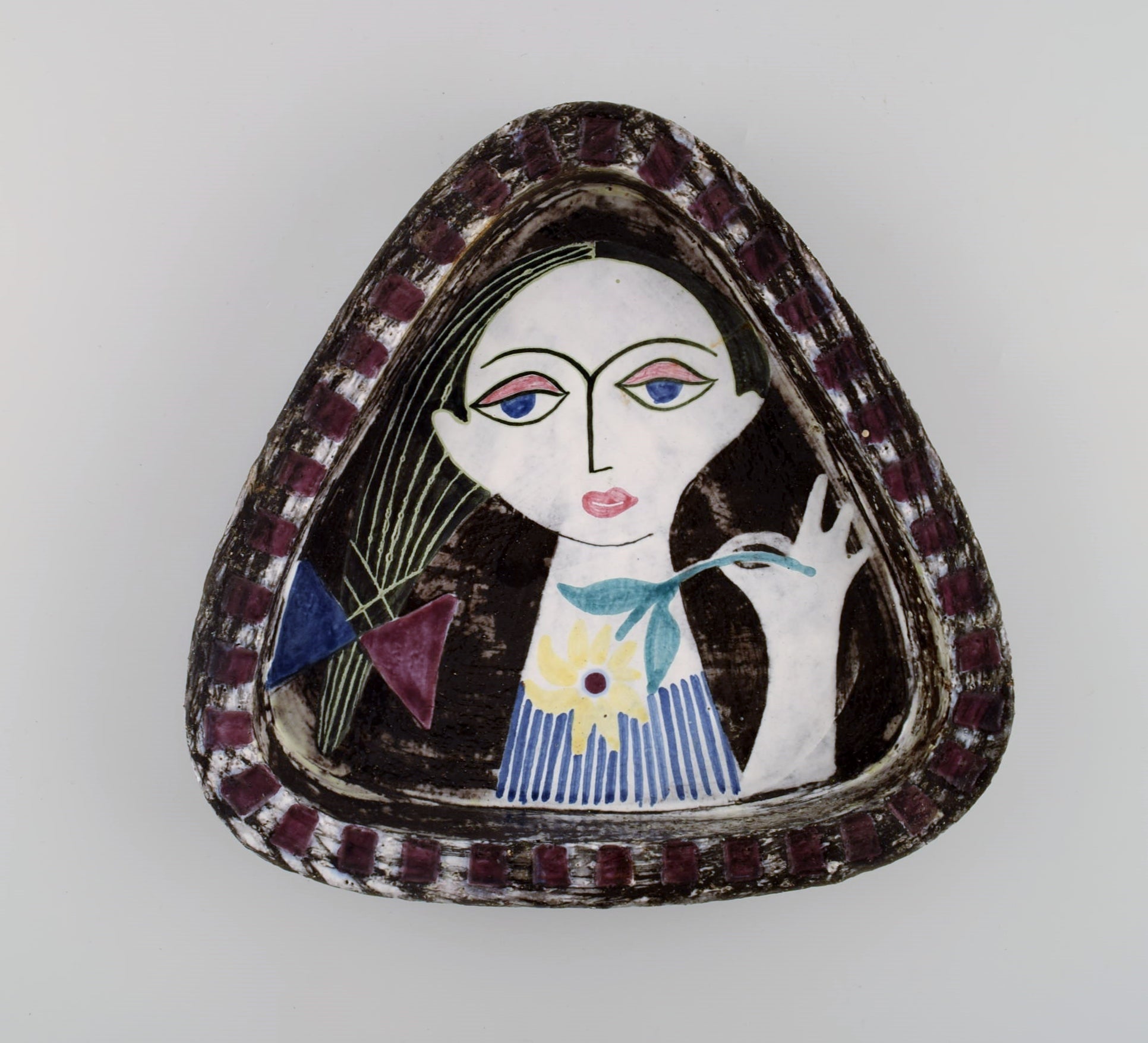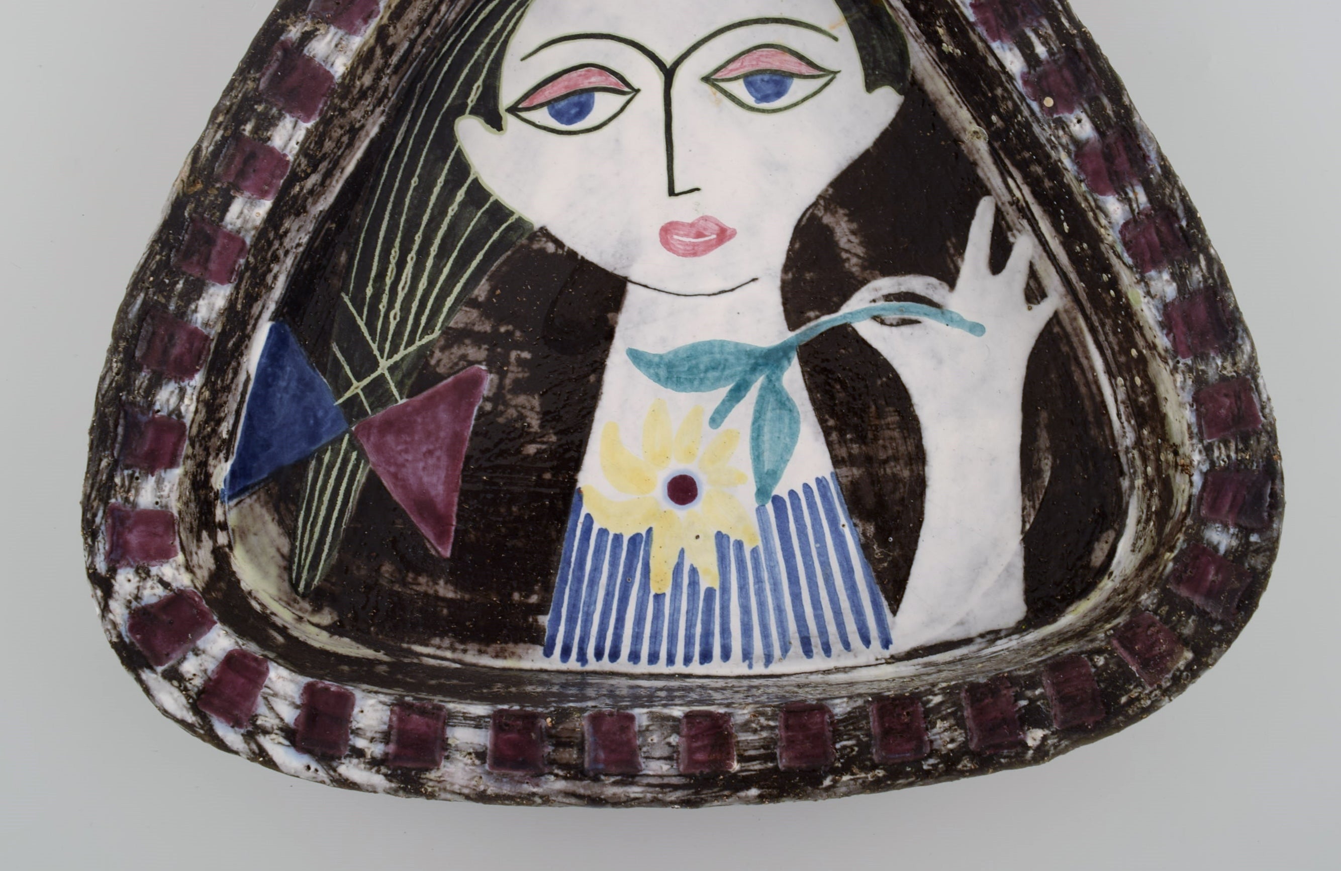 Mari Simmulson for Upsala-Ekeby. Dish in glazed stoneware with portrait of woman. 1960's.