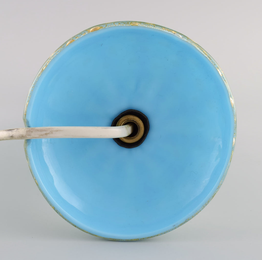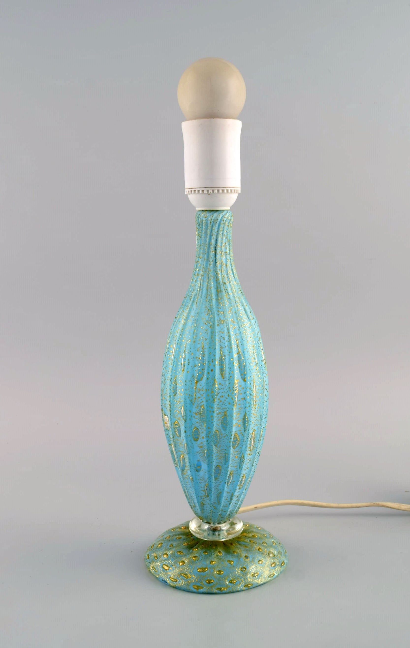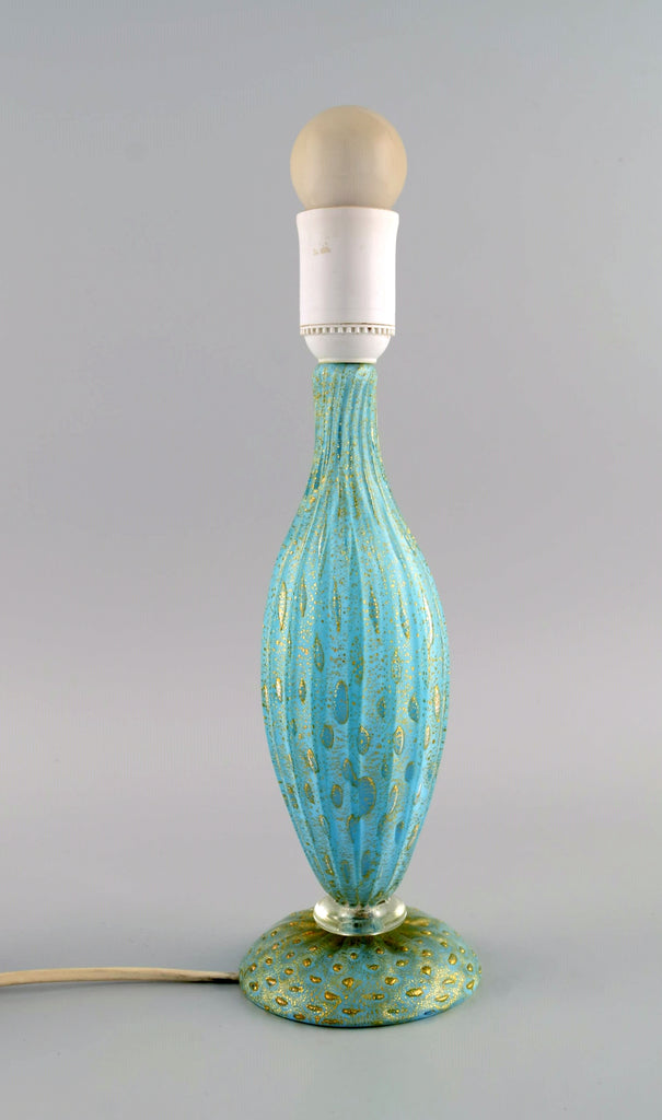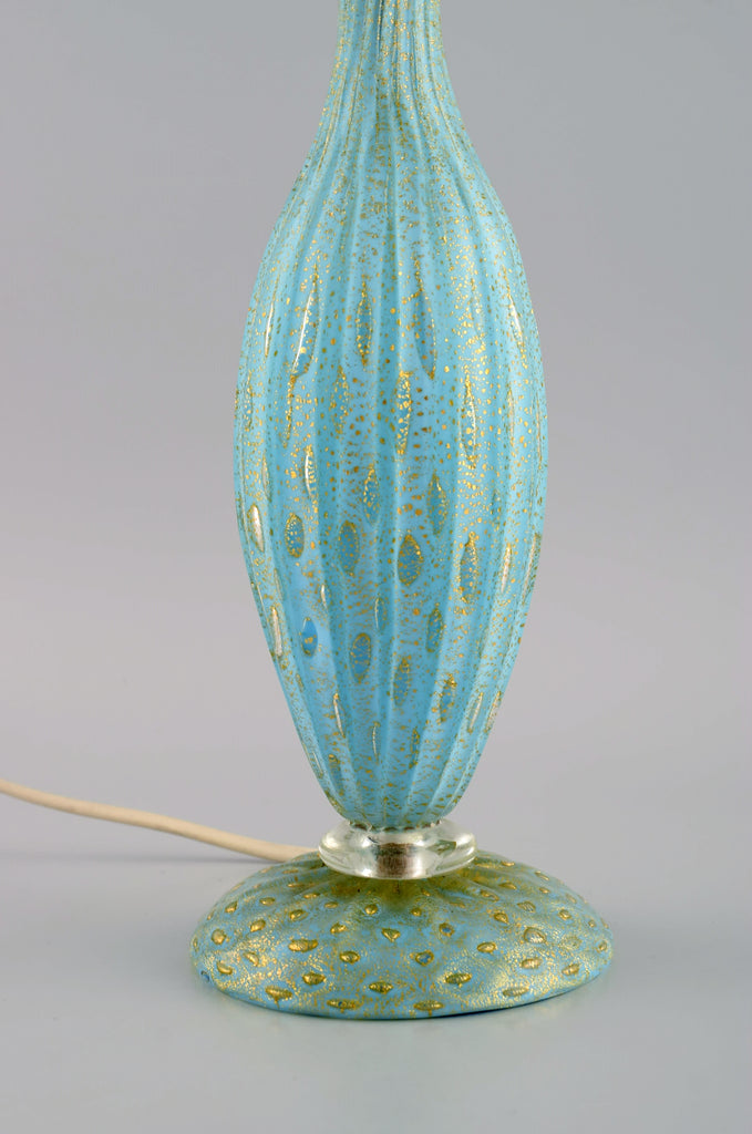 Murano table lamp in turquoise mouth blown art glass with inlaid bubbles. Italian design, 1960s / 70s.